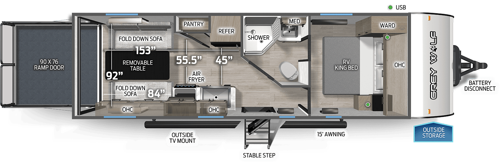 Another bonus of buying a brand-new Cherokee RV from Cheyenne Camping Center is gaining access to the latest in RV technology and features. The RV world is rapidly evolving and advancing, meaning that new Cherokee models have new and improved features that are not found on older models. New RV models can include features such as smartphone app integration to help monitor and adjust various features, including climate control and water tank levels. New RVs likely also include wireless and Bluetooth integration, as well as the latest TV and sound systems.