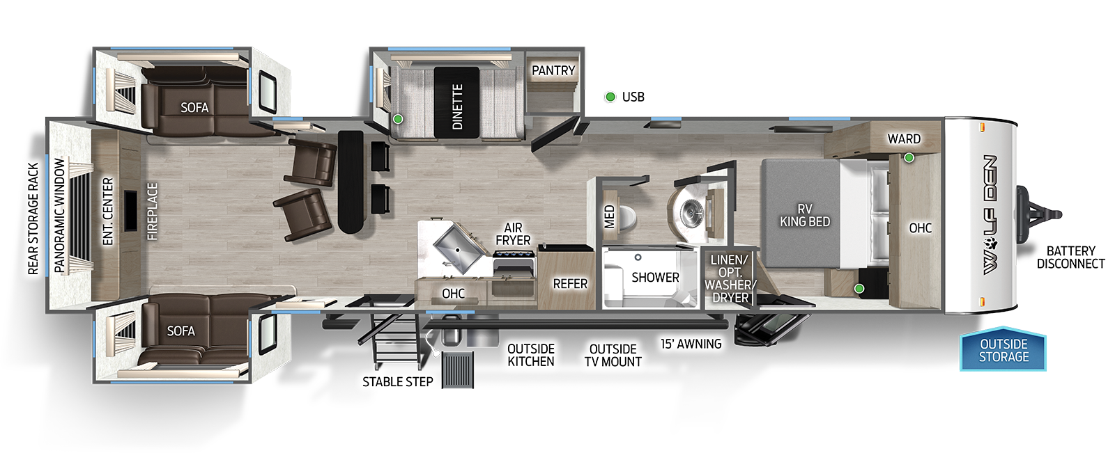 At Cheyenne Camping Center, we offer a variety of models to accommodate various preferences. From small, lightweight trailers for couples or small families to big fifth wheels and travel trailers for larger groups, we have everything. We offer flexible floor plans with two or more slide-outs, full kitchen amenities, and comfortable living spaces.