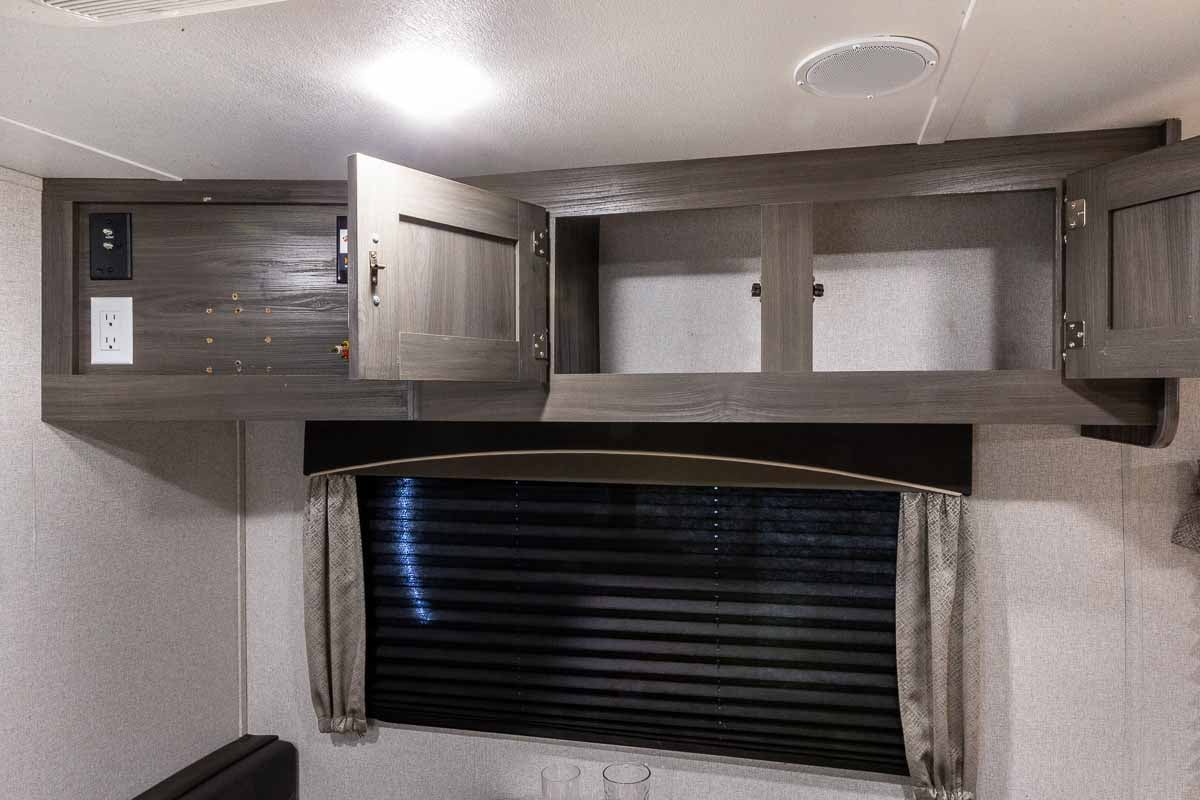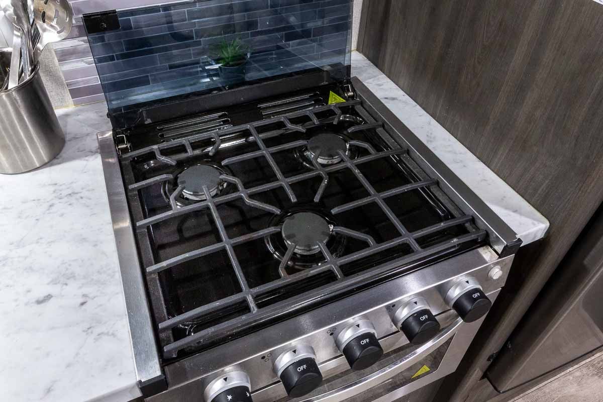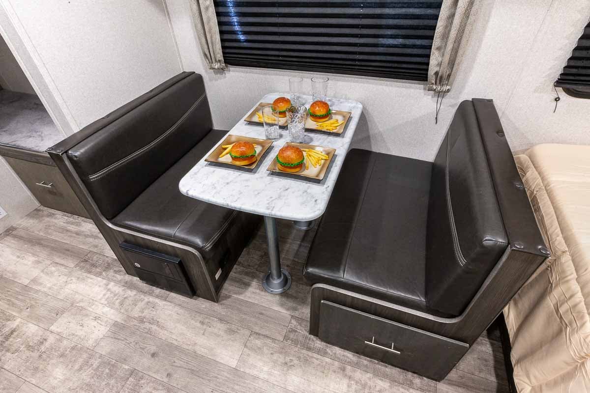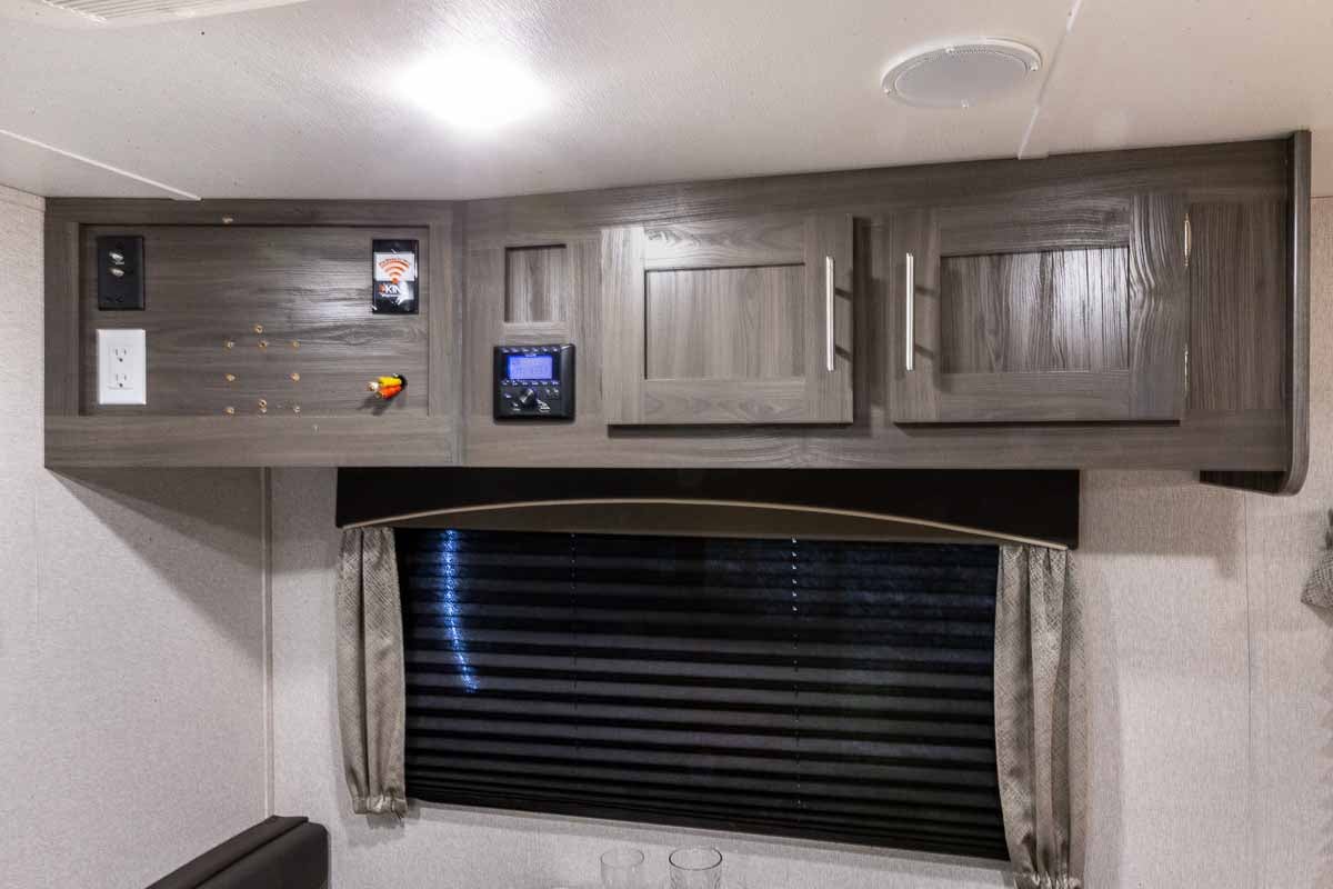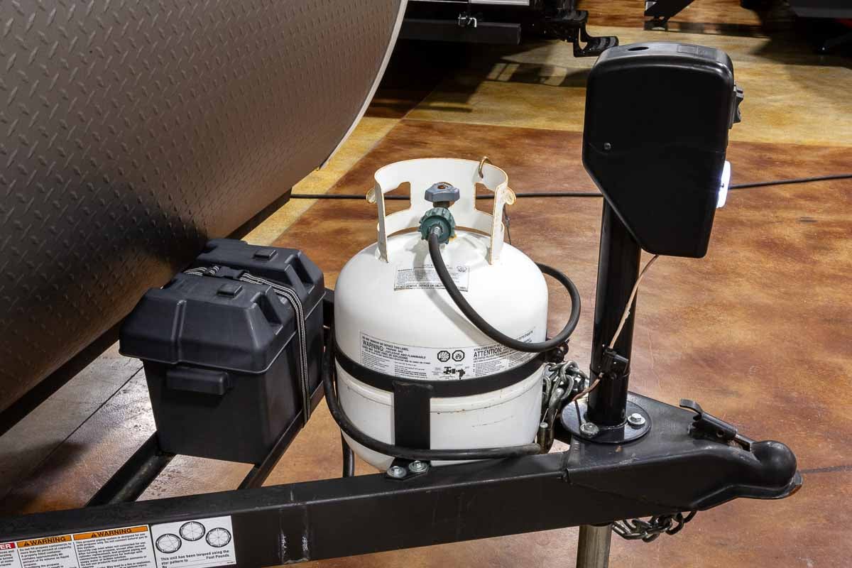 An efficient LP gas furnace and roof-mounted RV air conditioner assure comfort, while the power awning and power stabilizer jacks add everyday convenience to your camping experience.