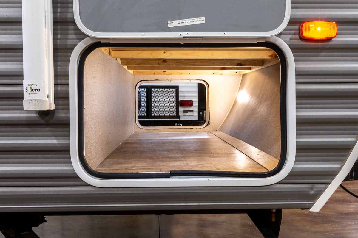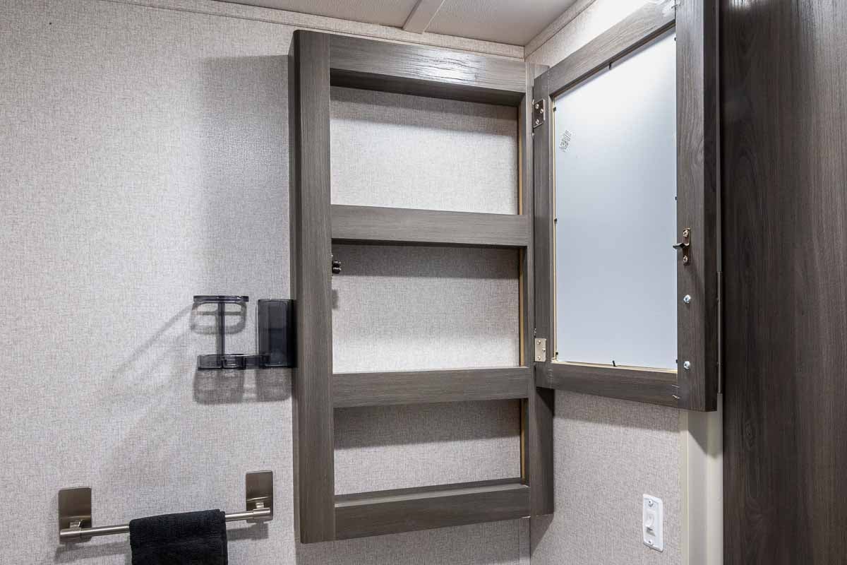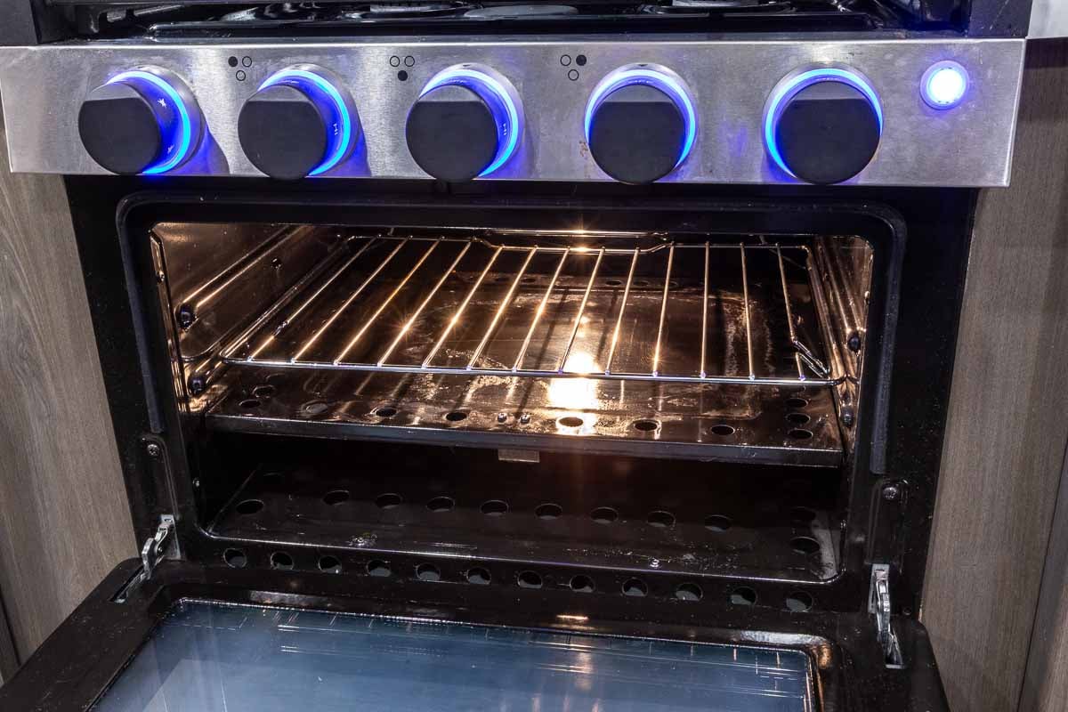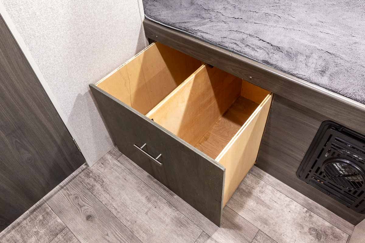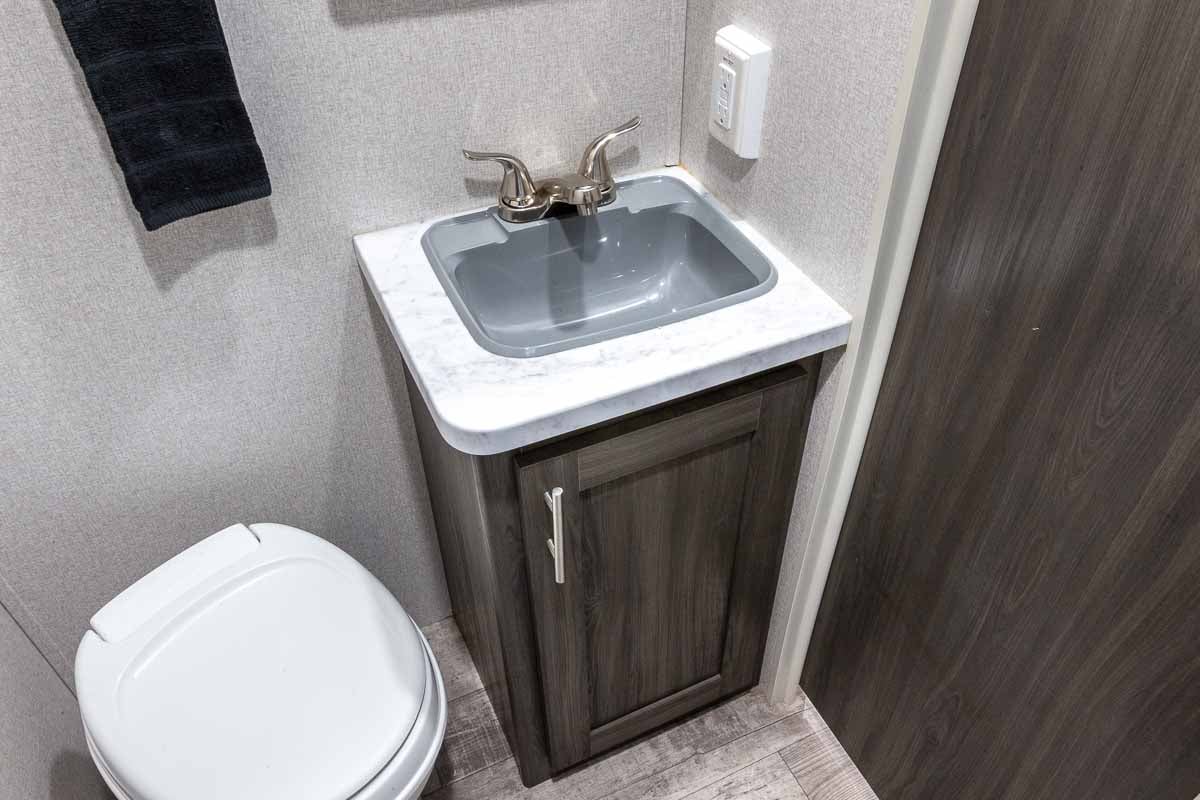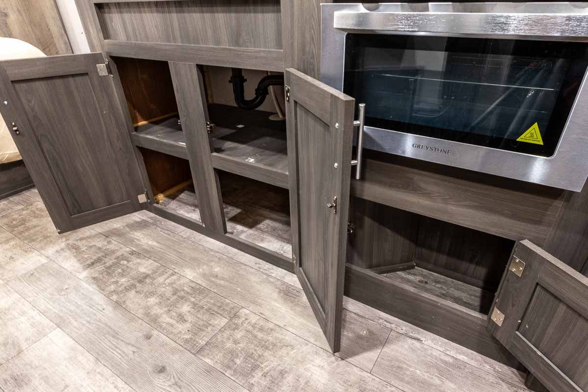 An efficient LP gas furnace and roof-mounted RV air conditioner assure comfort, while the power awning and power stabilizer jacks add everyday convenience to your camping experience.