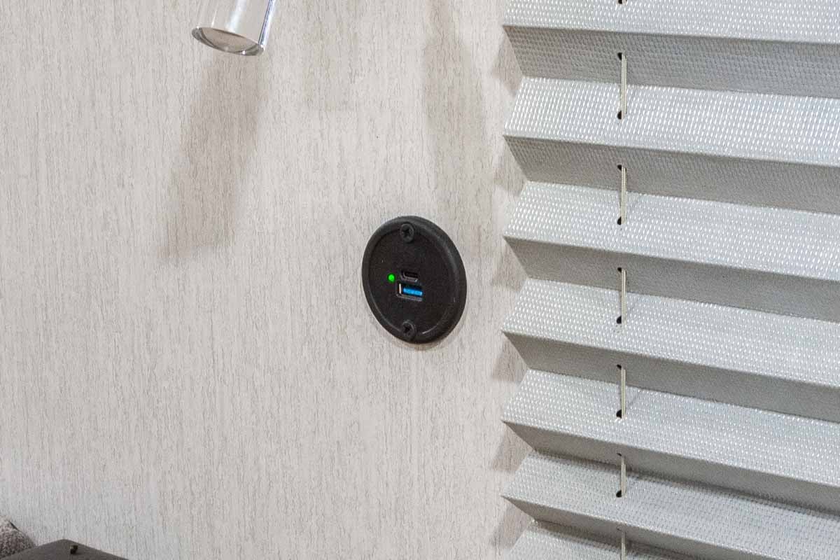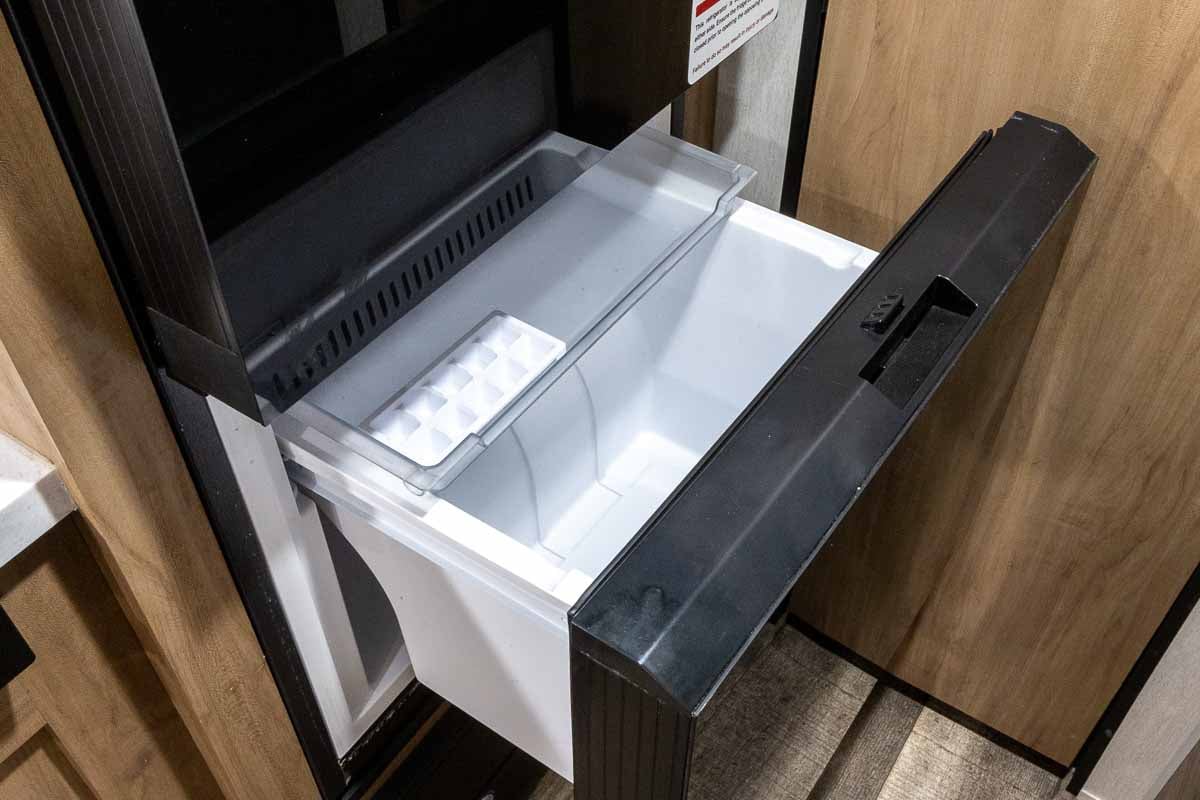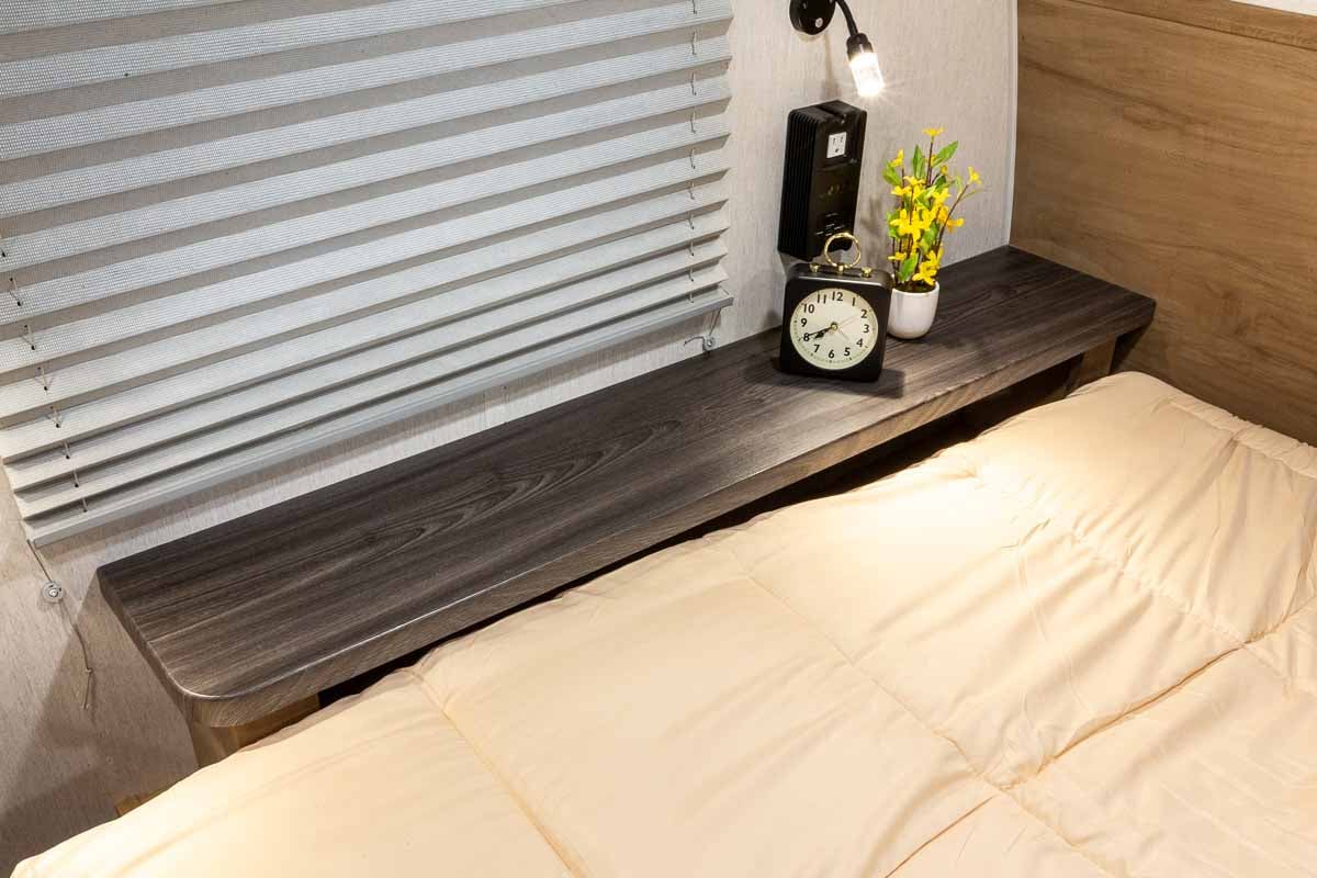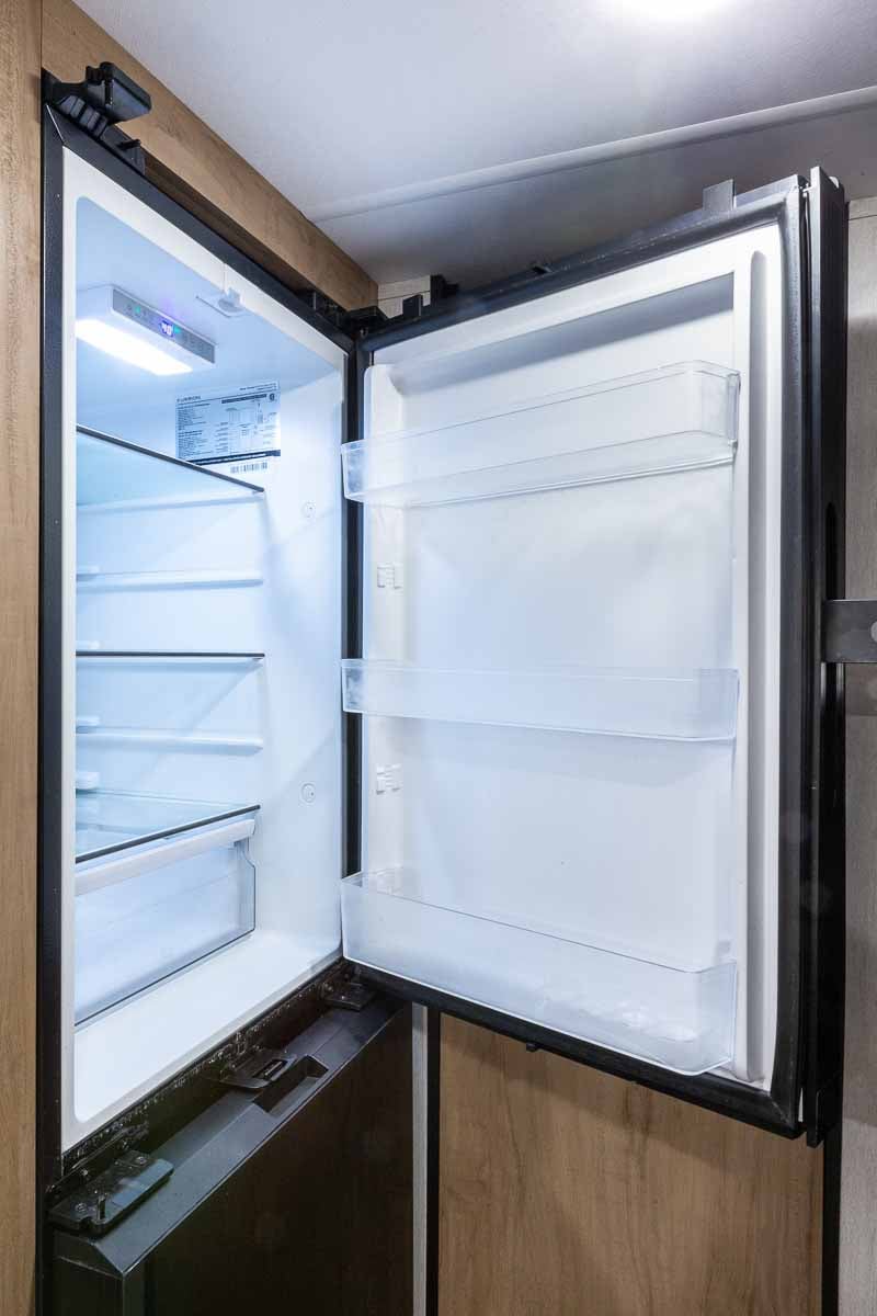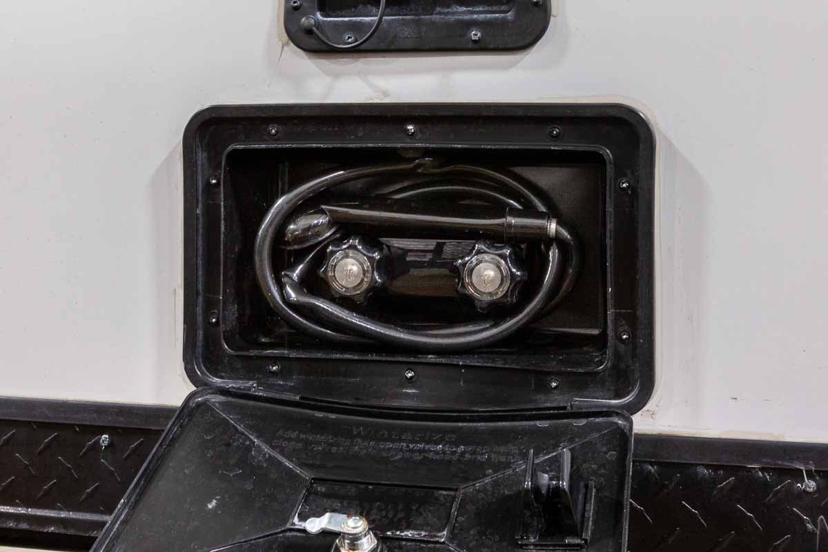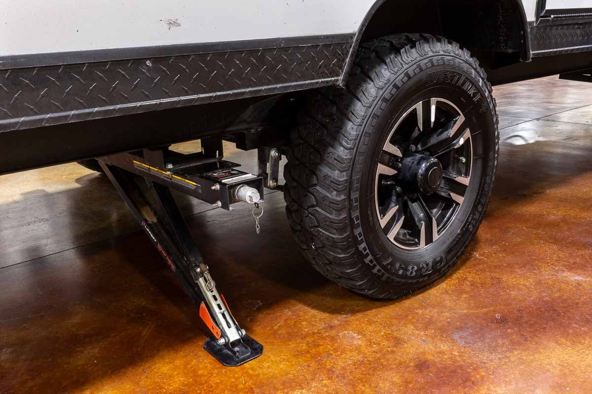 Lightweight yet fully equipped, the 16BHSBL sleeps five and offers abundant storage, including a large front compartment, rear door access to under-bunk/bike storage, and overhead cabinets. Key features include rear bunk beds with storage, a rear bath, a convertible dinette, a front queen bed, Bluetooth stereo with 200-watt subwoofer, exterior marine grade speakers, a large refrigerator, an outdoor shower, four Quick Drop stabilizer jacks, 13,500 BTU roof-mounted AC, a power awning with LED lighting, an outdoor refrigerator, deluxe wheels, a wireless backup camera, black glass entry door, a 100 watt solar panel, a 12V RV battery, and much more!