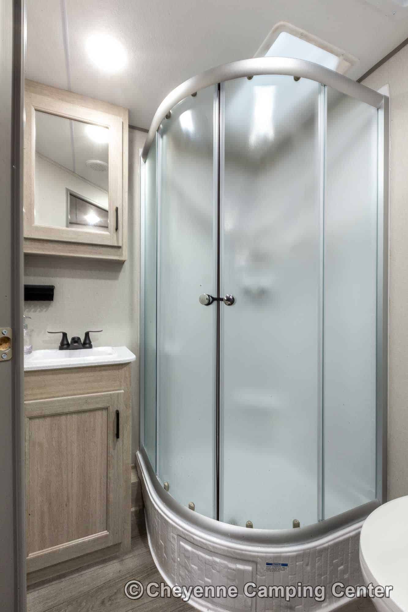 • Glass Step-In Shower w/ ABS Surround