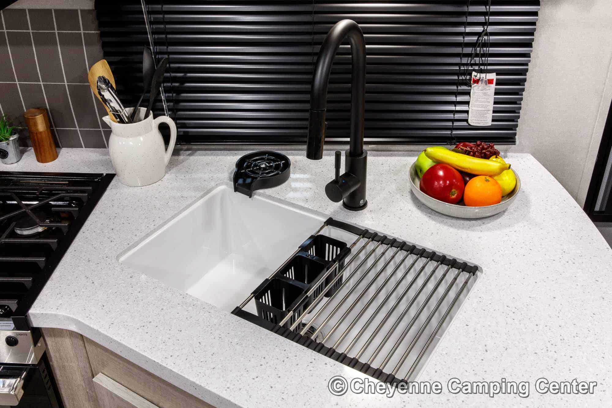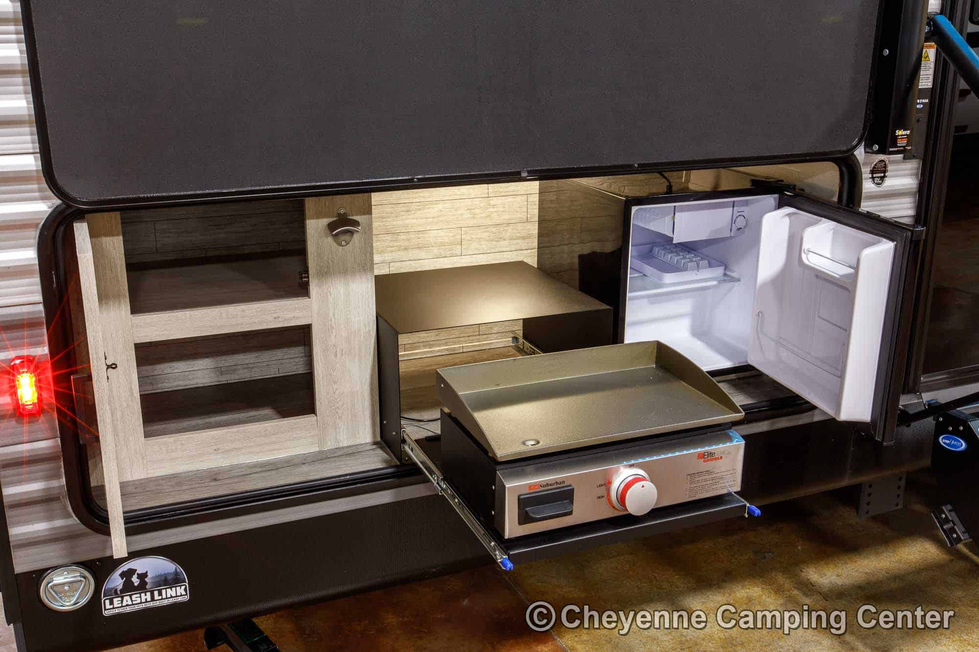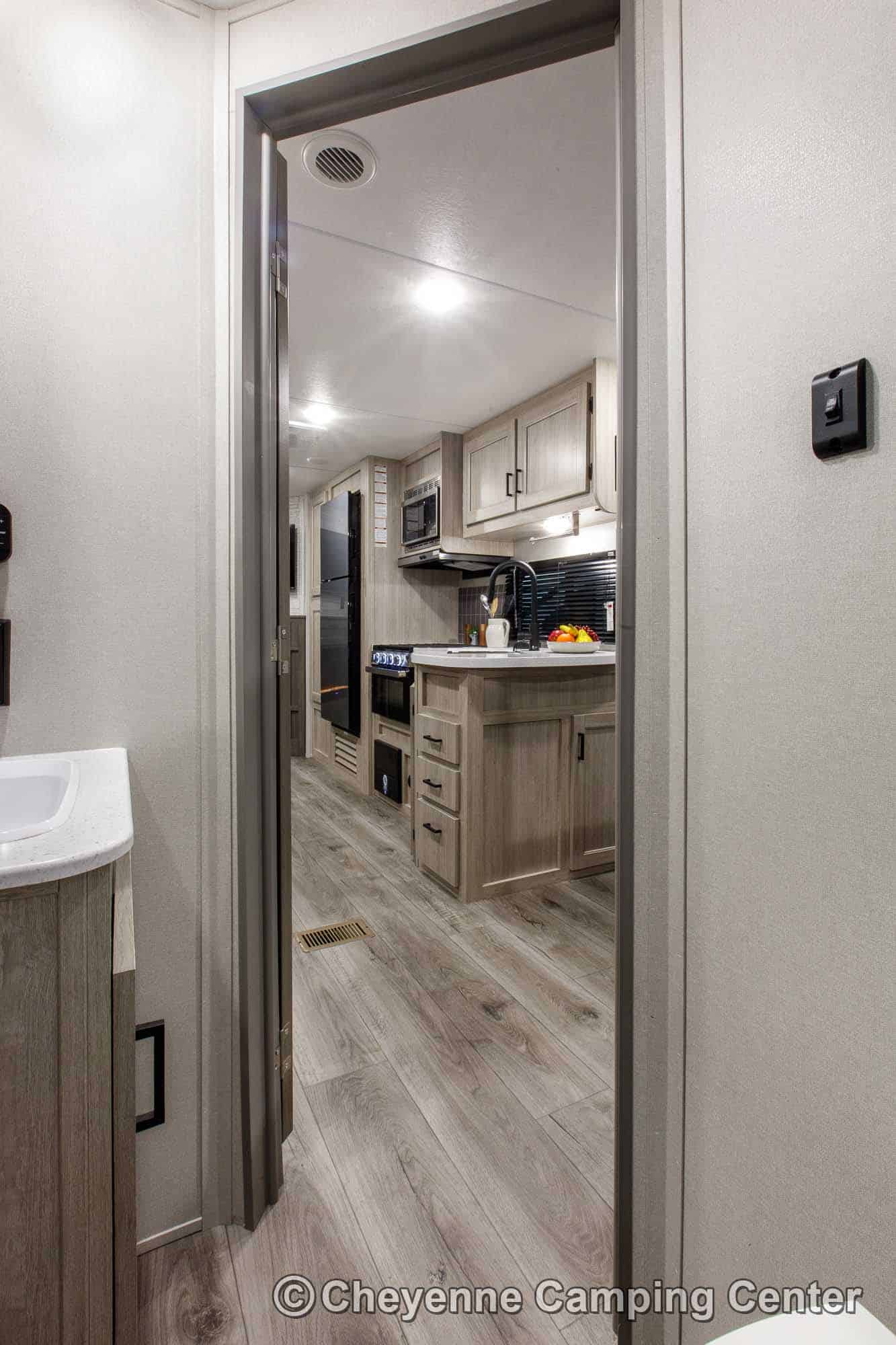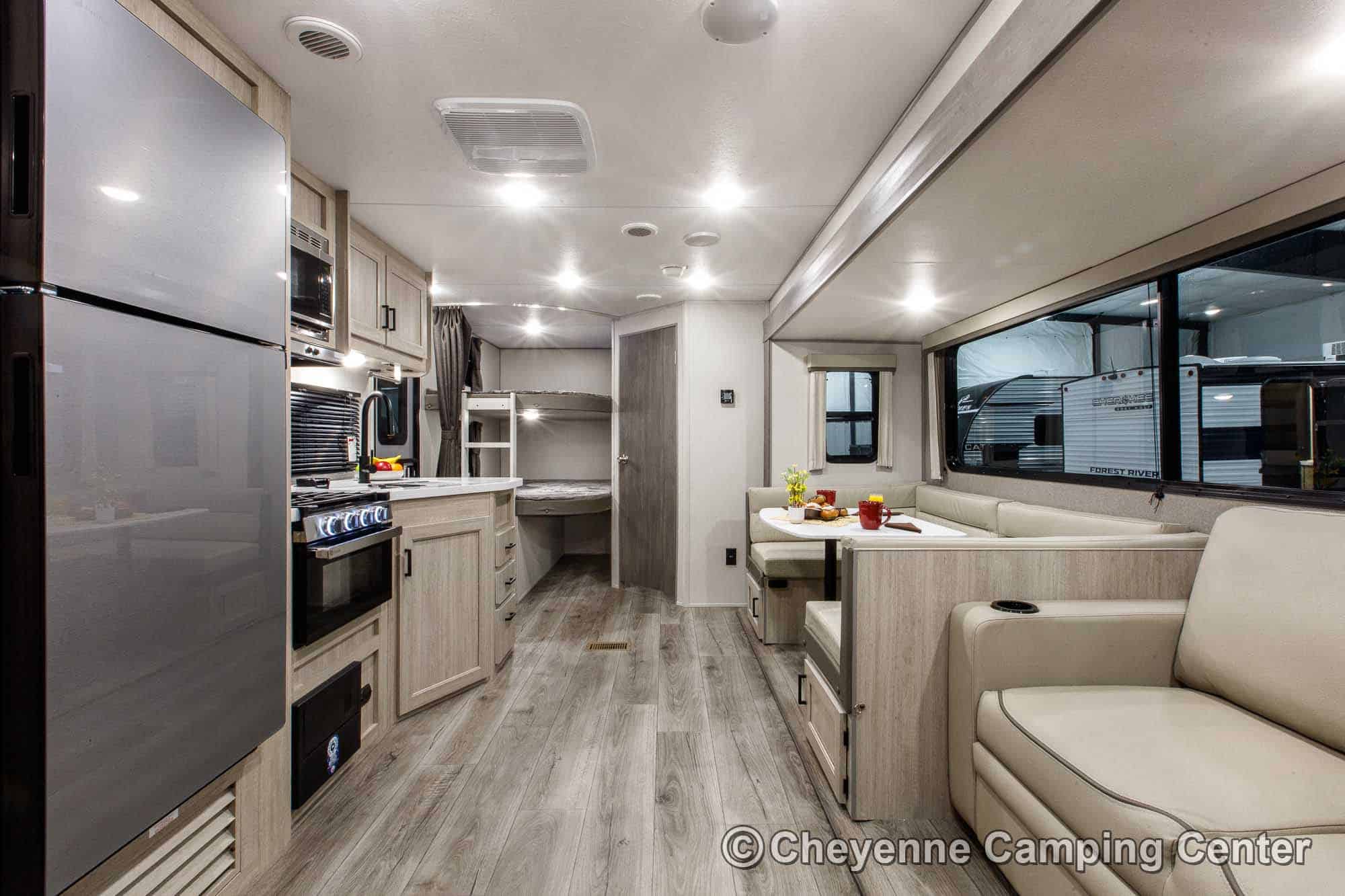 The Catalina Legacy Edition 263BHSCK is very well equipped! Outside, you’ll have a camp kitchen with a refrigerator & griddle, premium MORryde entry steps and handrail, Leash link for pets, battery disconnect, power awning with multicolor LED lighting, aluminum wheels, shower fixture, black tank flush fixture, and front pass-thru storage.