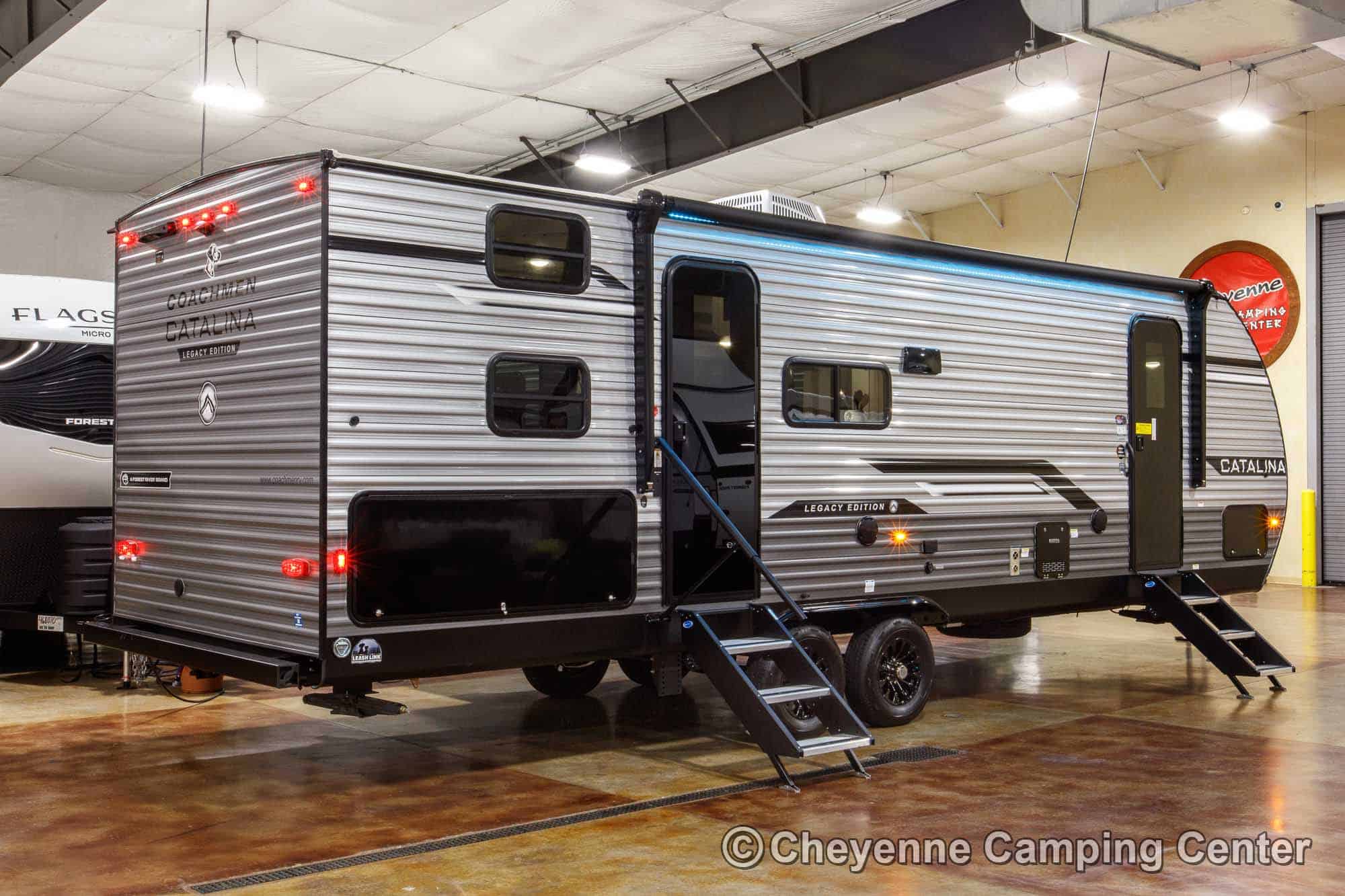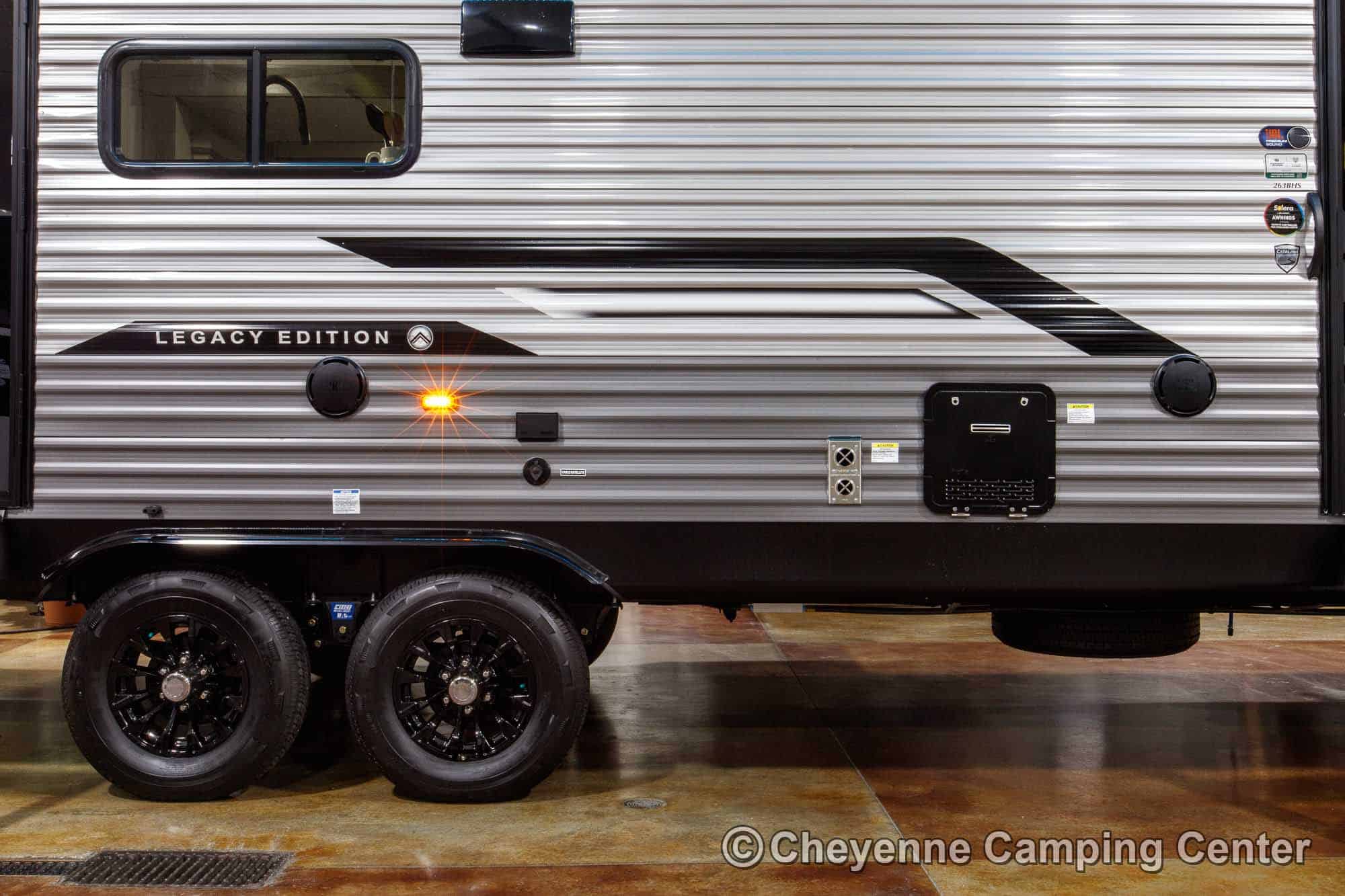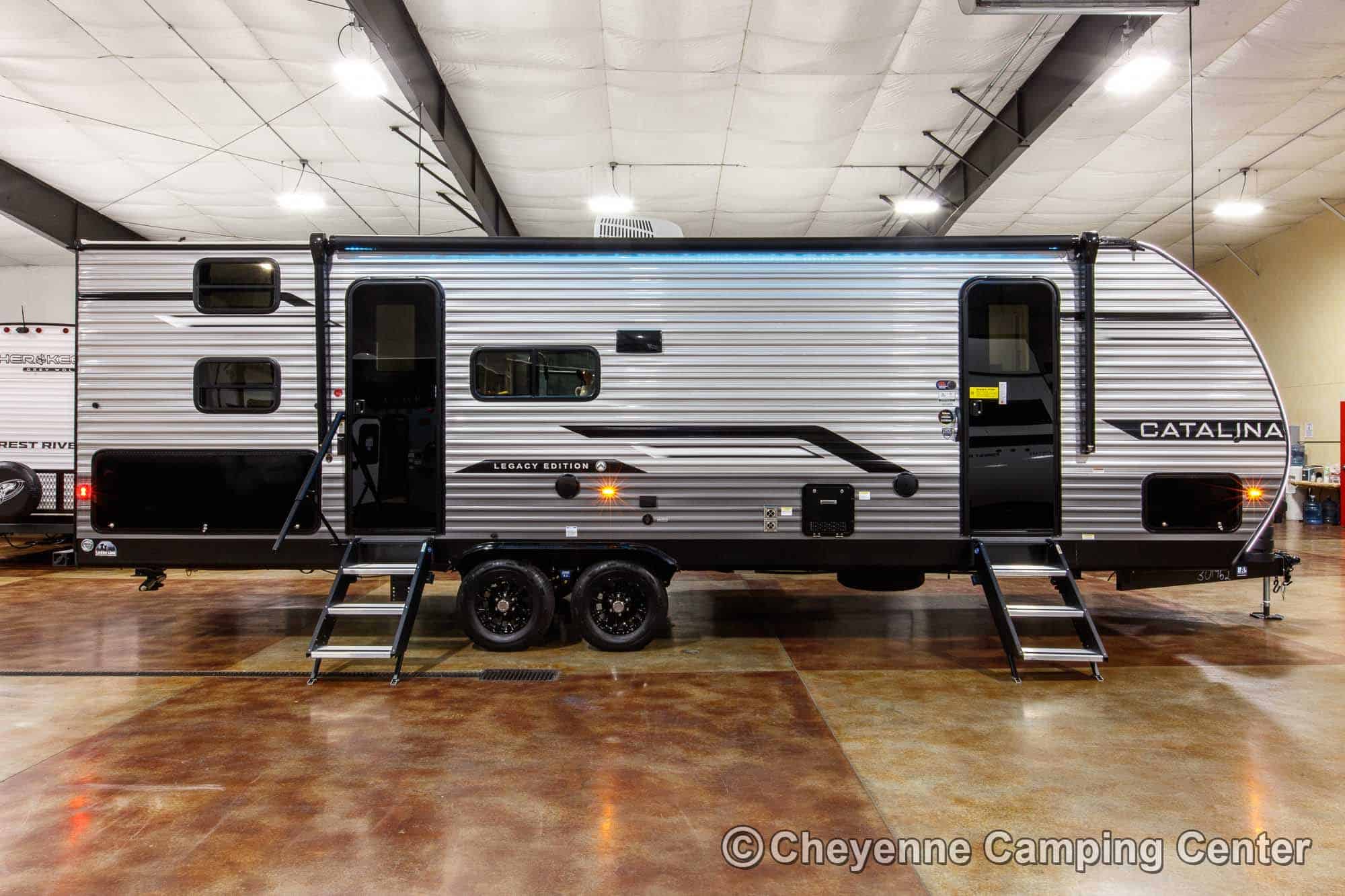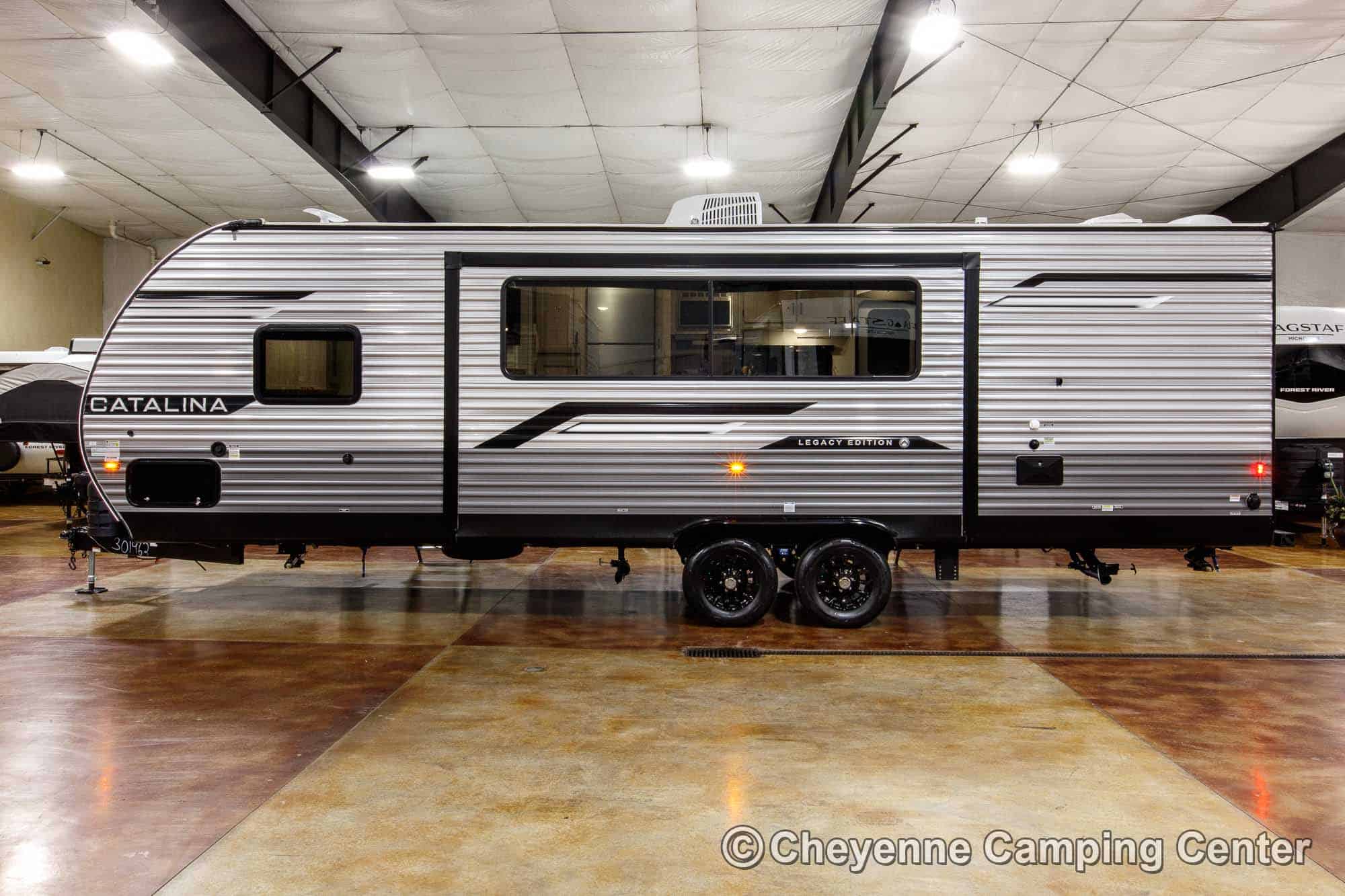 The Catalina Legacy Edition 243BHSCK for sale at Cheyenne Camping Center also includes pleated window shades, ducted heat, 15K ducted GE air conditioner, an enclosed underbelly, filled LP tanks, a 12V deep cycle RV battery, one year complimentary roadside assistance, one year manufacturer warranty and more!
