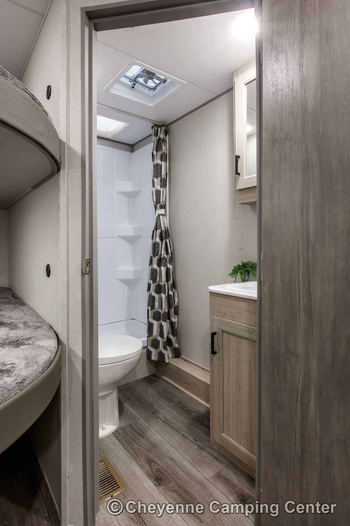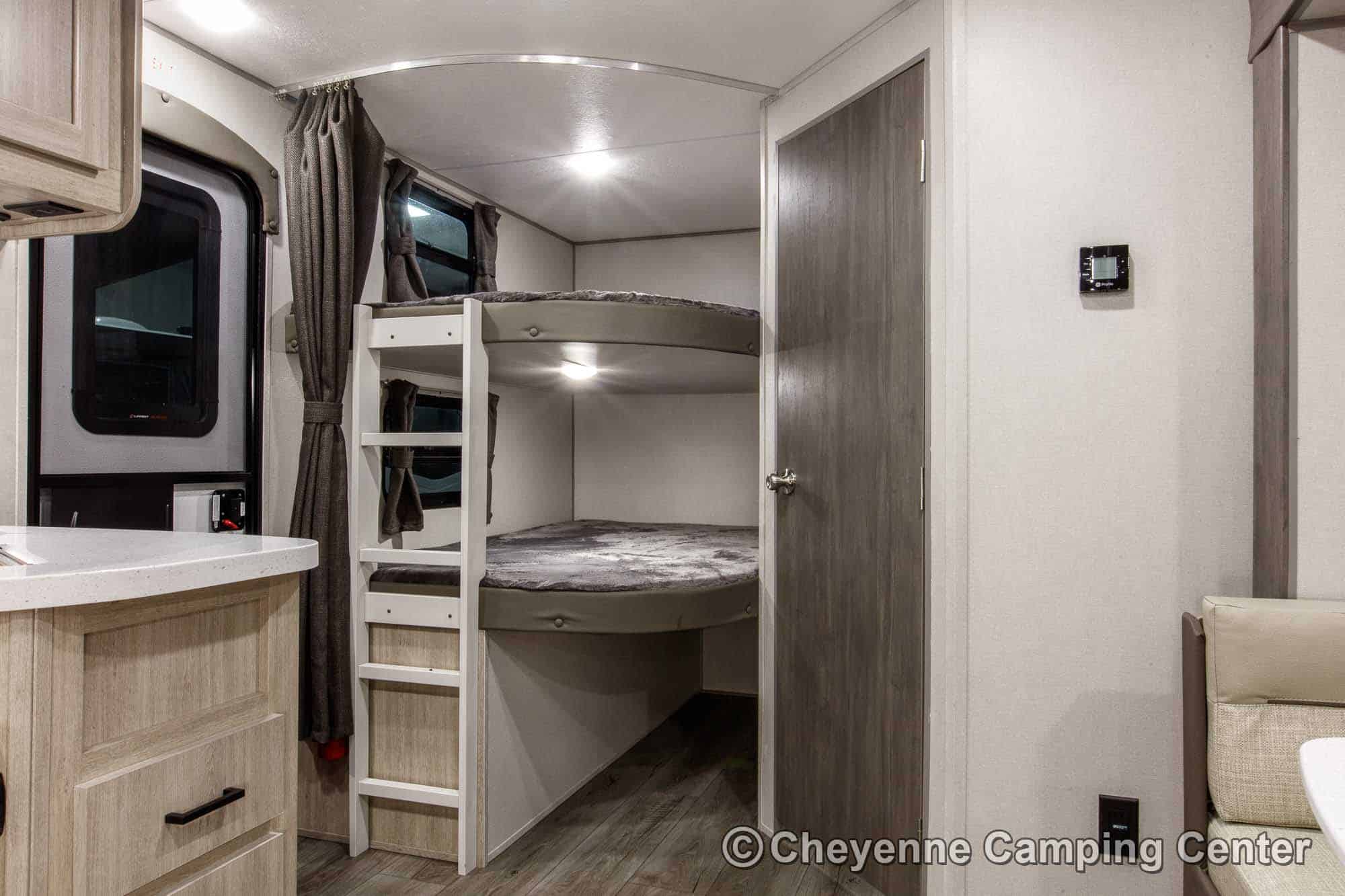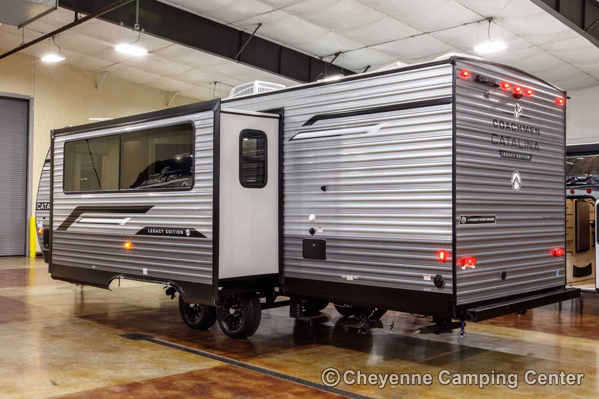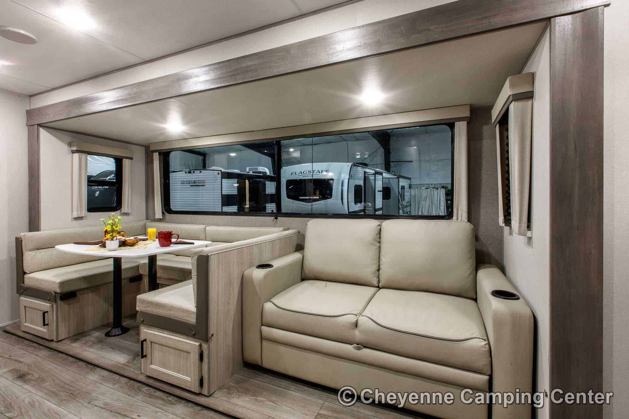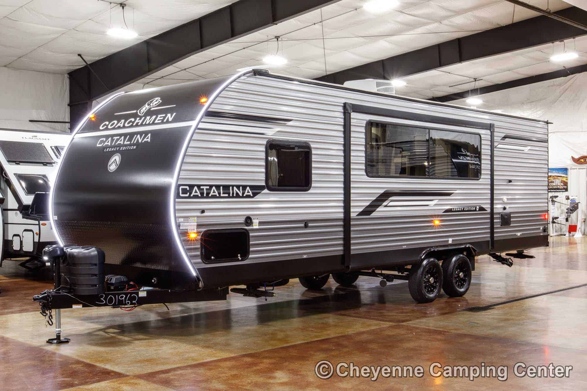 The Catalina Legacy Edition 243BHSCK for sale at Cheyenne Camping Center also includes pleated window shades, ducted heat, 15K ducted GE air conditioner, an enclosed underbelly, filled LP tanks, a 12V deep cycle RV battery, one year complimentary roadside assistance, one year manufacturer warranty and more!