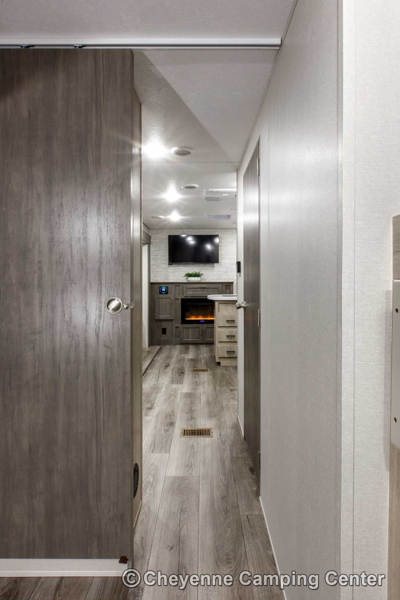 The 343BHTS is very well-equipped! Outside, you’ll have a camp kitchen with refrigerator, griddle, sink, and storage, premium MORryde entry steps and handrail, Leash Link for pets, battery disconnect, a 21′ power awning with multicolor LED lighting, aluminum wheels, shower fixture, black tank flush fixture, storage compartments, and a flip-down cargo rack.