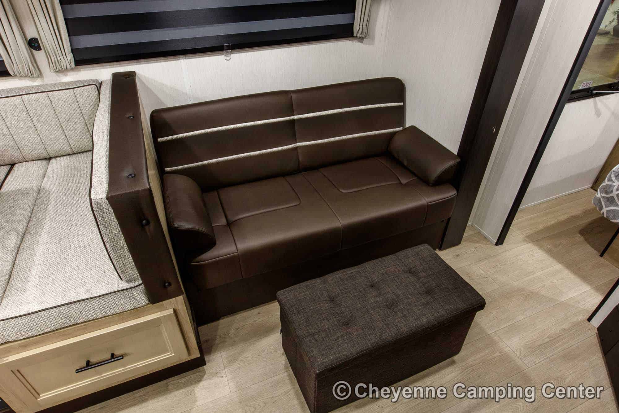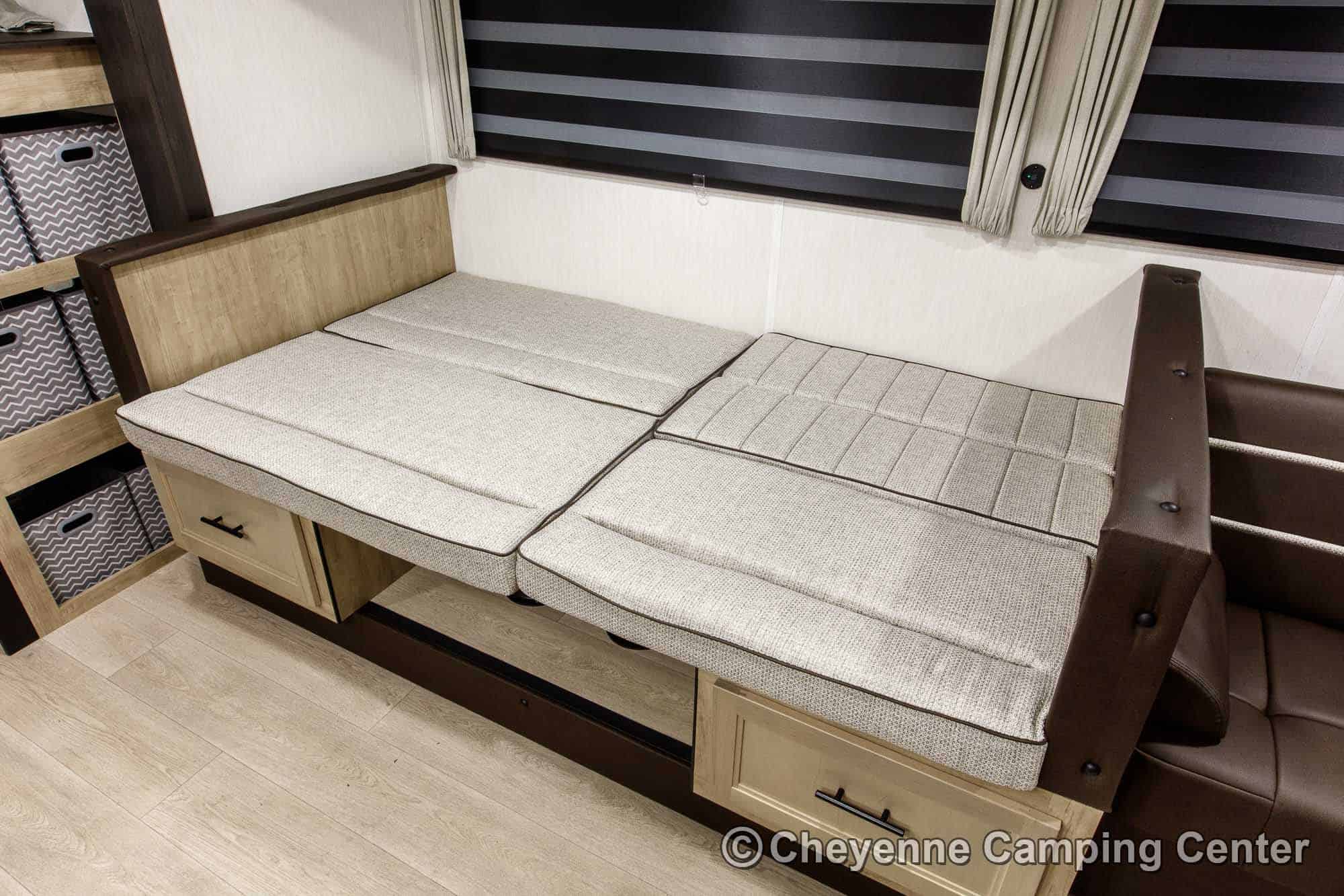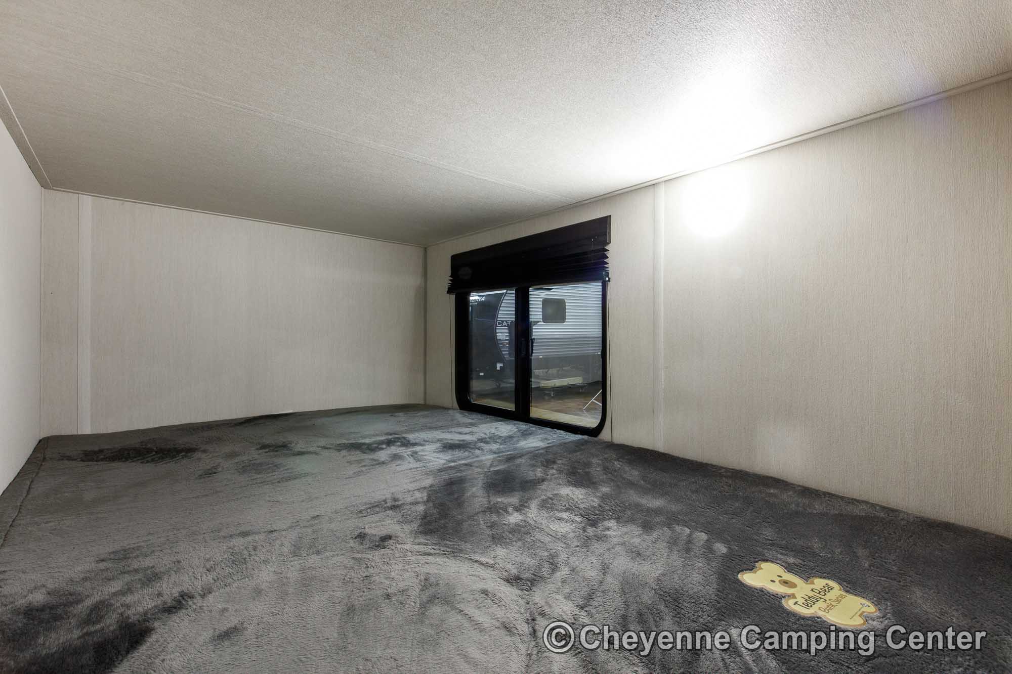 Additional features include premium window shades, convenient storage cubes by the bunks, one year of complimentary roadside assistance, and a one-year manufacturer’s warranty.