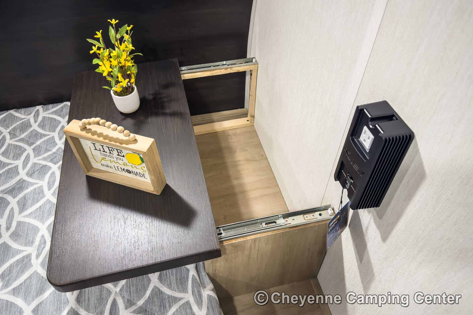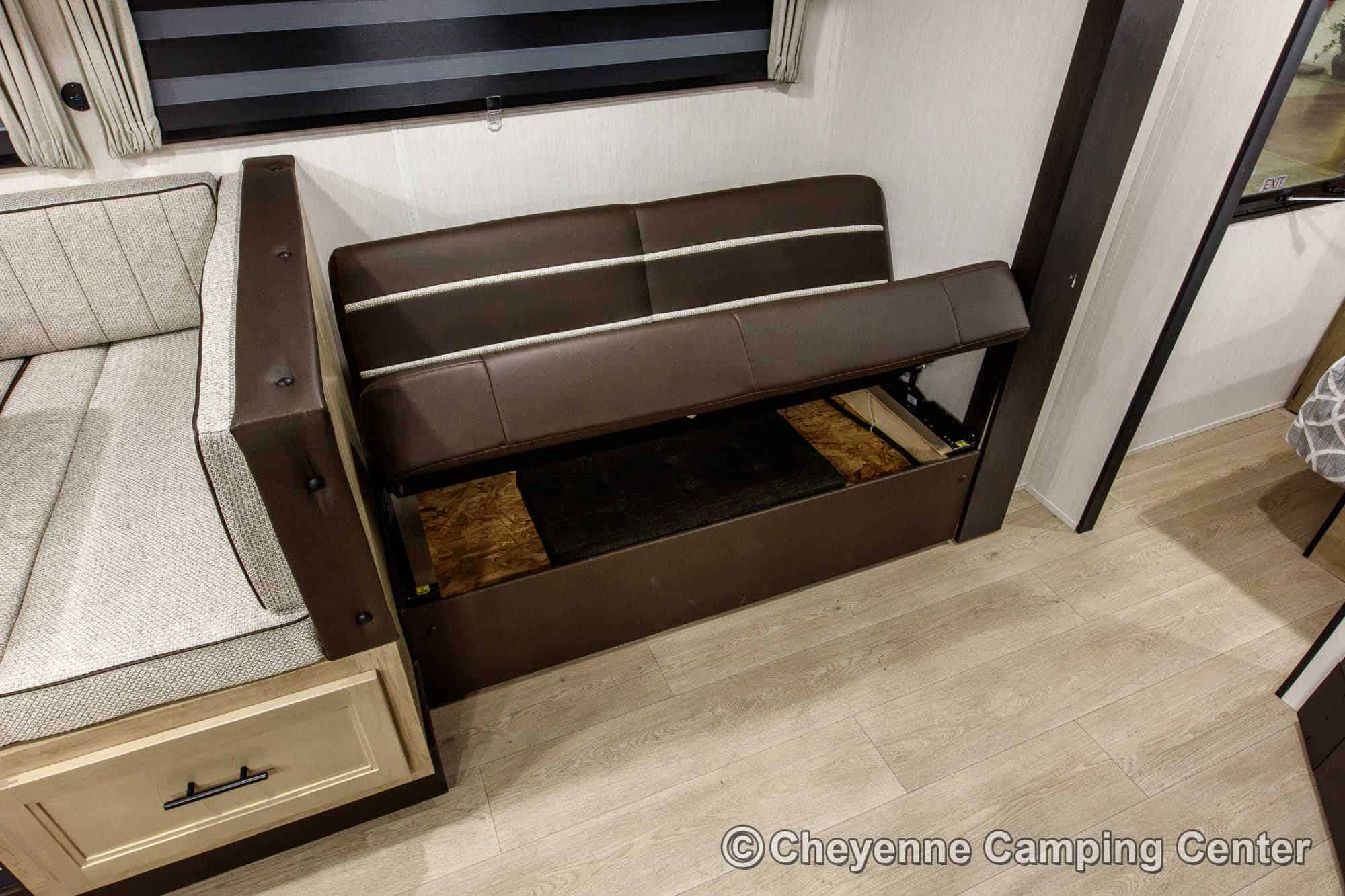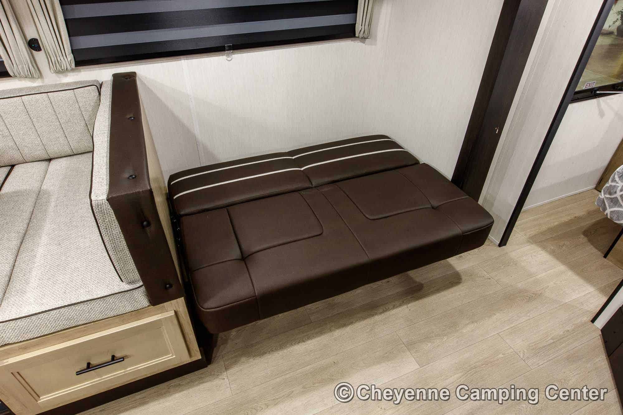 Additional features include premium window shades, convenient storage cubes by the bunks, one year of complimentary roadside assistance, and a one-year manufacturer’s warranty.
