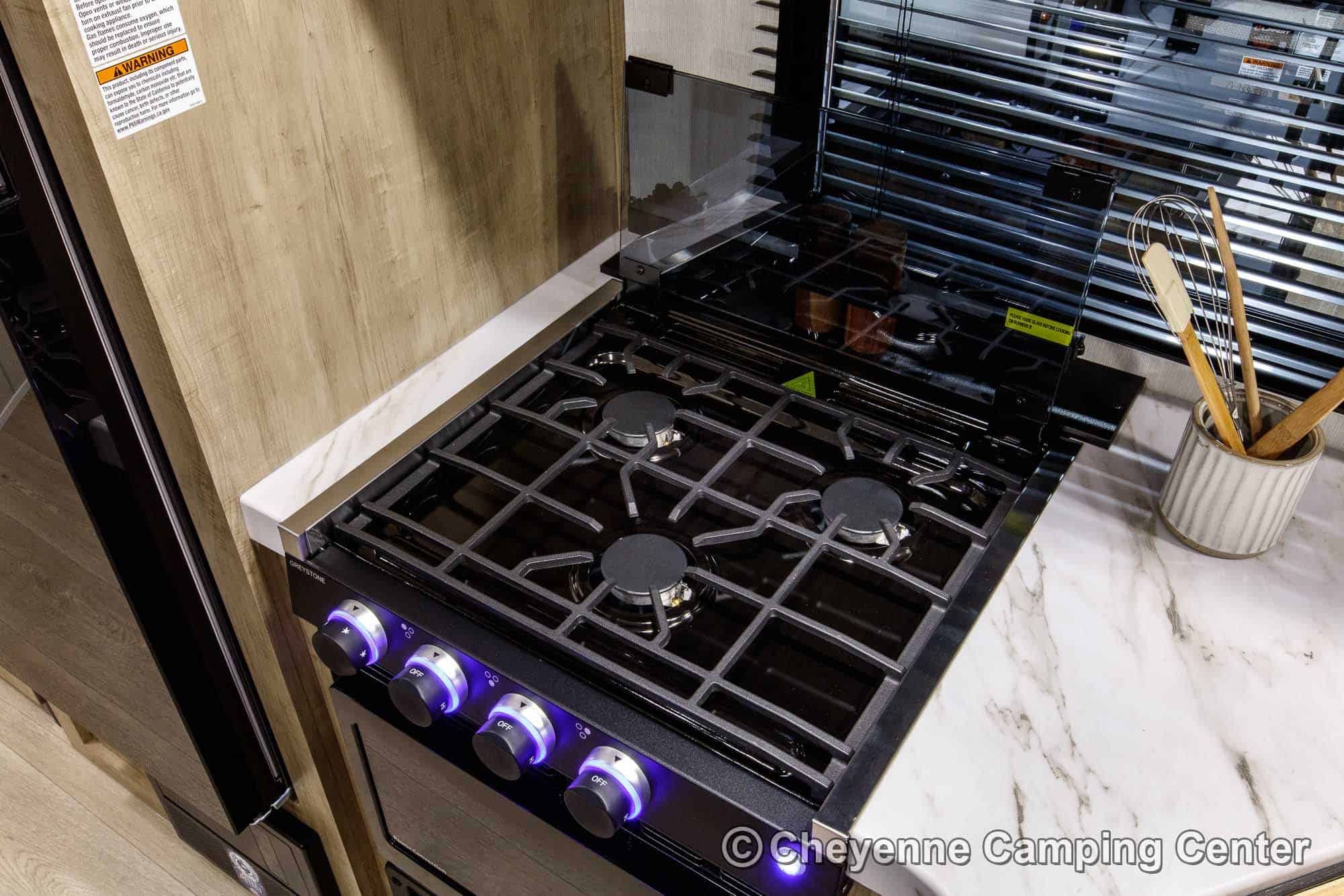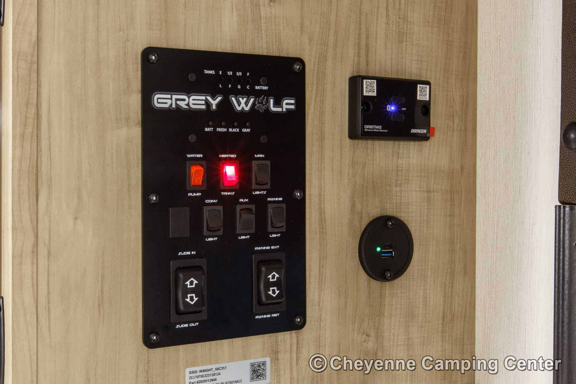 The Grey Wolf 29TE is perfect for outdoor living. It features a convenient outdoor kitchen complete with a large refrigerator, griddle, ice maker, sink, and storage. Two entry doors offer easy access, while the 15’ power awning with LED lighting creates the perfect space to relax in the shade. You’ll also find a 200-watt solar panel, MorRyde premium entry step at the main entry, a Leash Latch for pets, premium wheels, an exterior hot/cold shower, a black tank flush, power stabilizer jacks, a power tongue jack, marine-grade speakers, a flip-down rear cargo rack, battery disconnect, filled LP tanks, a 12V deep cycle battery, a spacious front drop-frame storage compartment, and another storage compartment at the rear. For extended season comfort, the 29TE includes an LP gas furnace, a 15,000 BTU ducted air conditioner, and enclosed holding tanks with heat pads.