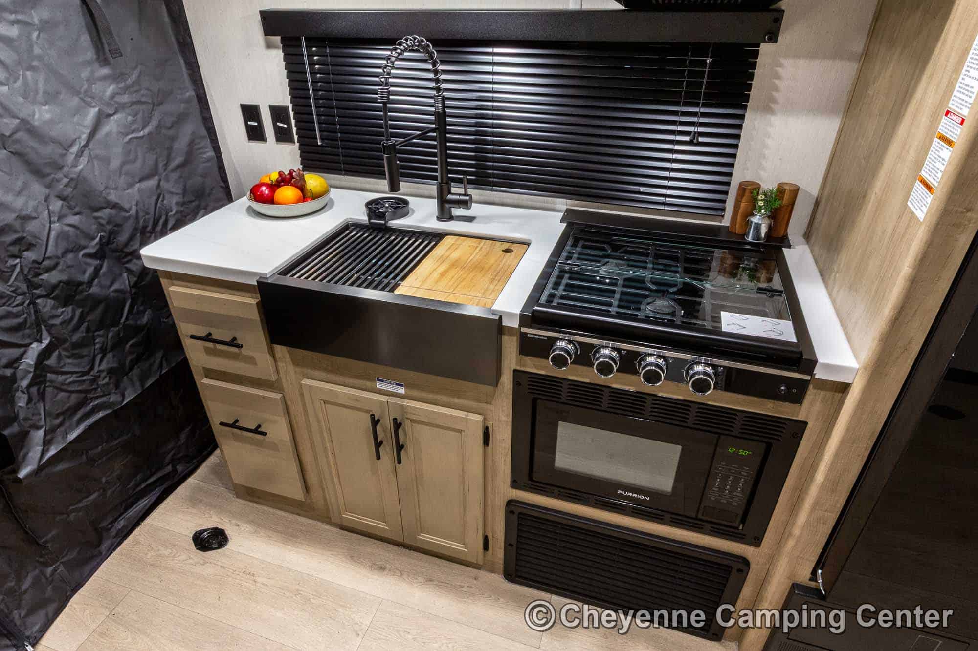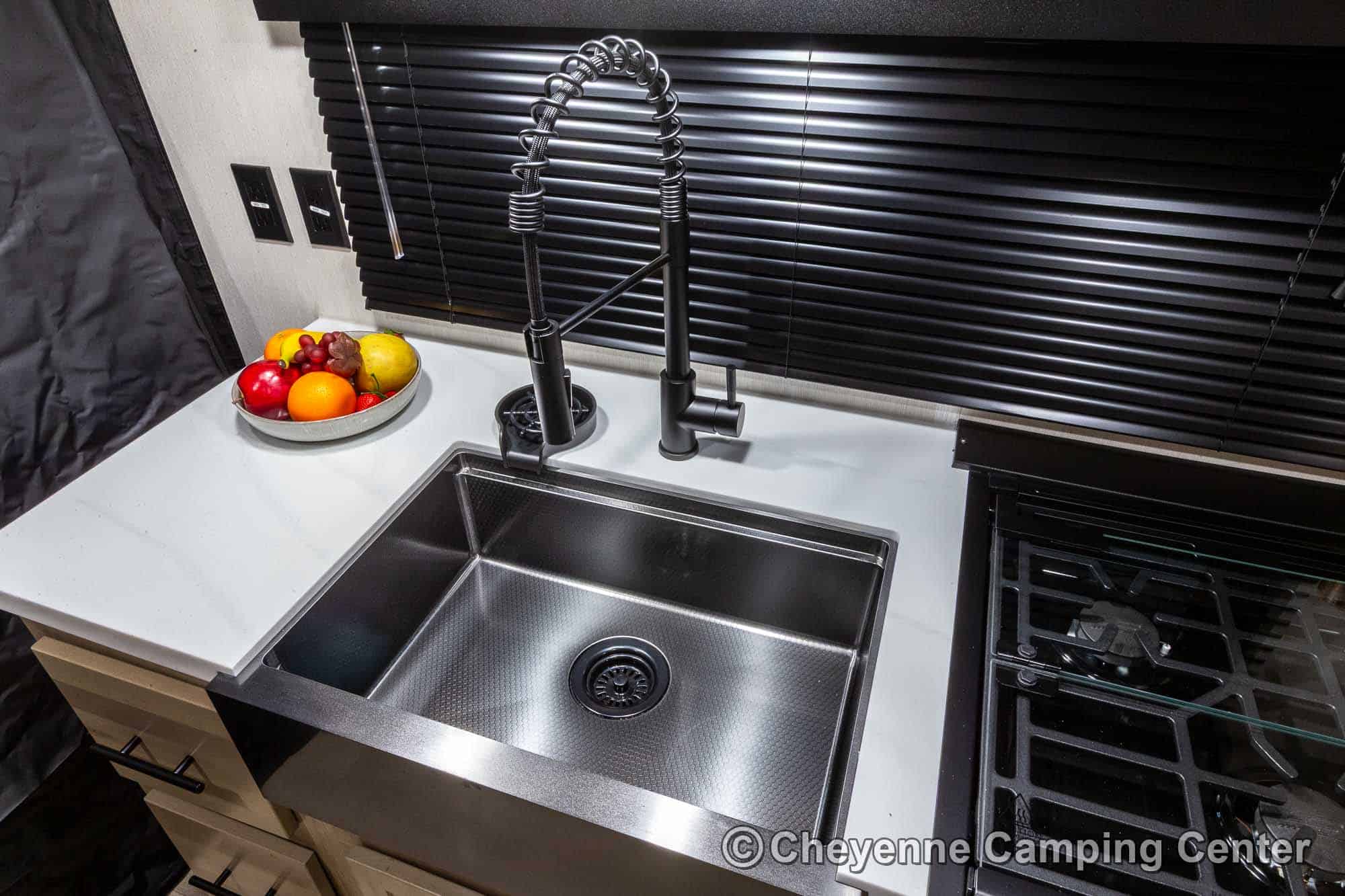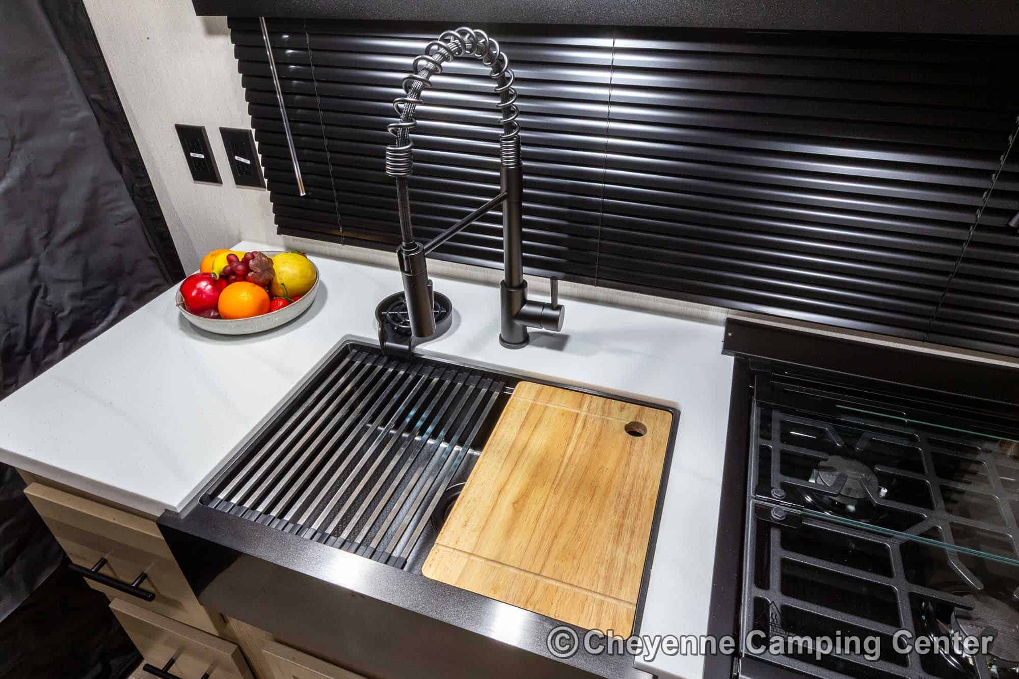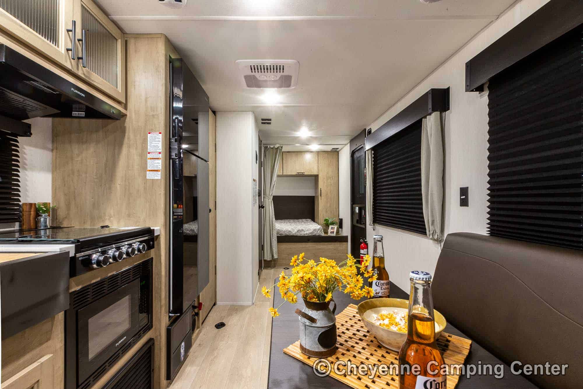 This upgraded Black Label Edition takes the popular Grey Wolf 18RR to the next level with high-gloss fiberglass siding, frameless windows, solid surface countertops, modern upgraded fixtures, and premium design touches throughout.