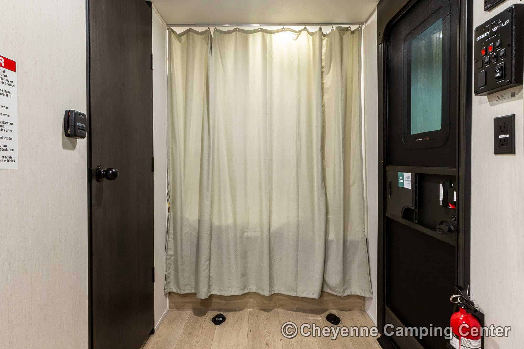 The Cherokee Grey Wolf 18RRBL includes the Limited, Campfire, and Base Camp Packages for added value. You’ll enjoy a full kitchen with a 10 cu. ft. refrigerator, large pantry, and microwave/convection oven with an integrated air fryer. Comfort continues with a tankless on-demand water heater, a full bathroom featuring a shower, foot-flush toilet, and power ventilator fan, as well as premium window shades, a glass entry door, a 15,000 BTU air conditioning, and an LP gas furnace.