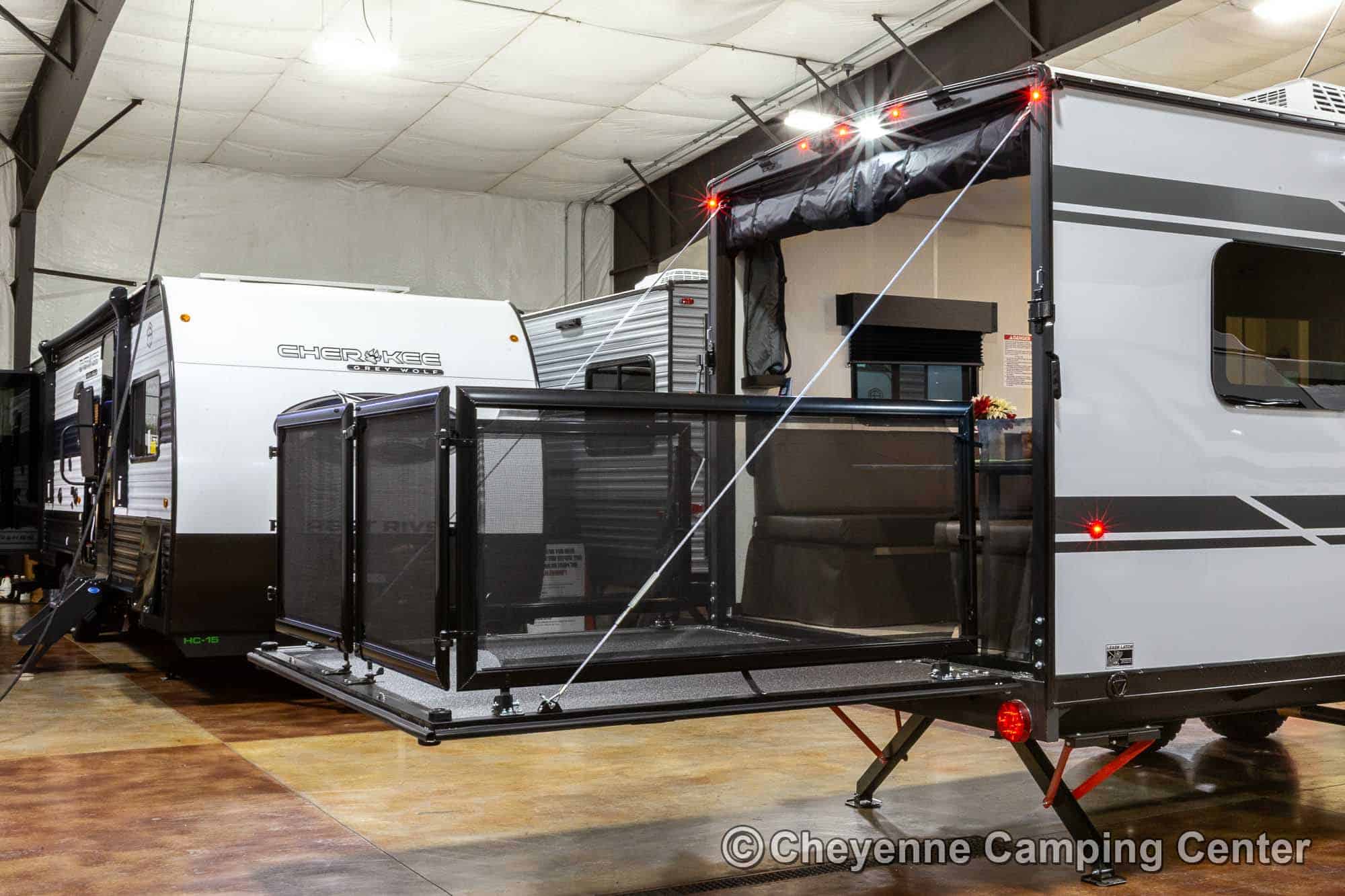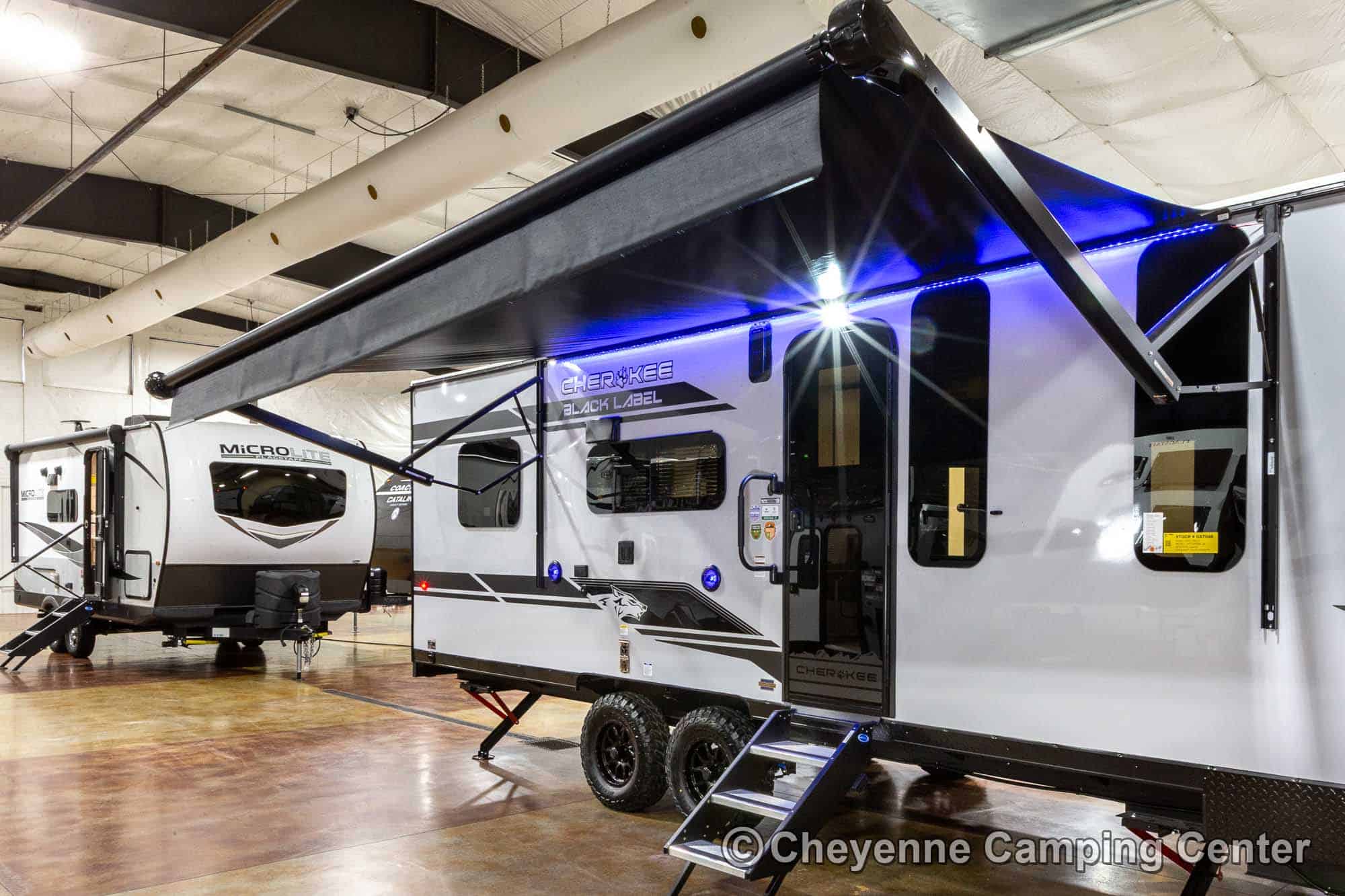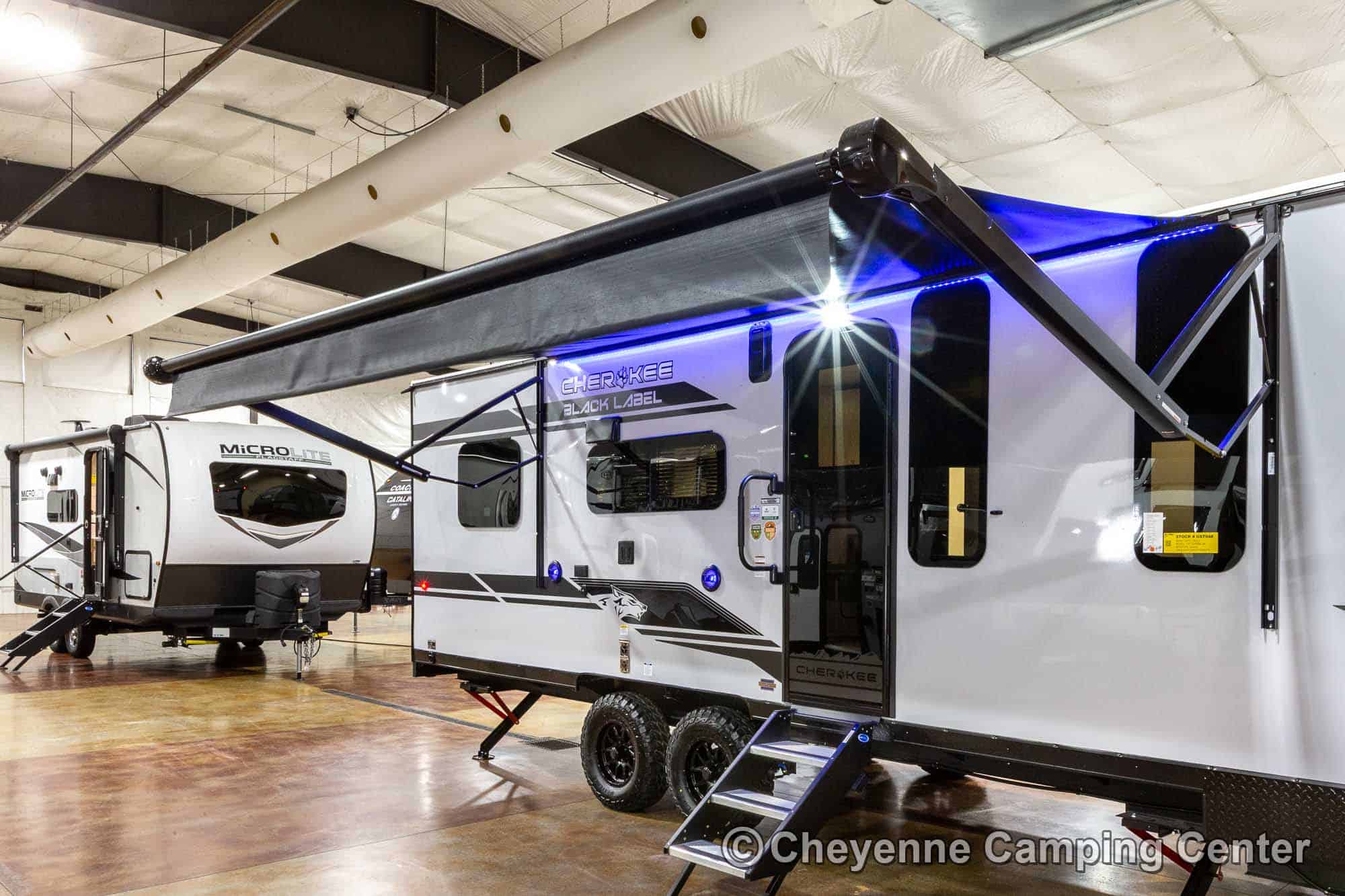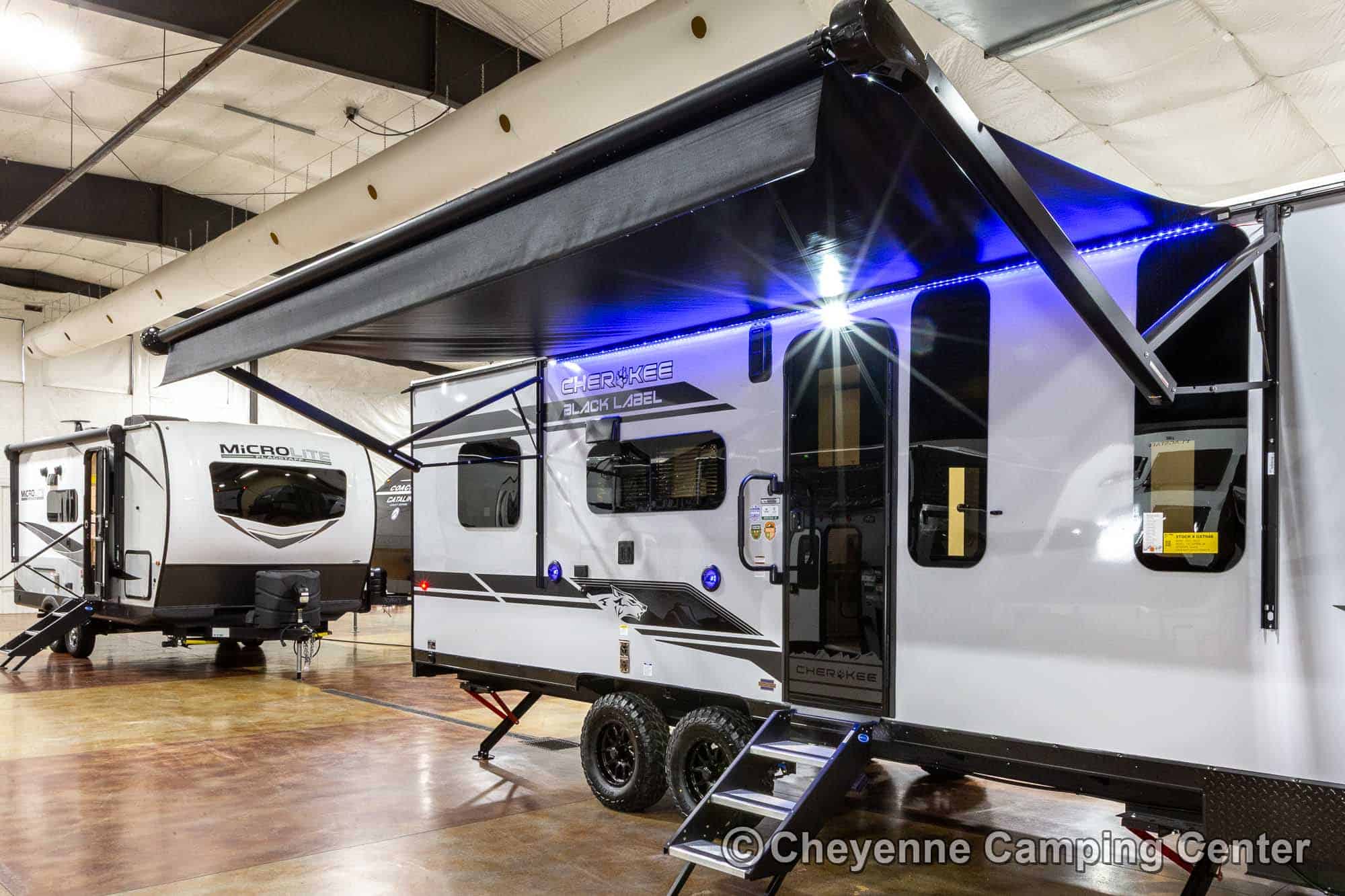 The Cherokee Grey Wolf Black Label 22RRBL for sale at Cheyenne Camping Center is a lightweight, versatile toy hauler that delivers style, comfort, and value. Come see it today at our store in Walcott, Iowa, right off I-80 at exit 284.