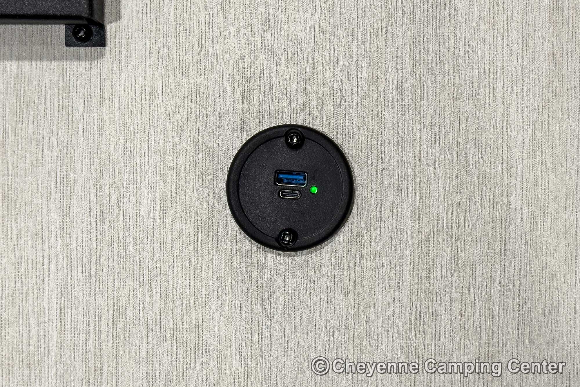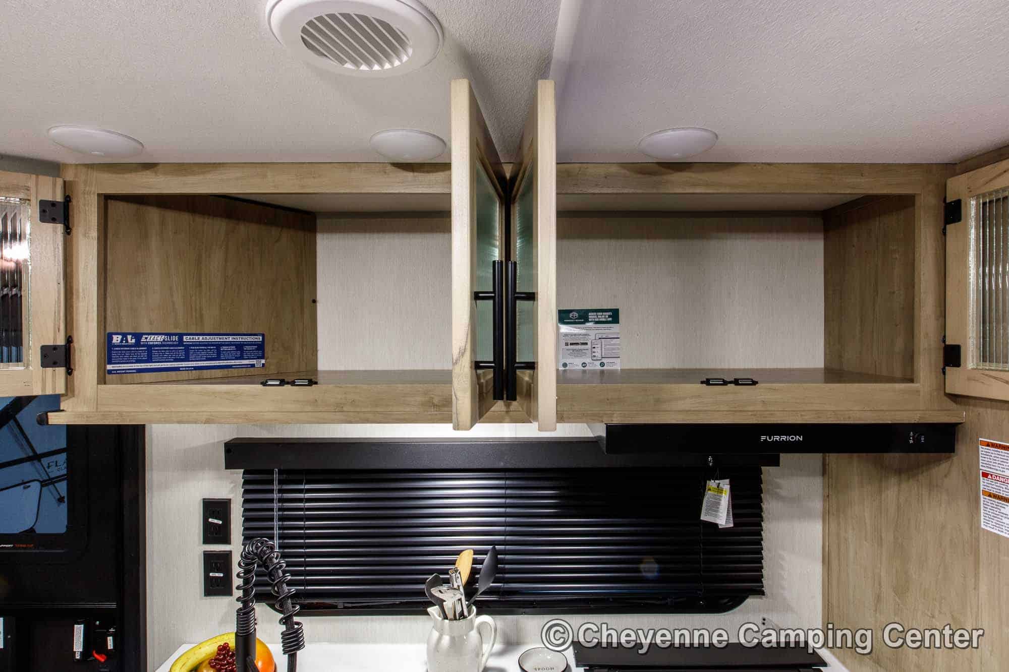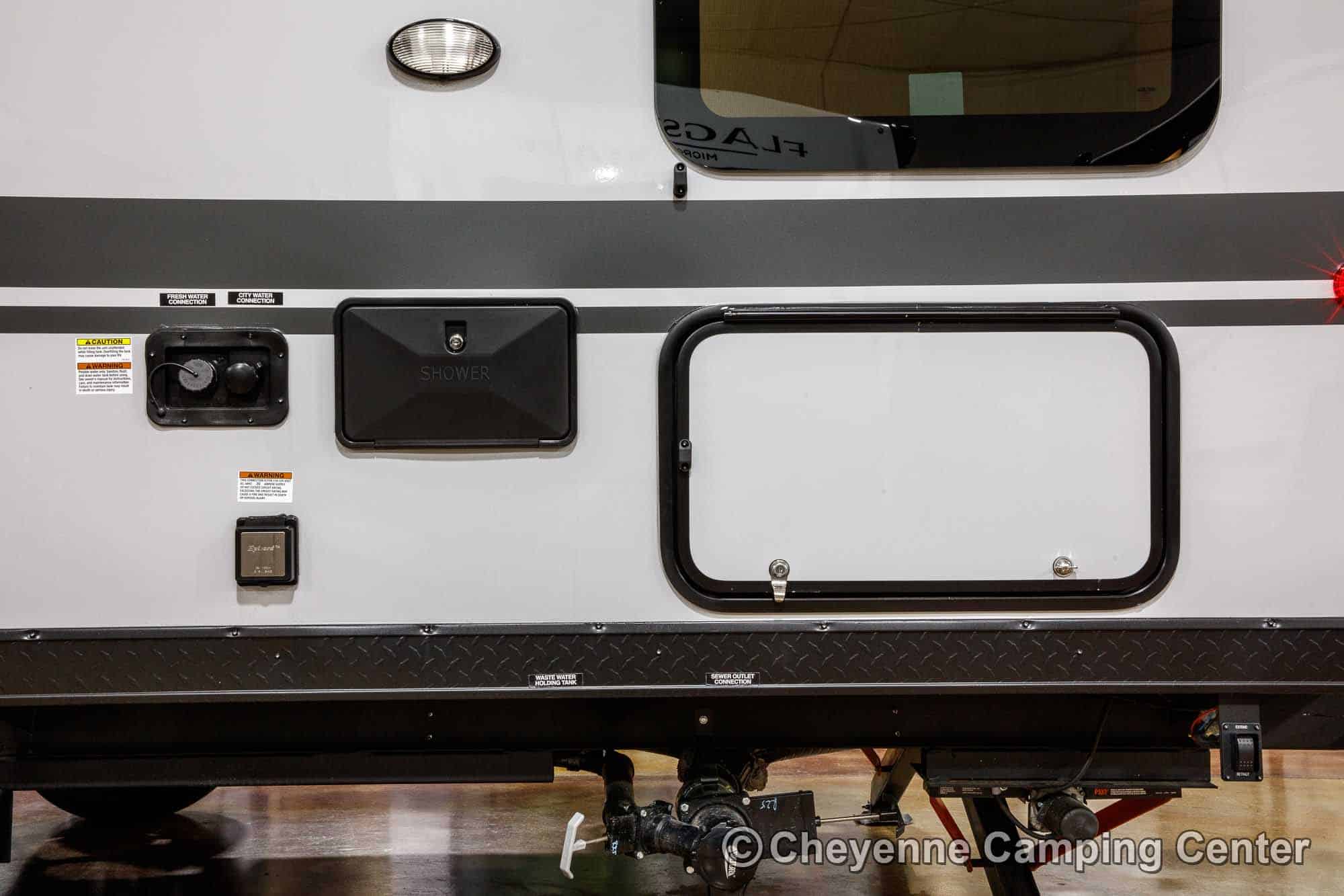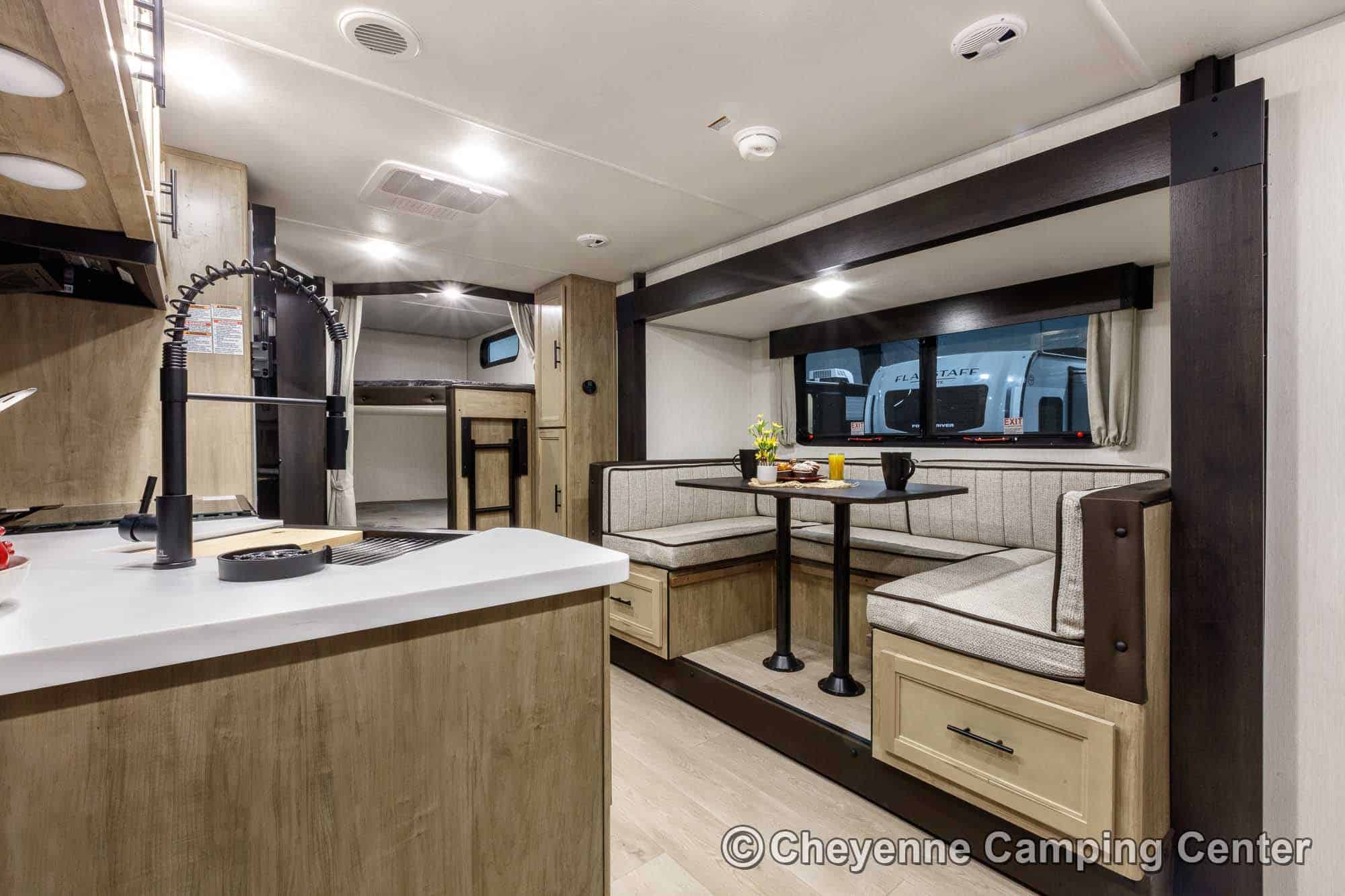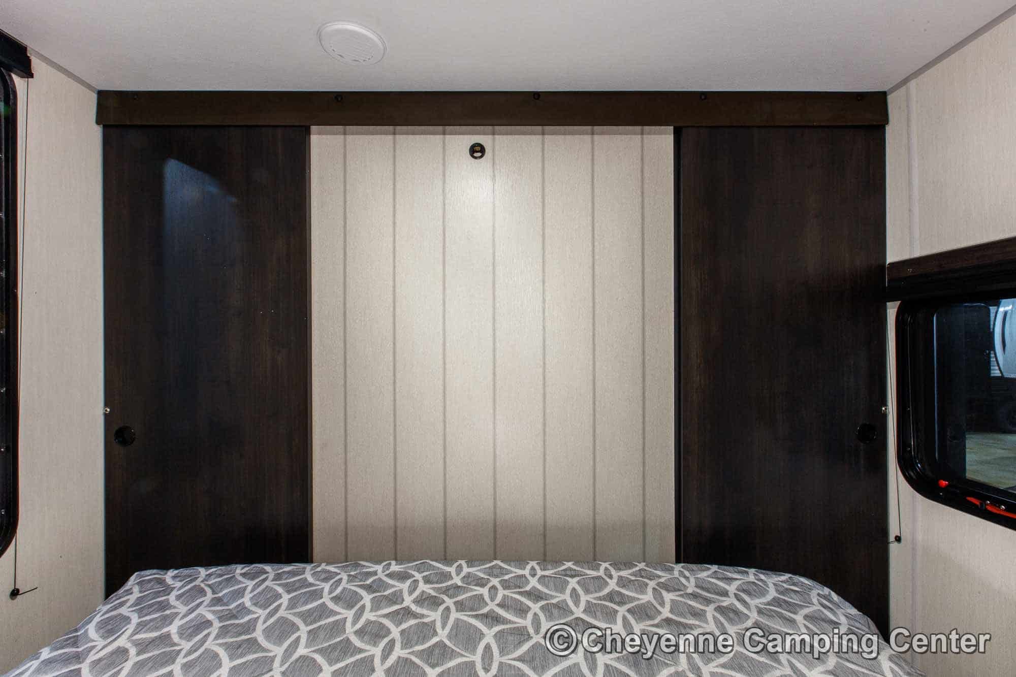 Other features include designer window shades, seamless countertops, battery disconnect, filled LP tanks, a 12V deep cycle battery, large “U” dinette, one year complimentary roadside assistance, one year manufacturer warranty, and much more! The Forest River Cherokee Grey Wolf Black Label 23DBHBL for sale at Cheyenne Camping Center is the ideal mid-sized family camper, combining style, comfort, and practicality for unforgettable adventures.