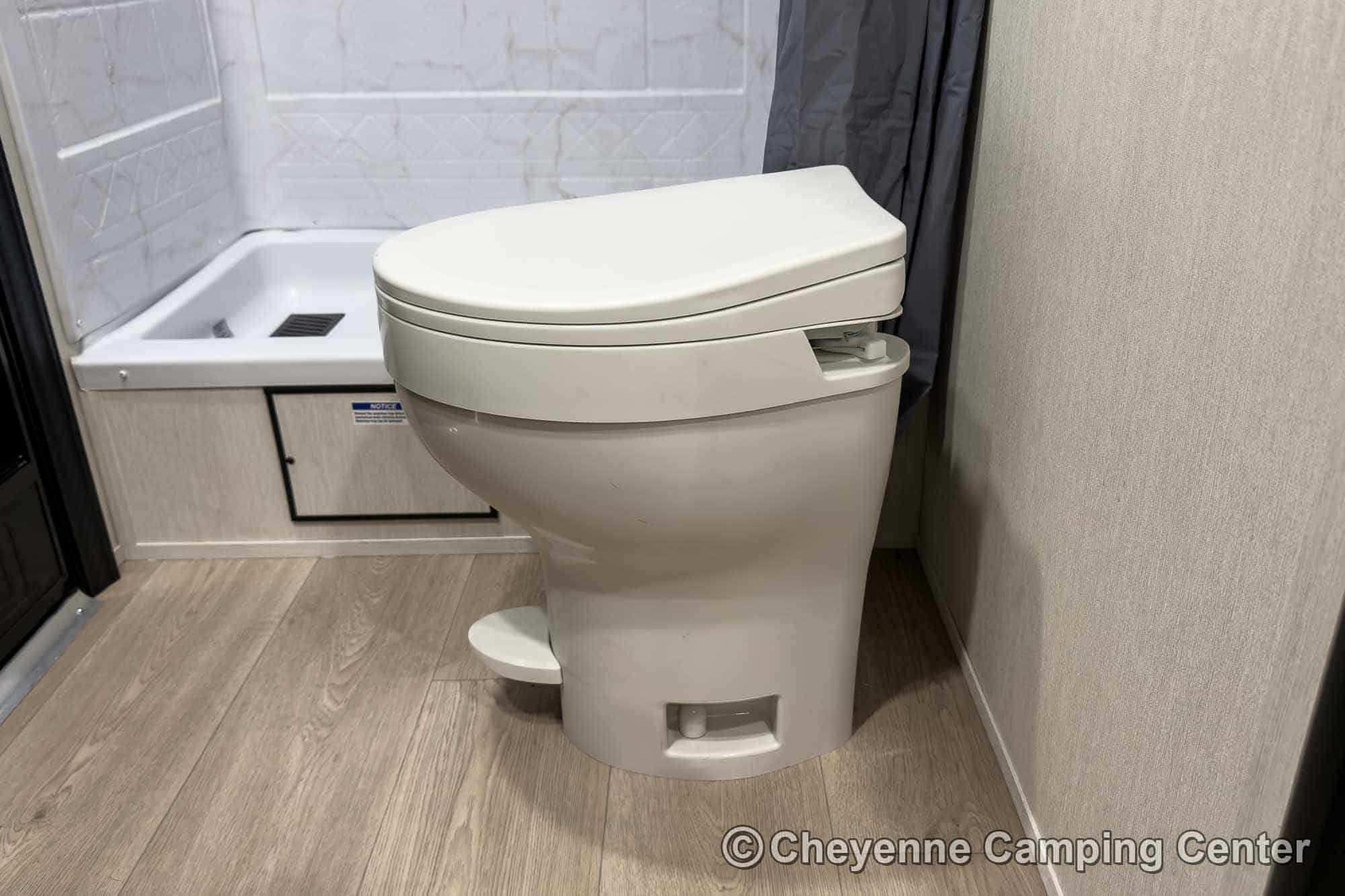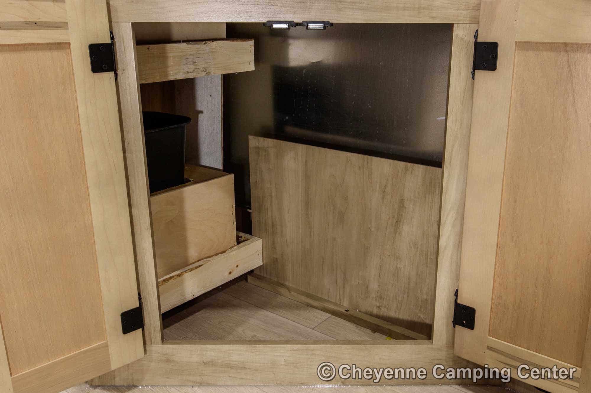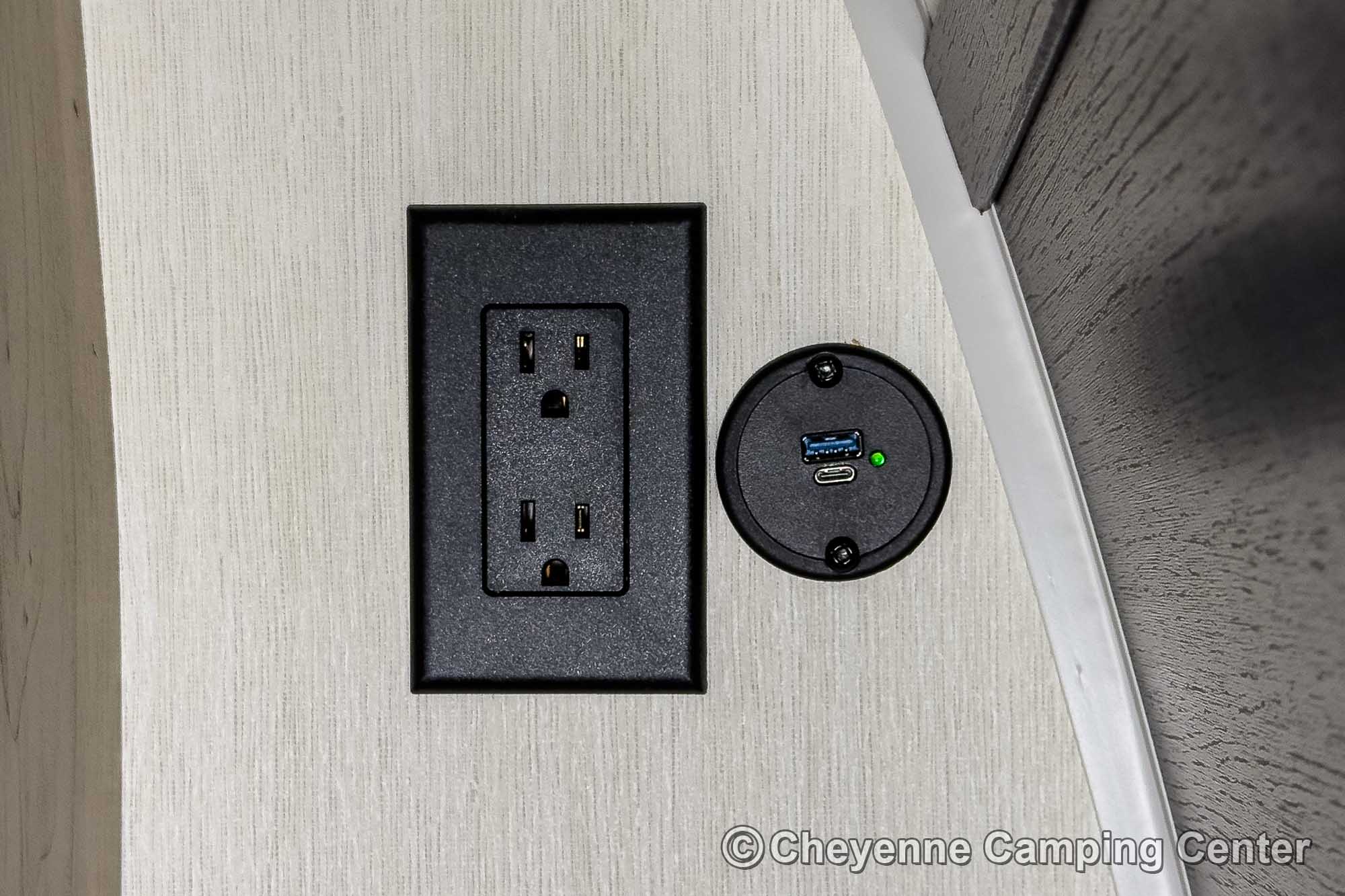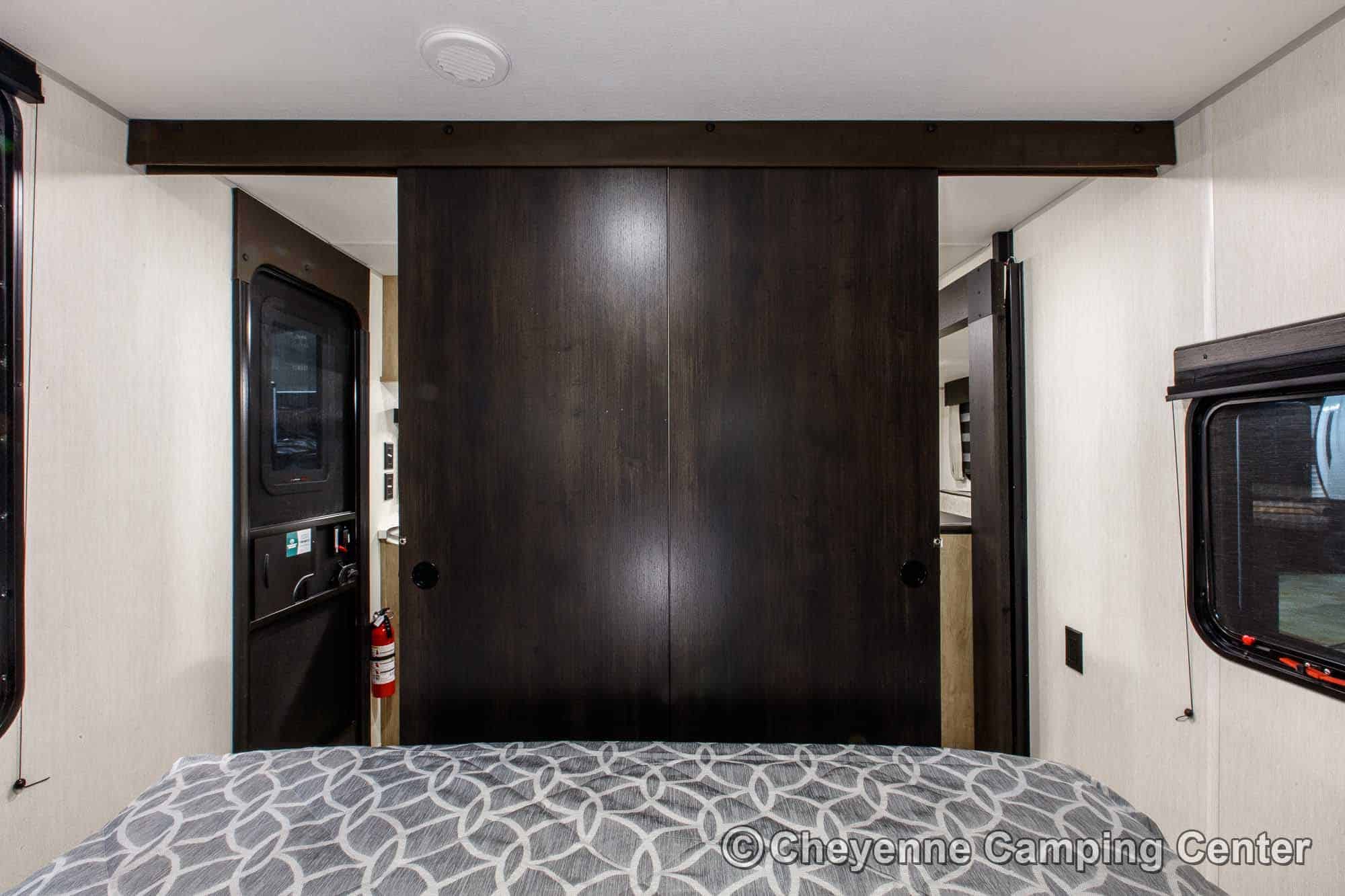 Other features include designer window shades, seamless countertops, battery disconnect, filled LP tanks, a 12V deep cycle battery, large “U” dinette, one year complimentary roadside assistance, one year manufacturer warranty, and much more! The Forest River Cherokee Grey Wolf Black Label 23DBHBL for sale at Cheyenne Camping Center is the ideal mid-sized family camper, combining style, comfort, and practicality for unforgettable adventures.