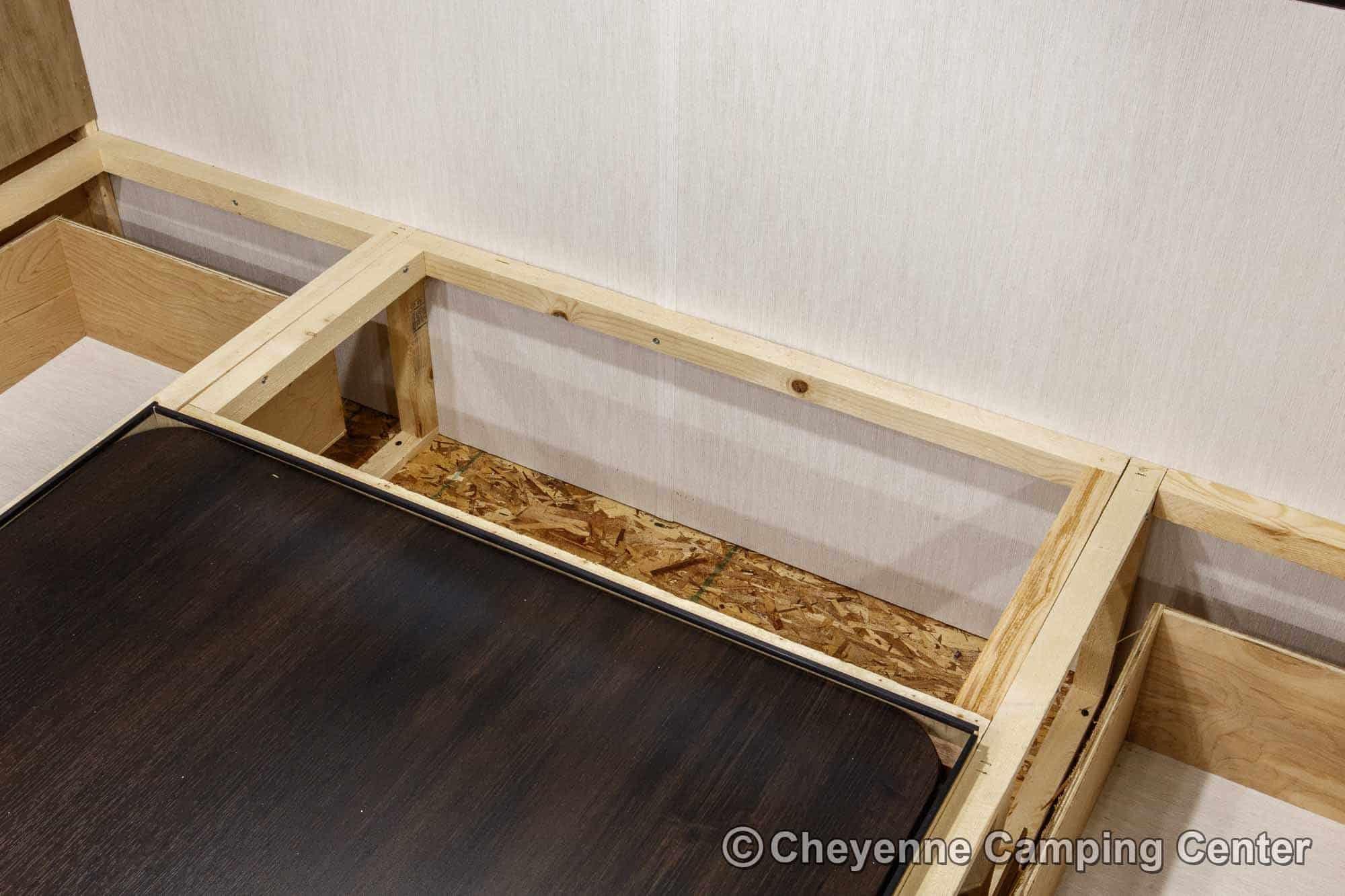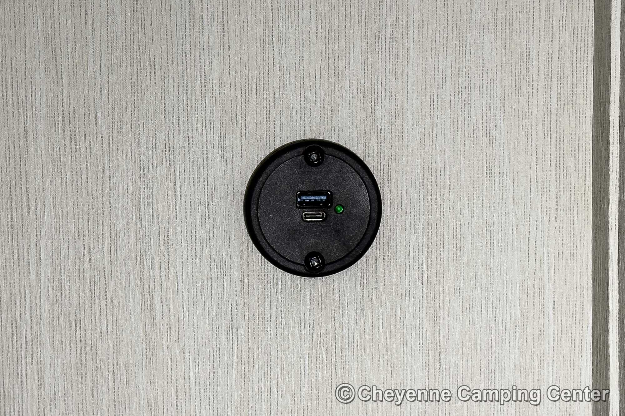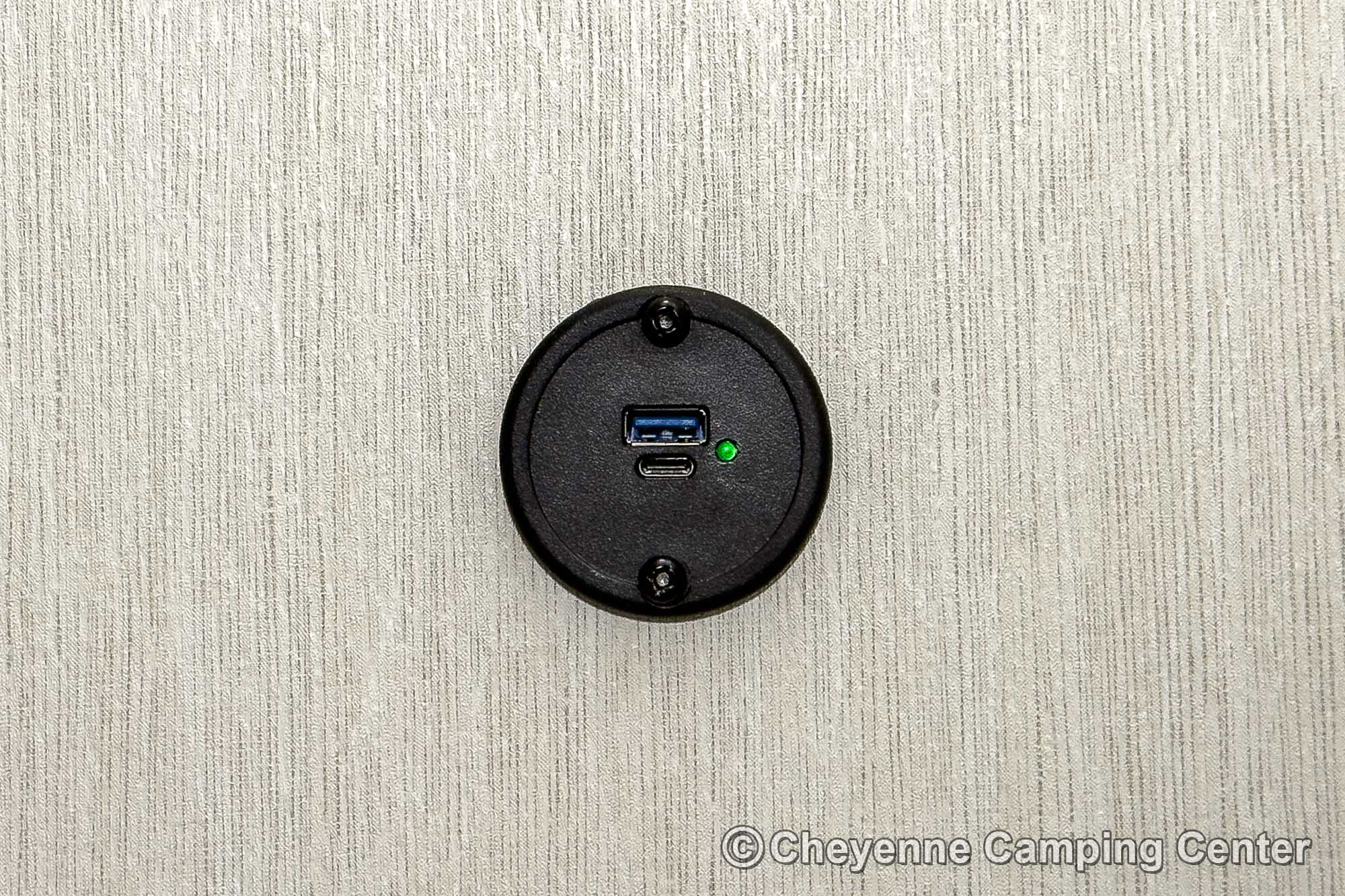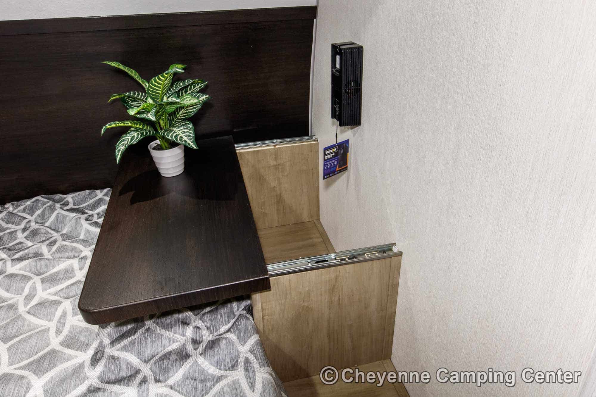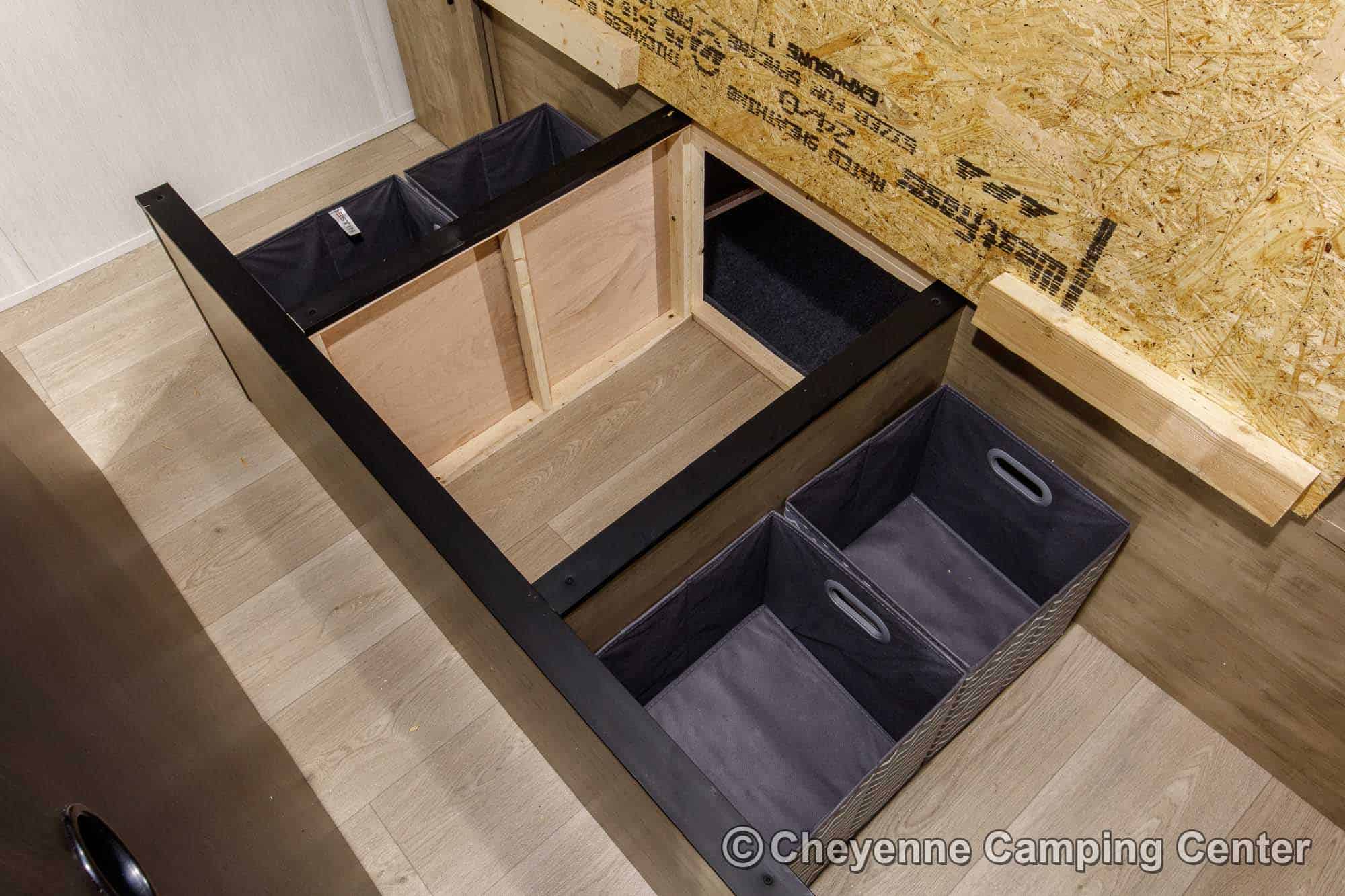 Other features include designer window shades, seamless countertops, battery disconnect, filled LP tanks, a 12V deep cycle battery, large “U” dinette, one year complimentary roadside assistance, one year manufacturer warranty, and much more! The Forest River Cherokee Grey Wolf Black Label 23DBHBL for sale at Cheyenne Camping Center is the ideal mid-sized family camper, combining style, comfort, and practicality for unforgettable adventures.
