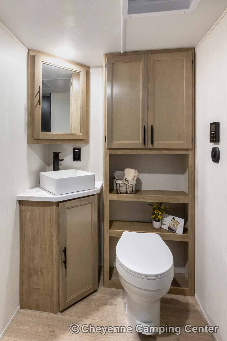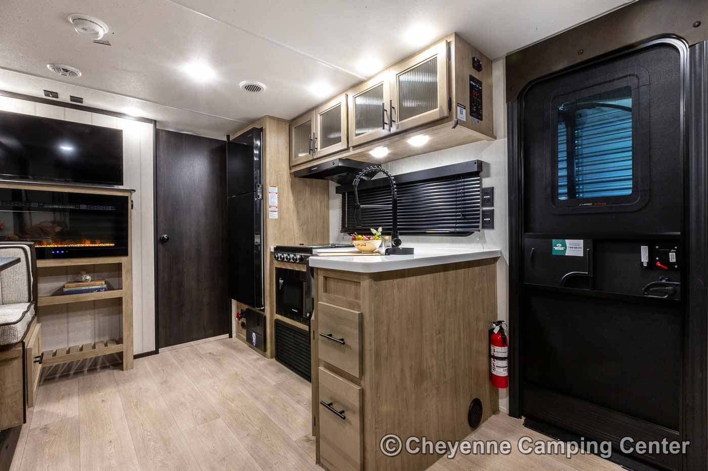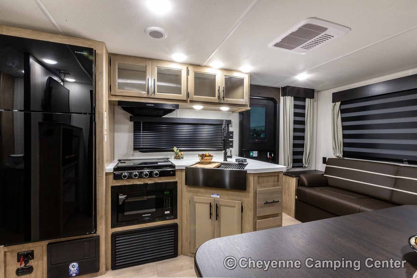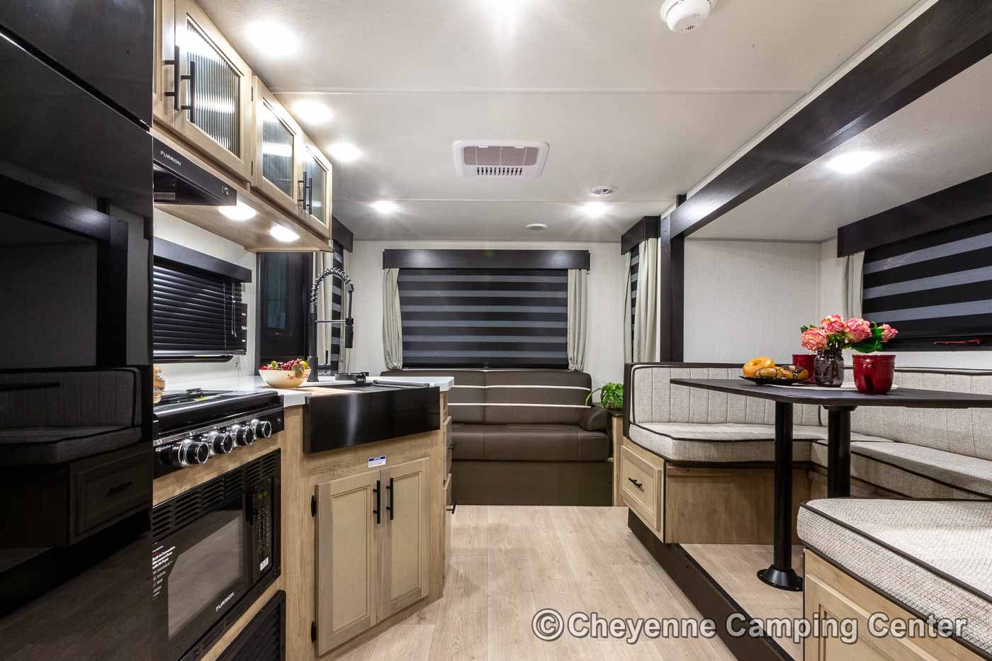 The Cherokee Grey Wolf Black Label 23MKBL for sale at Cheyenne Camping Center is an excellent choice for couples yet versatile enough for small families. It’s lightweight and easy to tow, making it a great option for both weekend getaways and extended adventures.