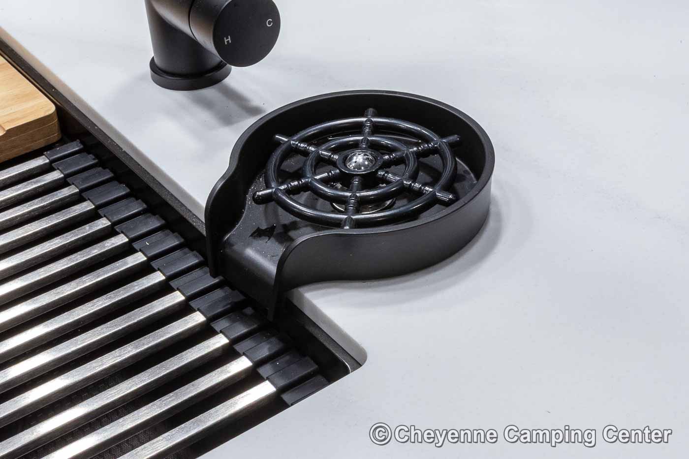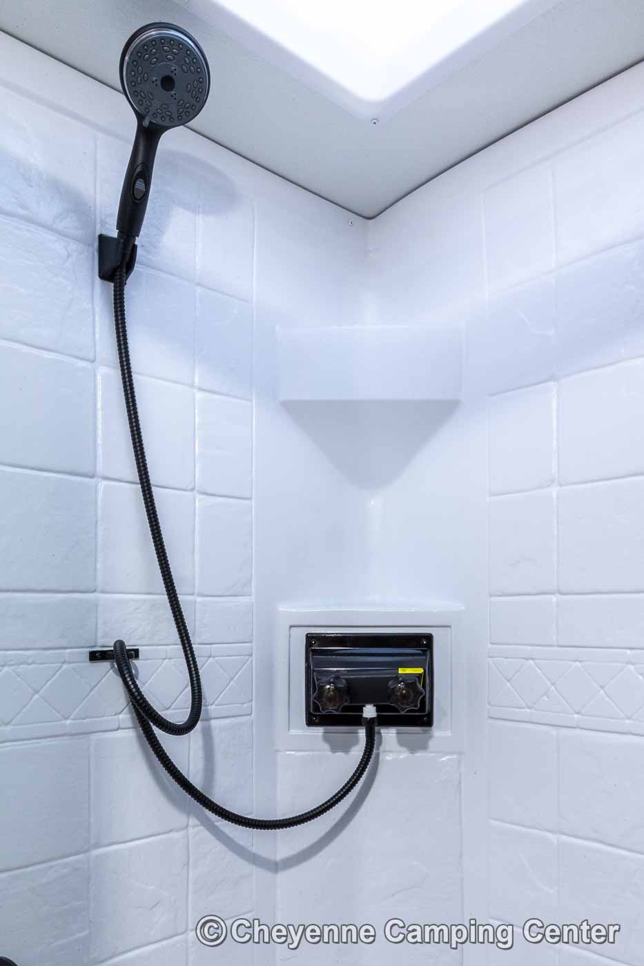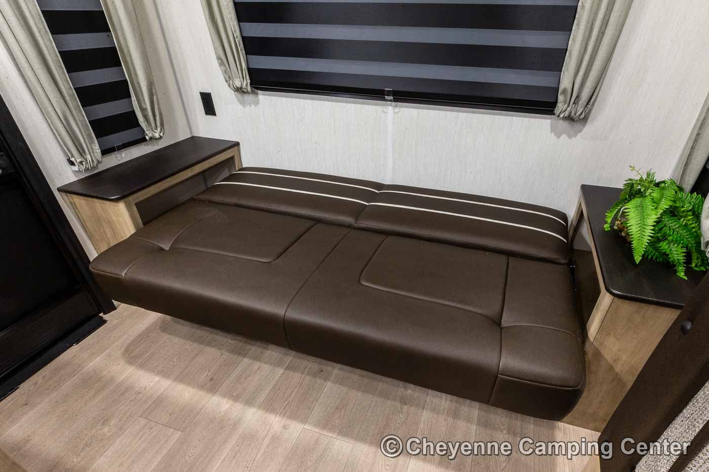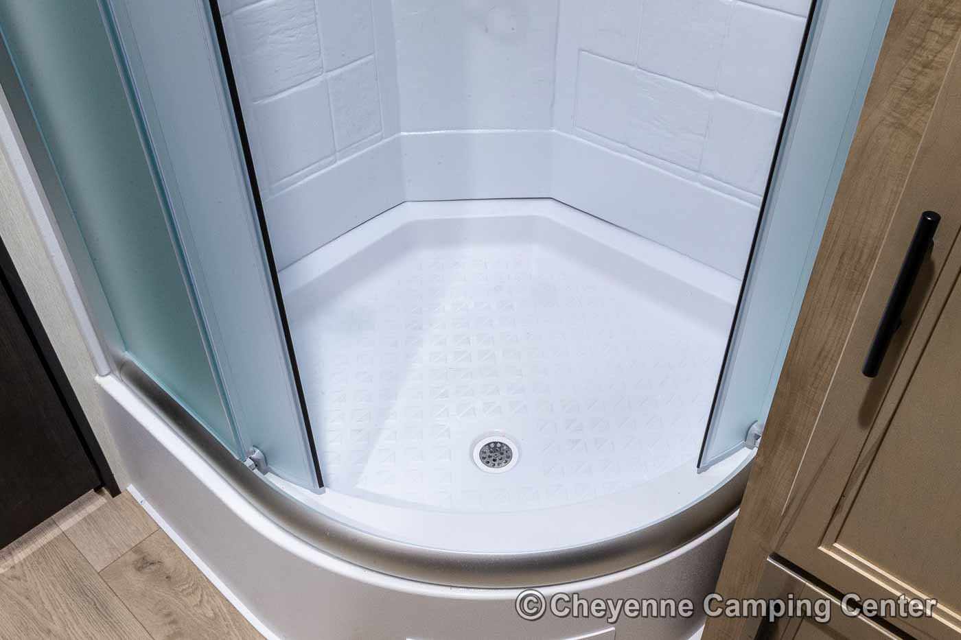 The Black Label Edition features premium fiberglass siding and frameless windows for a sleek look, while the Thermo Foil insulation keeps you cozy. The hands-free magnetic baggage door catch offers yet another level of convenience. You’ll also enjoy solid surface countertops, a beautifully upgraded shower fixture, designer cushion fabric, and upgraded reading lights that enhance your camping experience.
