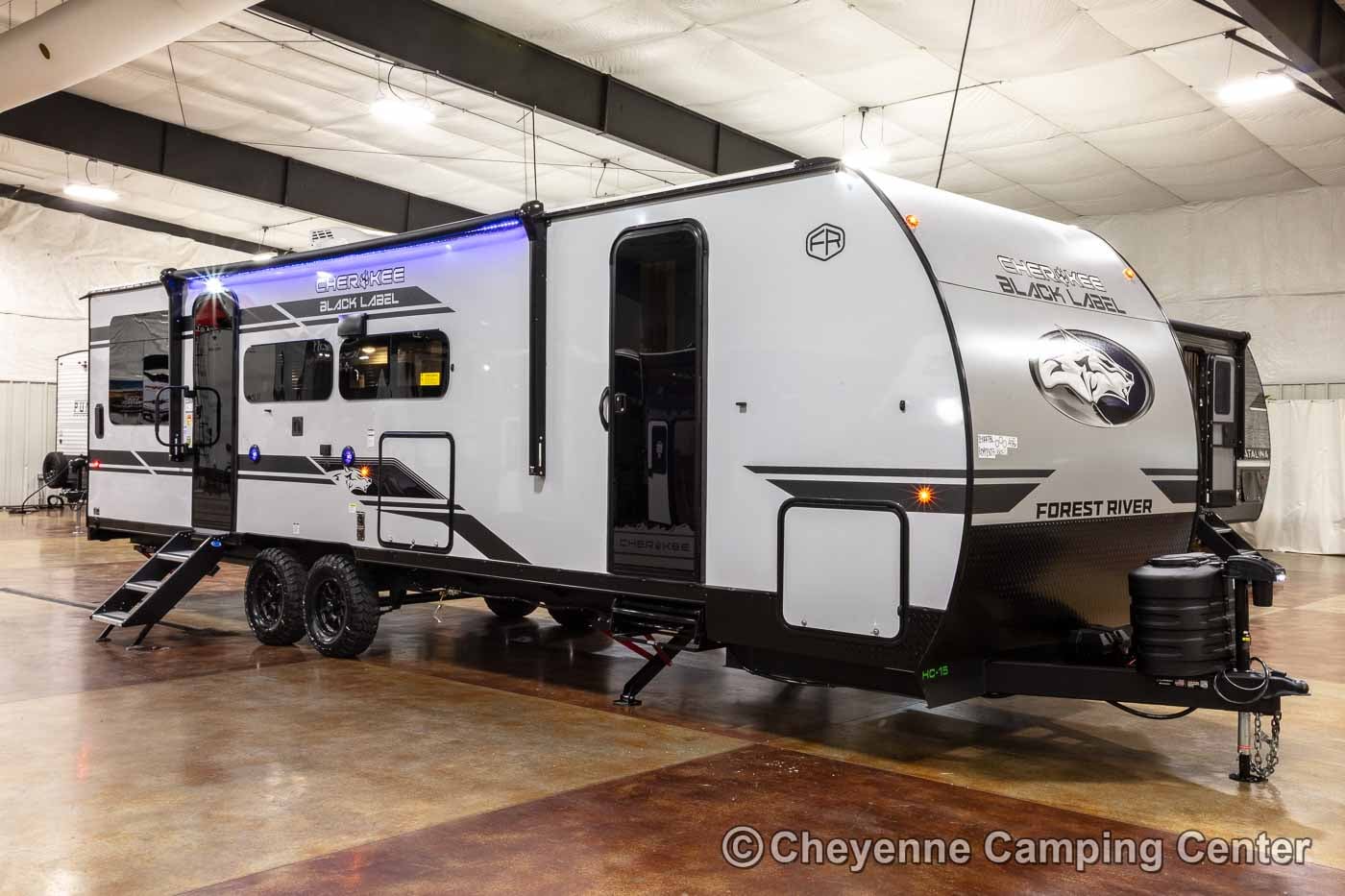 If you are looking for an affordable, well-equipped toy hauler travel trailer, the Cherokee Grey Wolf Black Label 24RRTBL for sale at Cheyenne Camping Center is the perfect choice!