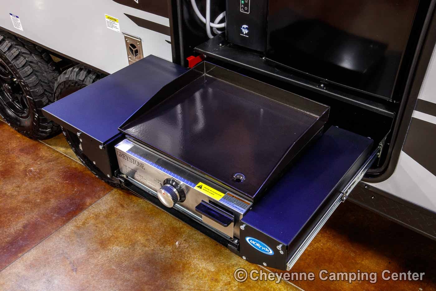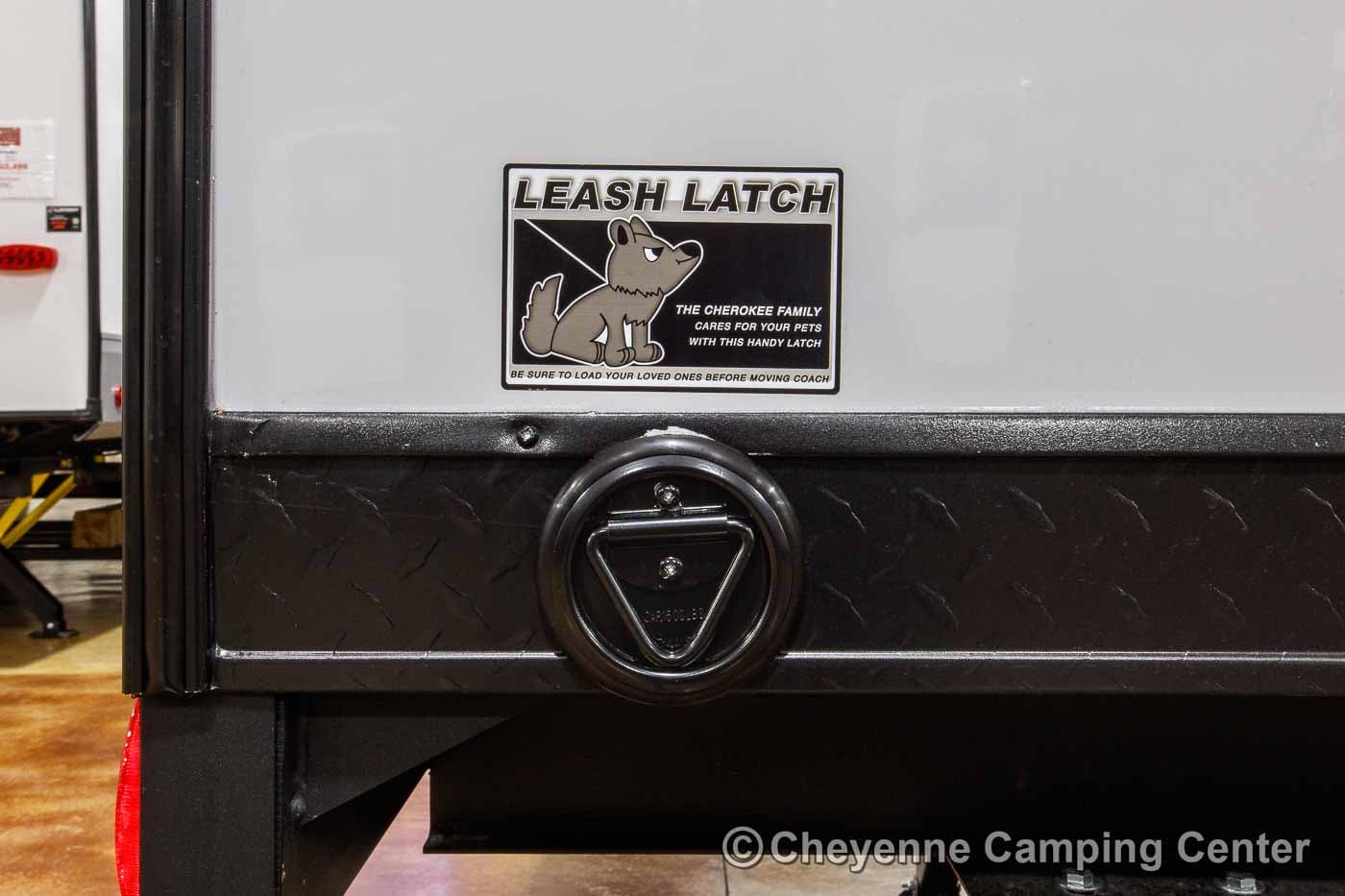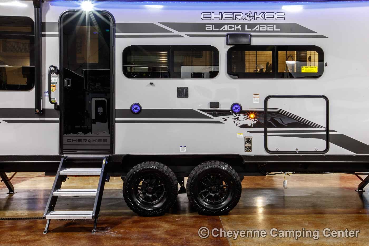 The Cherokee Grey Wolf Black Label 24RRT comes fully equipped with the Limited, Campfire, Base Camp, and Adventure Packages, giving you an unbeatable combination of comfort, convenience, and style. Enjoy the great outdoors with an exterior kitchen featuring a refrigerator, ice maker, water fixture, and gas grill/griddle. A 200-watt solar panel, premium aluminum wheels, glass entry door, power stabilizer jacks, and MORryde entry steps enhance both performance and curb appeal.