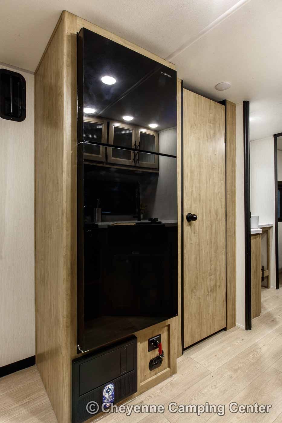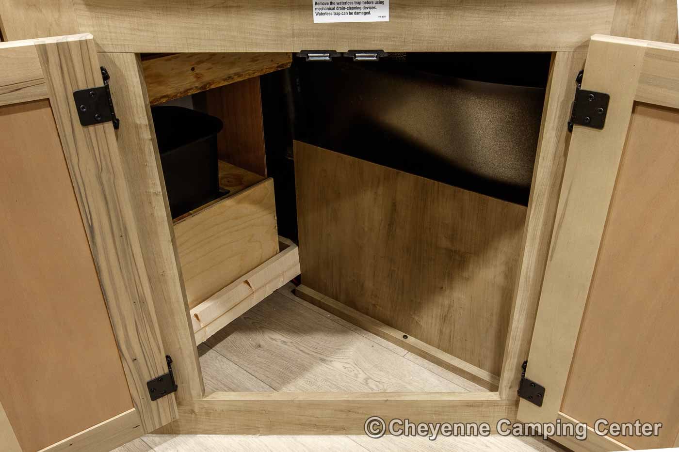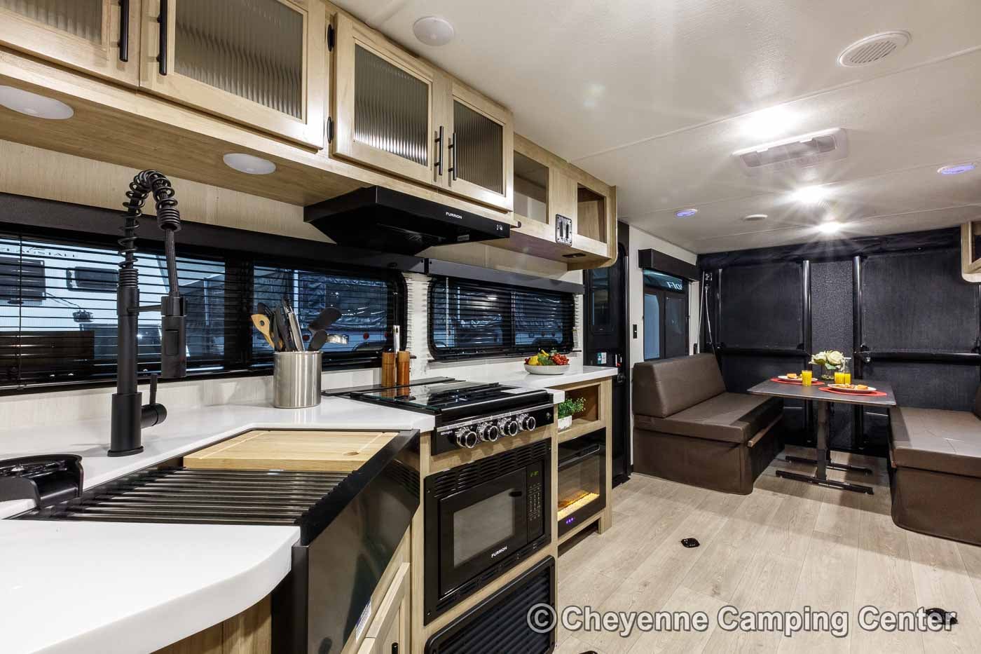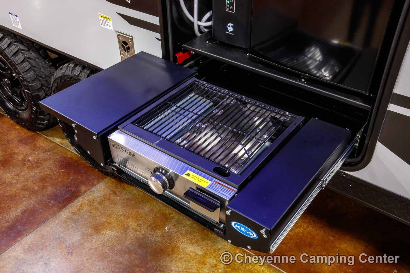 The Cherokee Grey Wolf Black Label 24RRT comes fully equipped with the Limited, Campfire, Base Camp, and Adventure Packages, giving you an unbeatable combination of comfort, convenience, and style. Enjoy the great outdoors with an exterior kitchen featuring a refrigerator, ice maker, water fixture, and gas grill/griddle. A 200-watt solar panel, premium aluminum wheels, glass entry door, power stabilizer jacks, and MORryde entry steps enhance both performance and curb appeal.