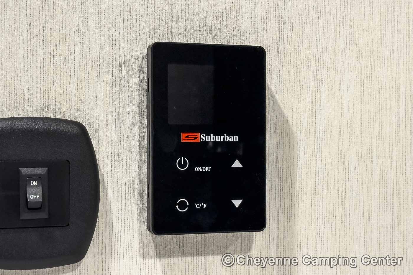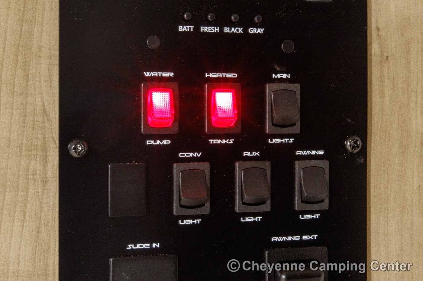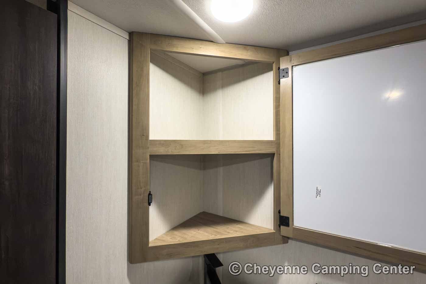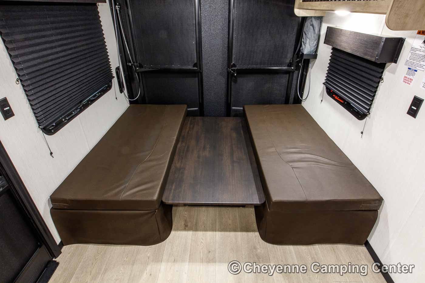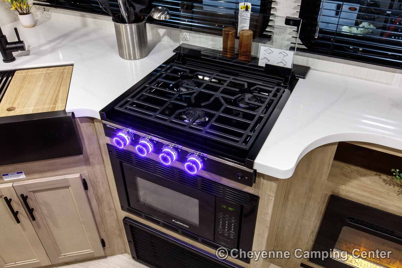 You’ll have premium features like a 15K BTU ducted air conditioner, tankless water heater, pleated window shades, a Bluetooth media receiver, and an electric fireplace. The spacious kitchen offers a large pantry and a 10 cu. ft. refrigerator, a microwave/convection oven with air fryer, an LP gas cooktop, and solid surface countertops.