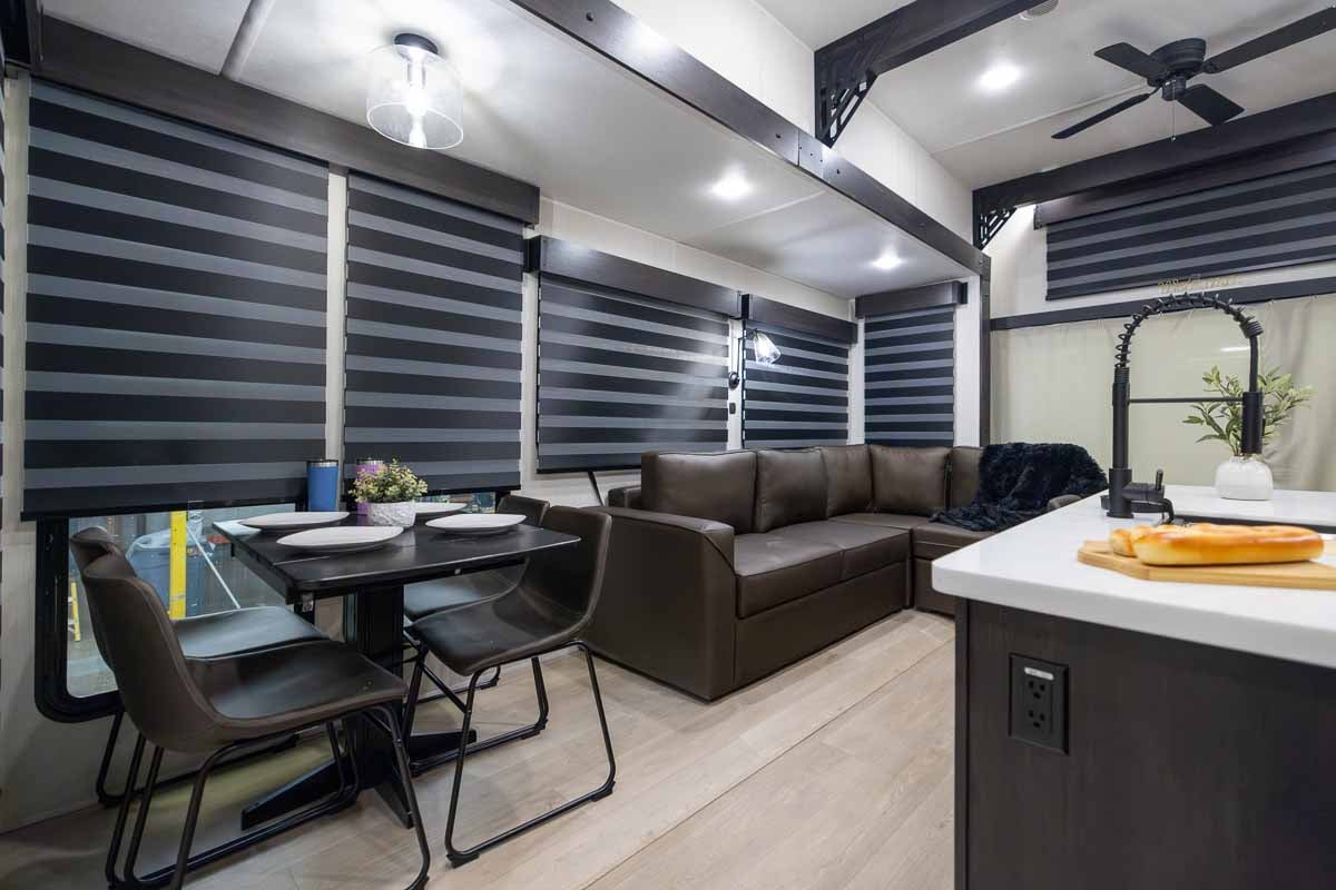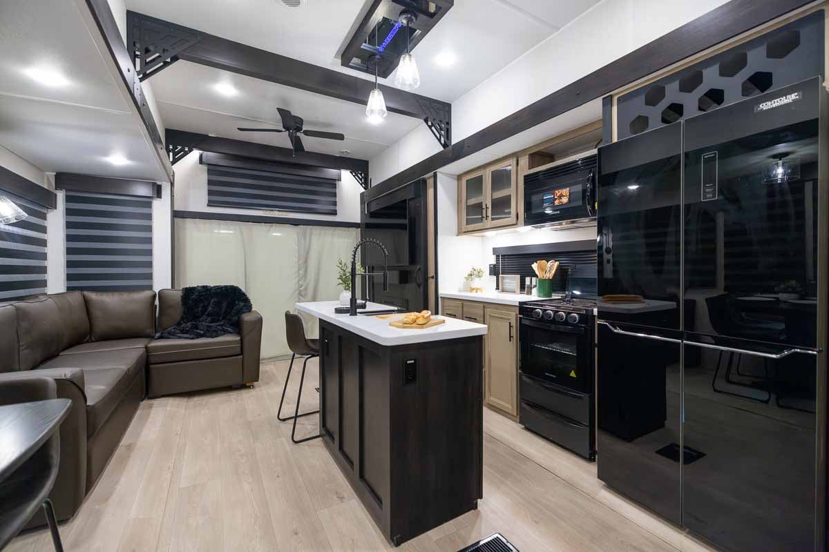 The Timberwolf 39JM includes, dual air conditioners, an LP gas furnace, and three electric fireplace to keep you comfortable in a variety of conditions. Additional features such as a tankless water heater, washer/dryer prep, a Bluetooth media system, and USB charging ports add to the residential feel.
