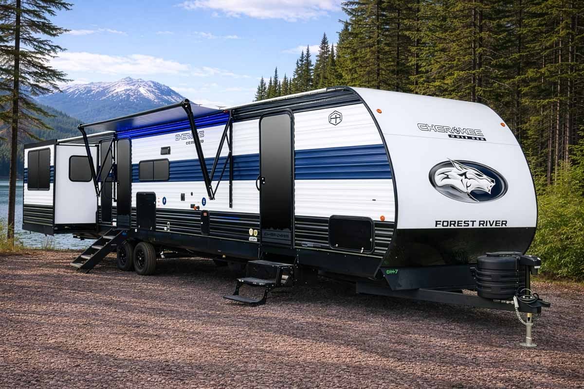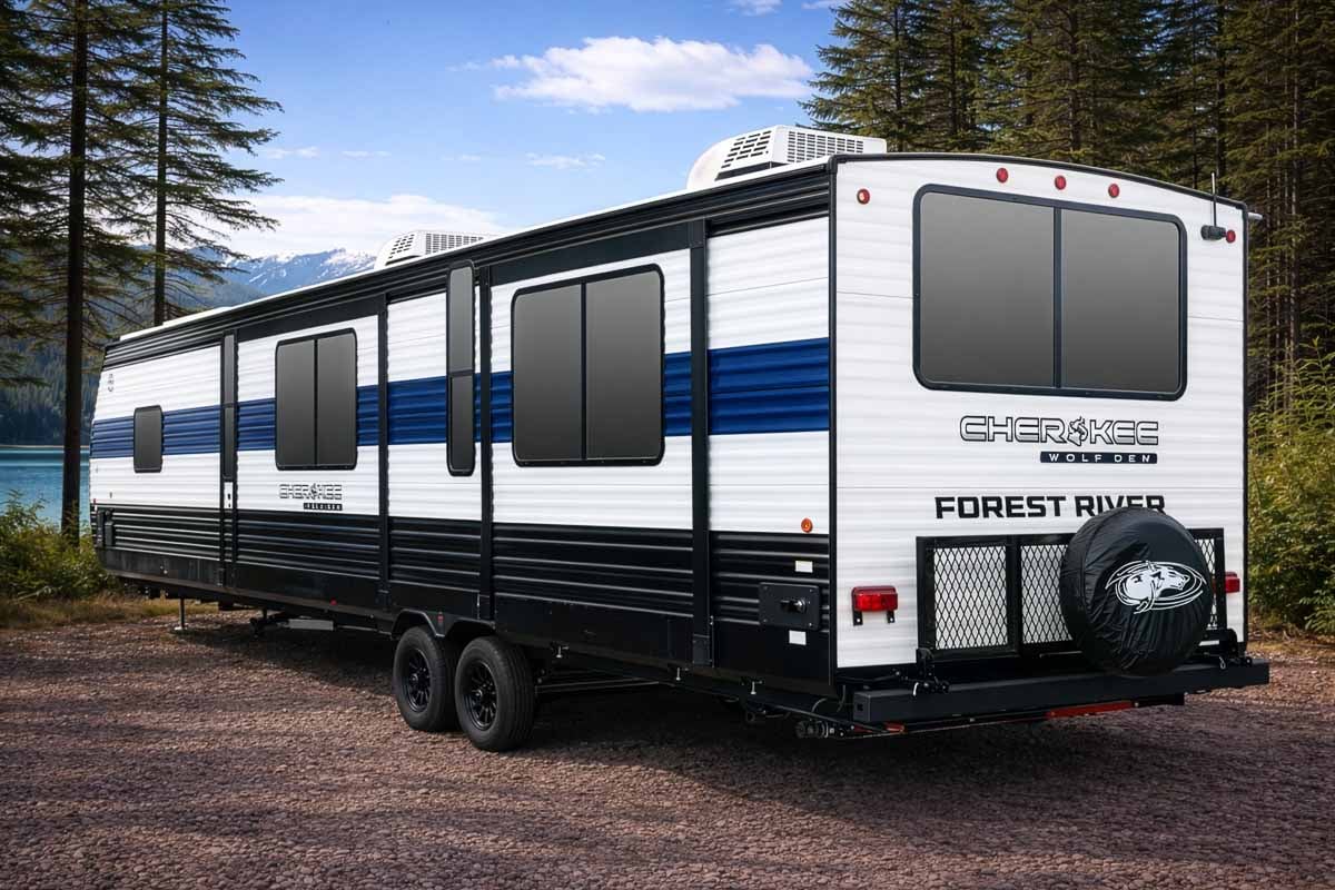 The 2026 Forest River Cherokee Wolf Den 306MM is a spacious and versatile triple-slide couples travel trailer designed for extended stays, entertaining, and flexible living. With a unique fifth-wheel style layout, dual-entry doors, and a blend of residential comfort and outdoor convenience, the 306MM stands out as a versatile camper that adapts to how you travel.