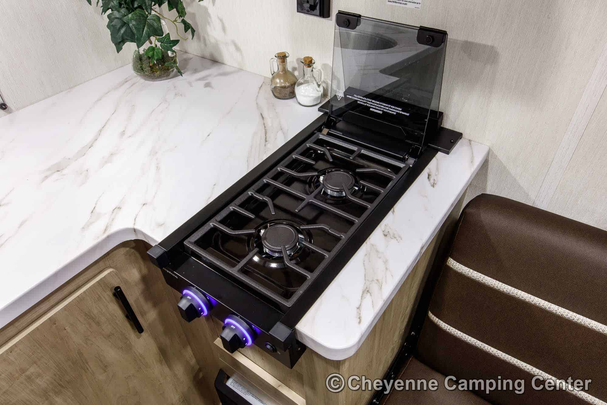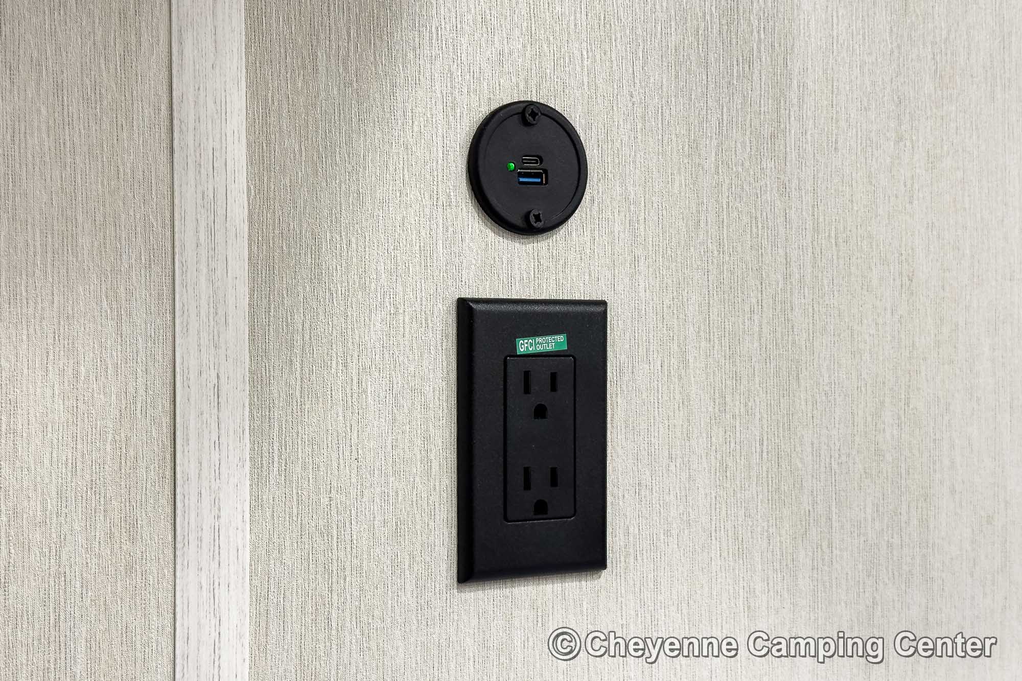 An efficient LP gas furnace and roof-mounted RV air conditioner assure comfort, while a power awning and power stabilizer jacks add everyday convenience to your camping experience.