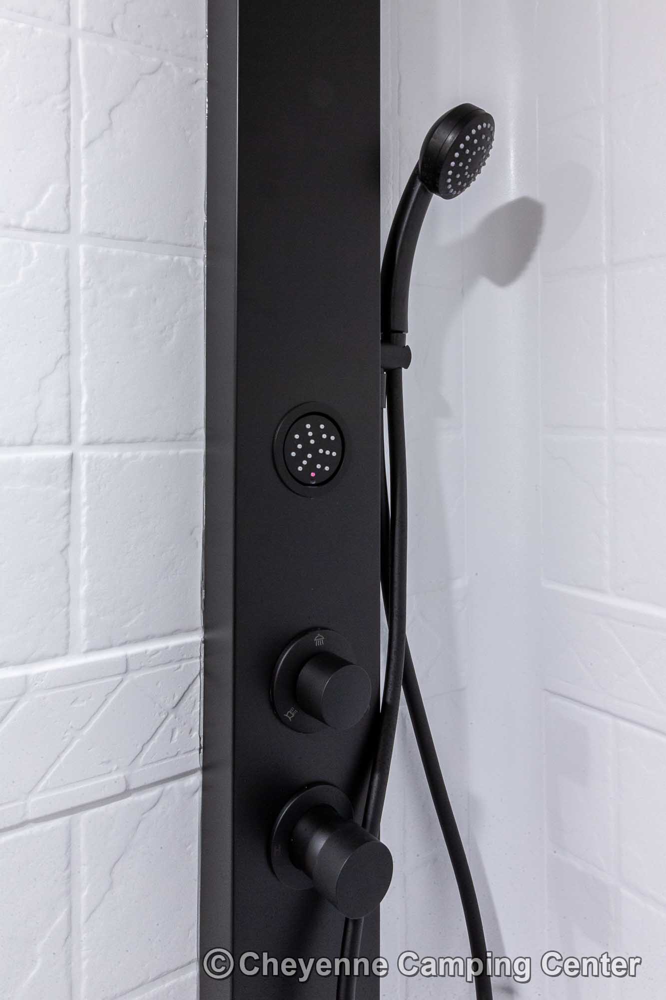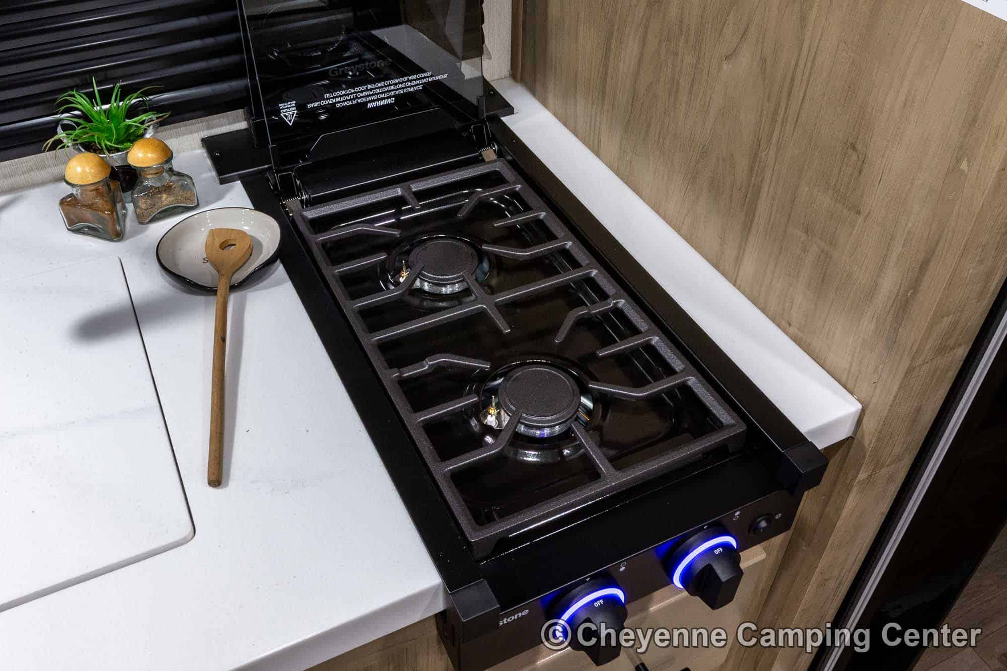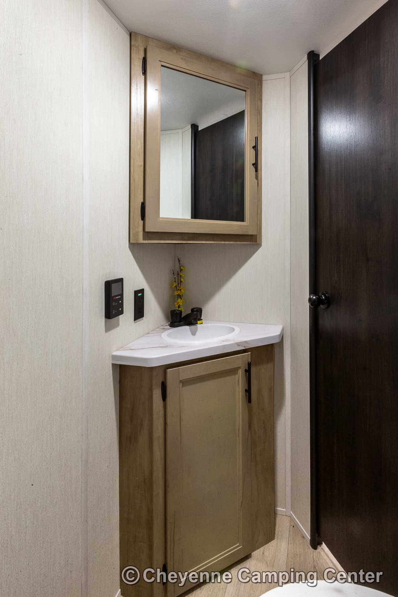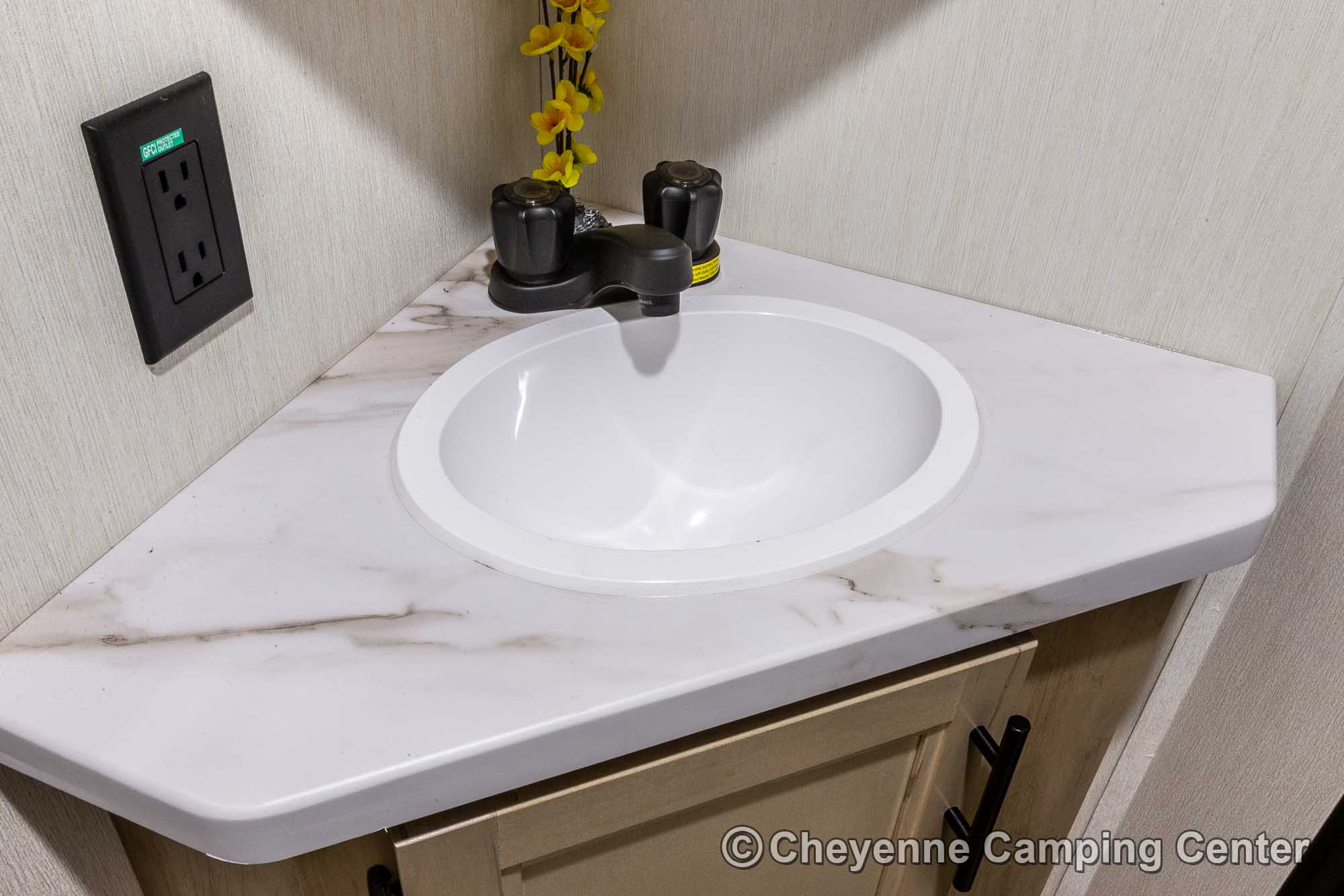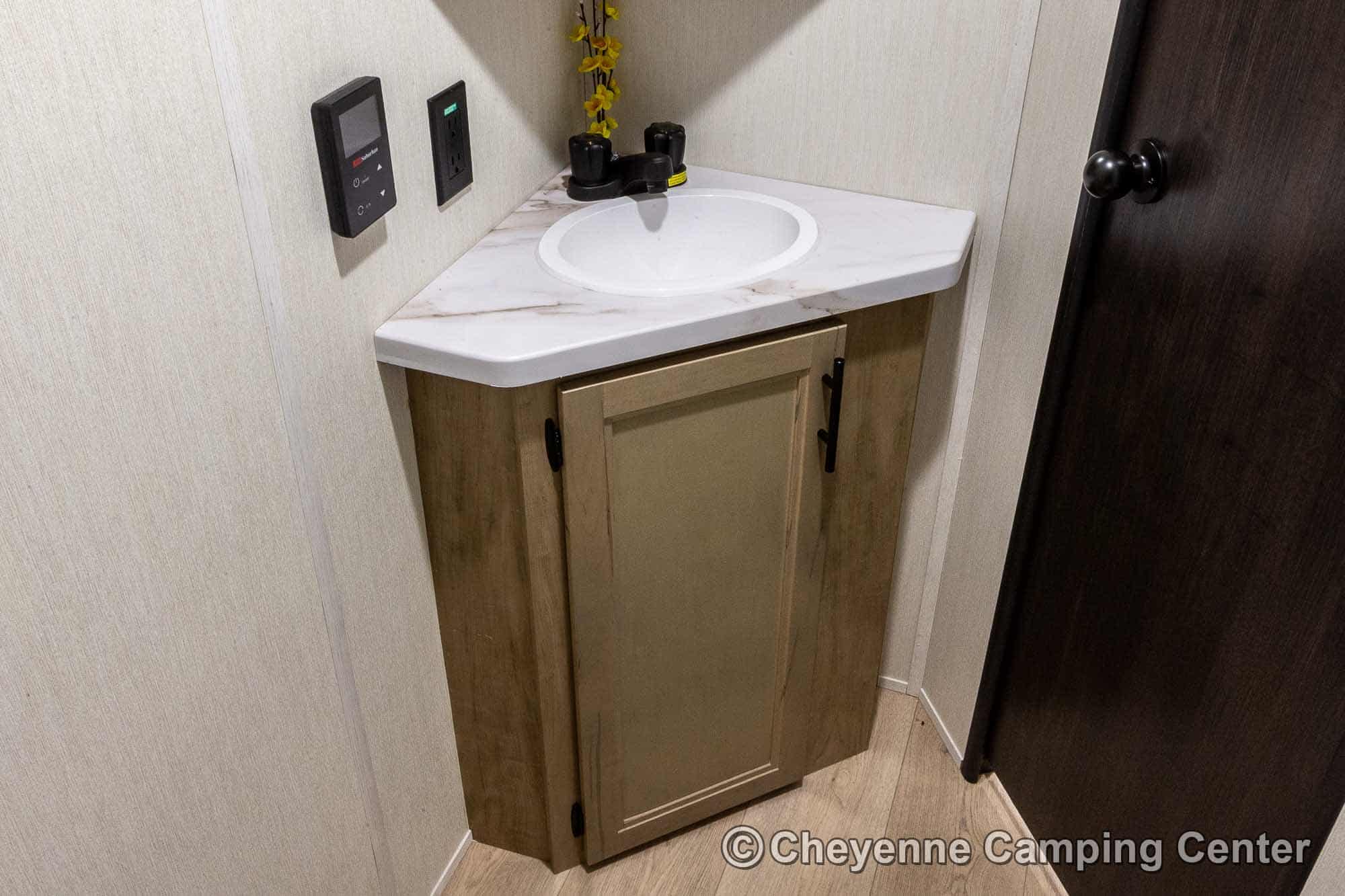 Lightweight, yet fully equipped, the 17JWBL sleeps five and offers abundant storage, including a large front compartment, rear door access to under-bunk/bike storage, and overhead cabinets. The 17JWBL features rear bunk beds with storage, a rear bath, mid-kitchen, a slide-out dinette, front queen bed, a Bluetooth media receiver, exterior marine grade speakers, an 8 cu. ft. refrigerator, outdoor shower, power stabilizer jacks, a roof-mounted RV air conditioner, an LP gas furnace, a 12′ power awning with LED lighting, an outdoor refrigerator, deluxe wheels, a wireless backup camera, black glass entry door, a 200 watt solar panel, solar charge controller, 12V RV battery, one-year manufacturer’s warranty, one-year complimentary 24/7 roadside assistance, and much more!