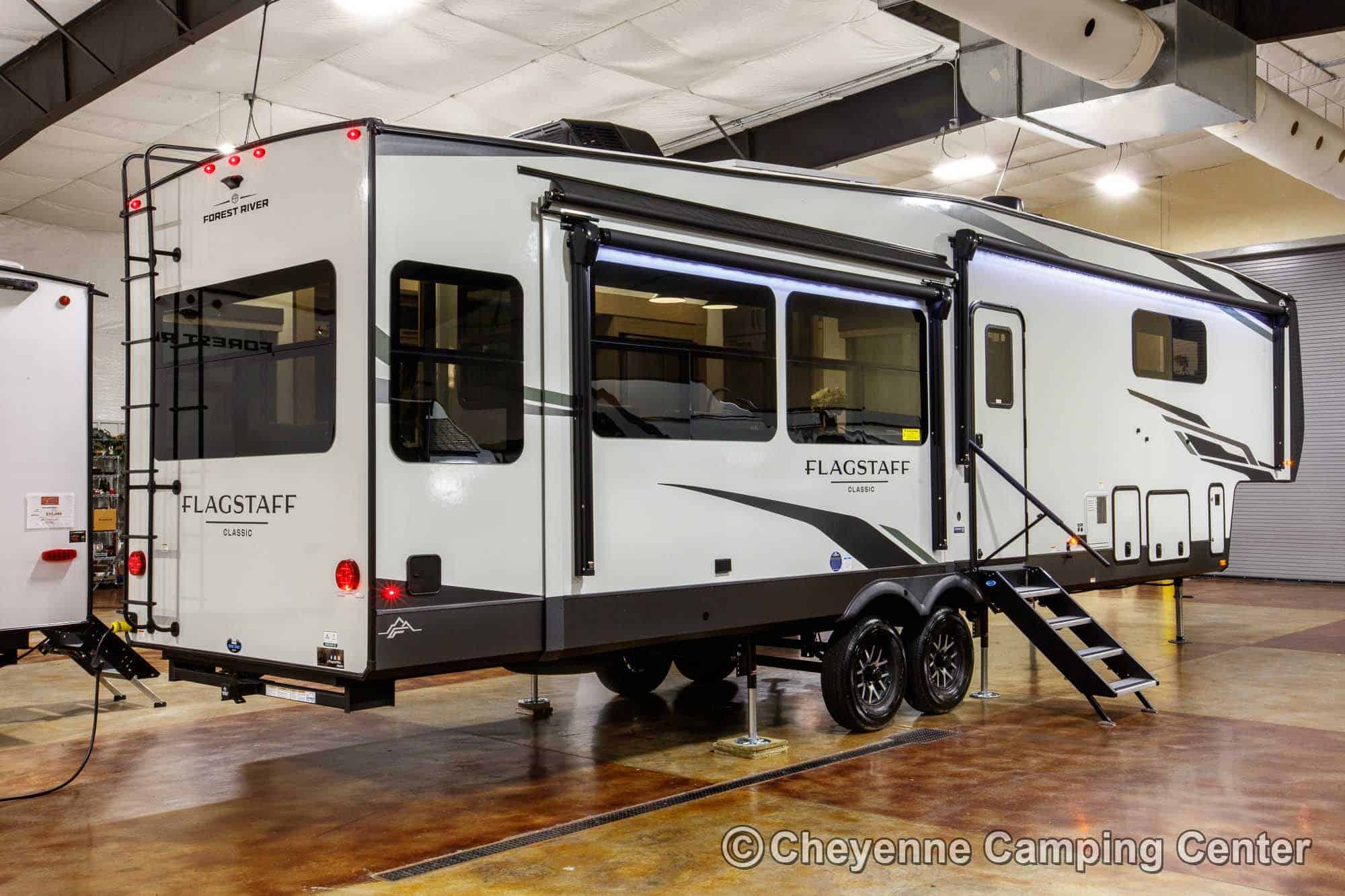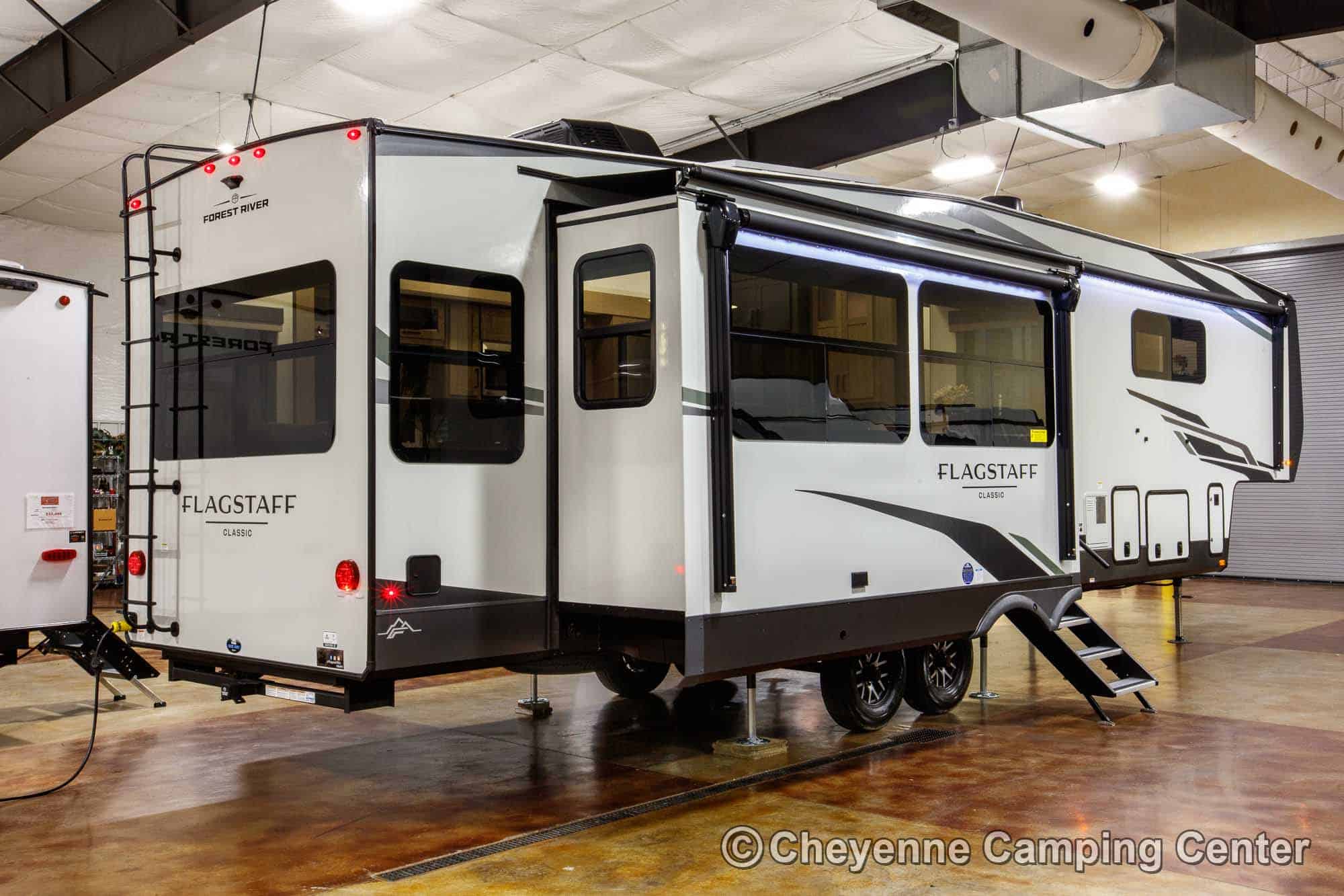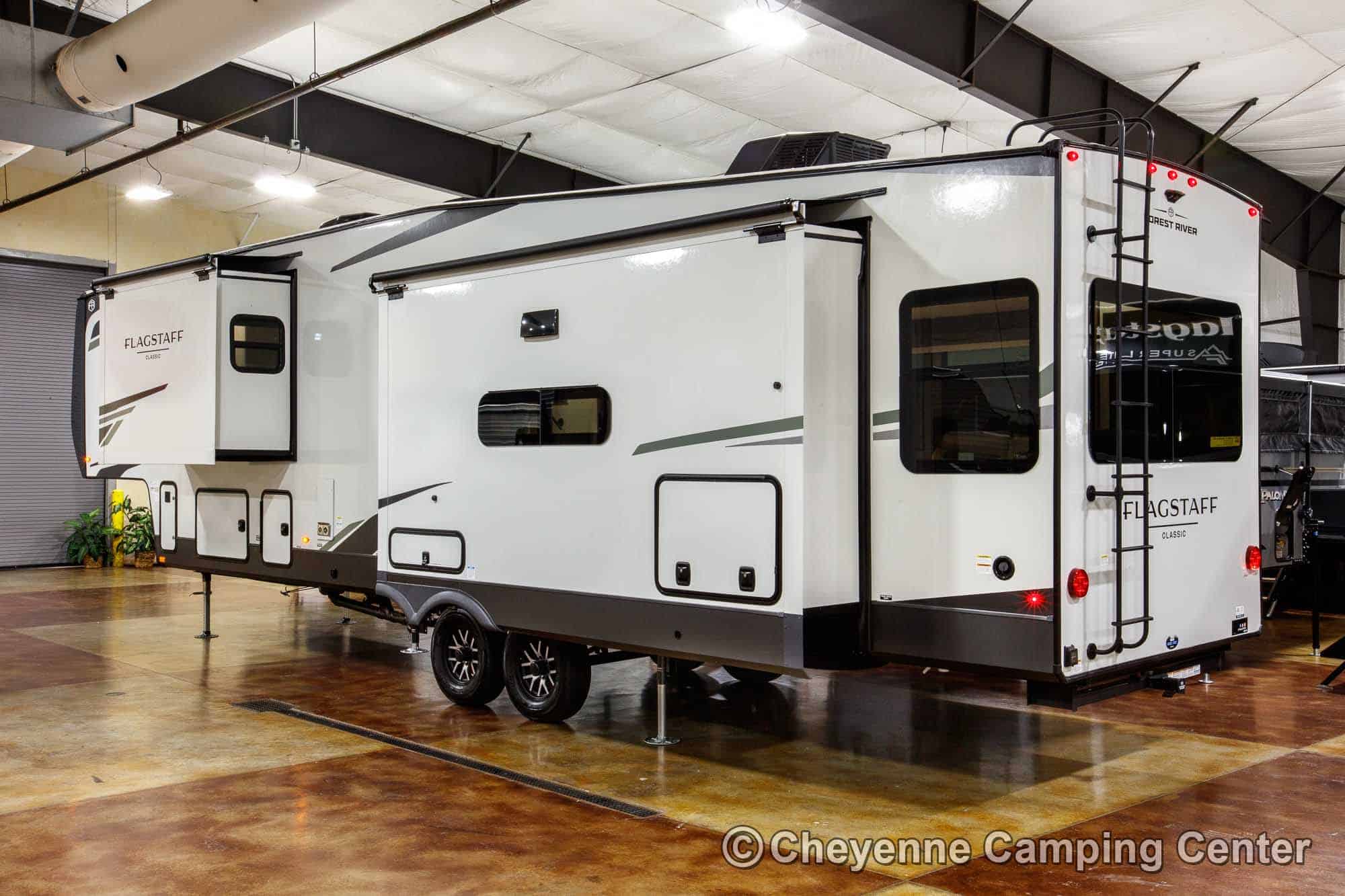 The Forest River Flagstaff Classic 401CFB for sale at Cheyenne Camping Center combines premium craftsmanship, high-end amenities, and innovative design, making it one of the most comfortable and capable fifth wheels in its class.