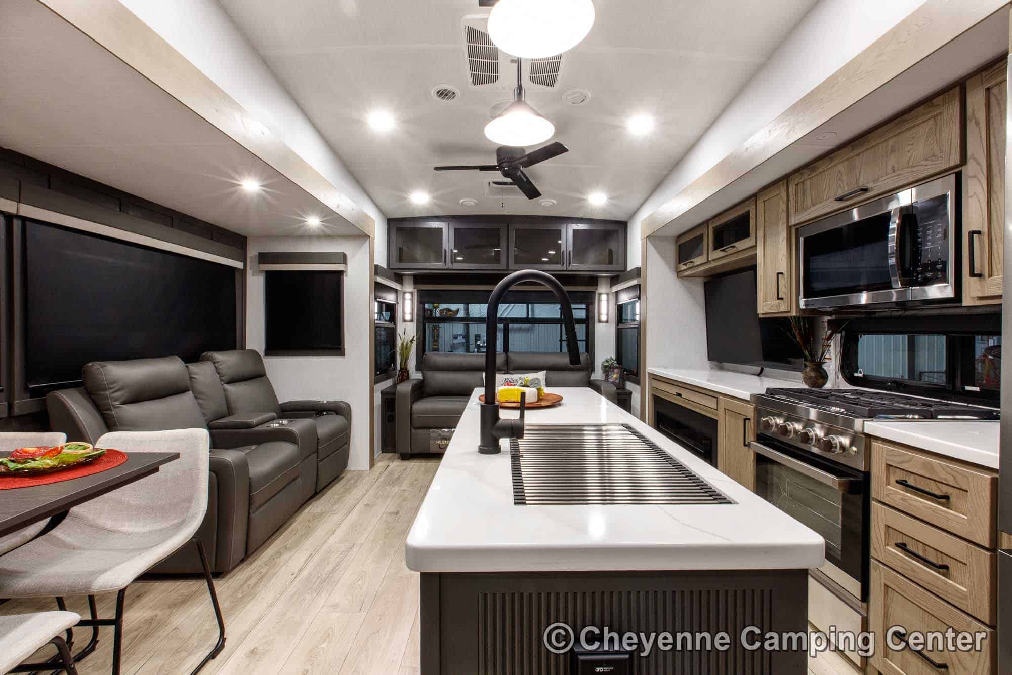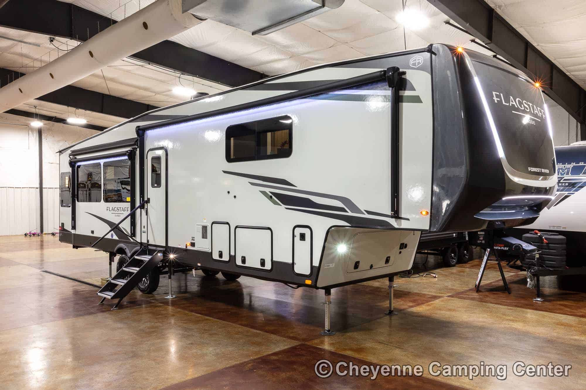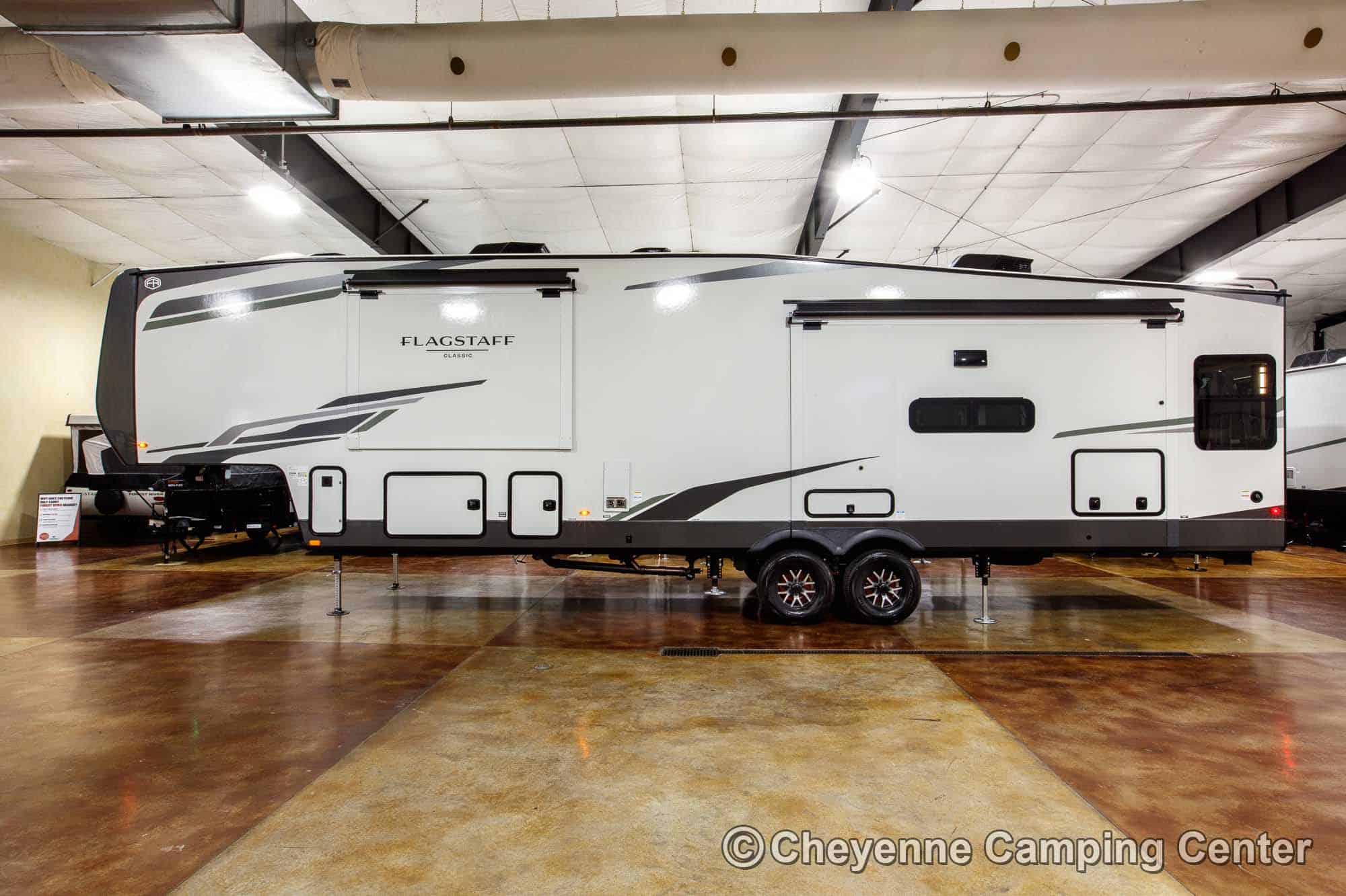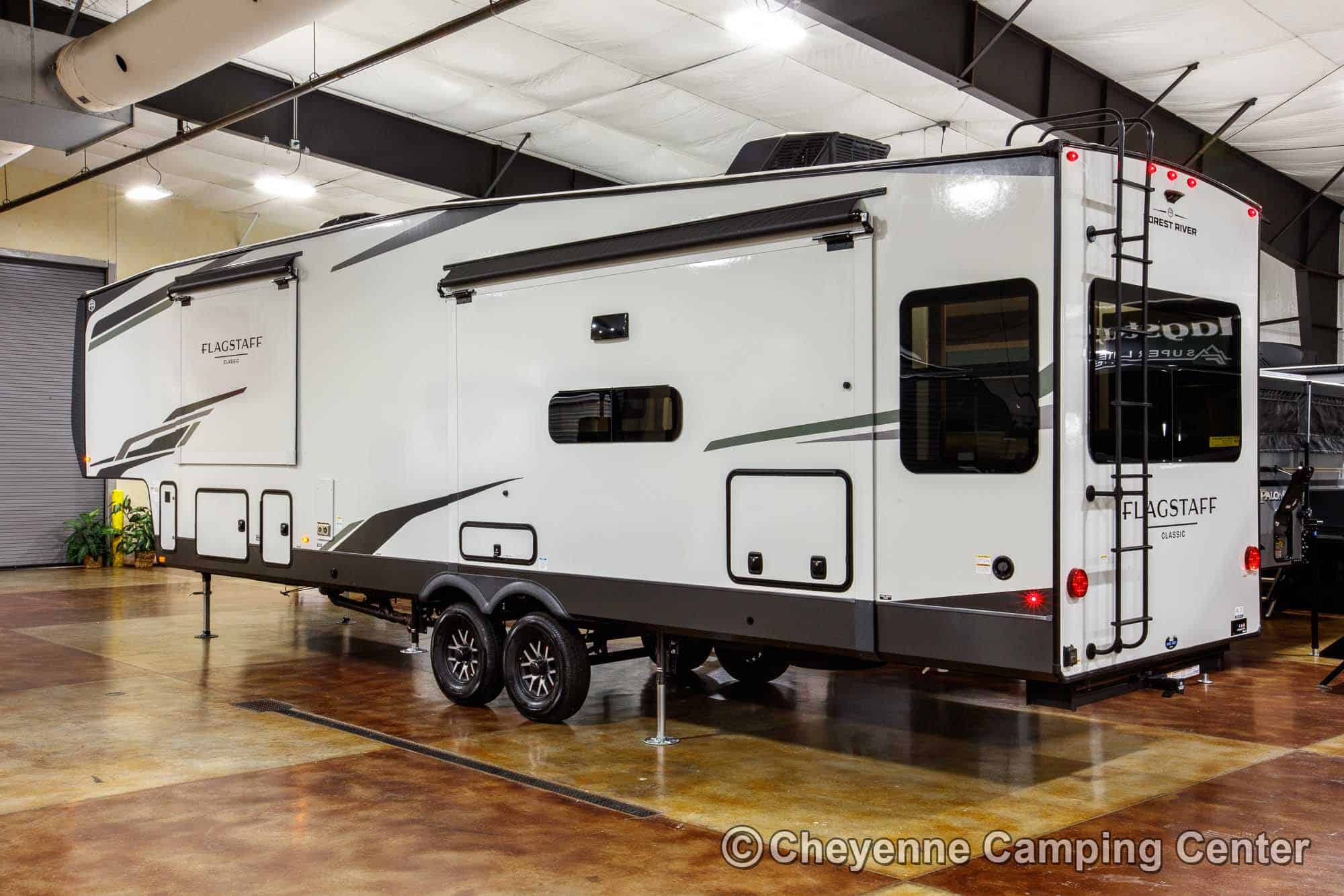 The Forest River Flagstaff Classic 401CFB for sale at Cheyenne Camping Center combines premium craftsmanship, high-end amenities, and innovative design, making it one of the most comfortable and capable fifth wheels in its class.