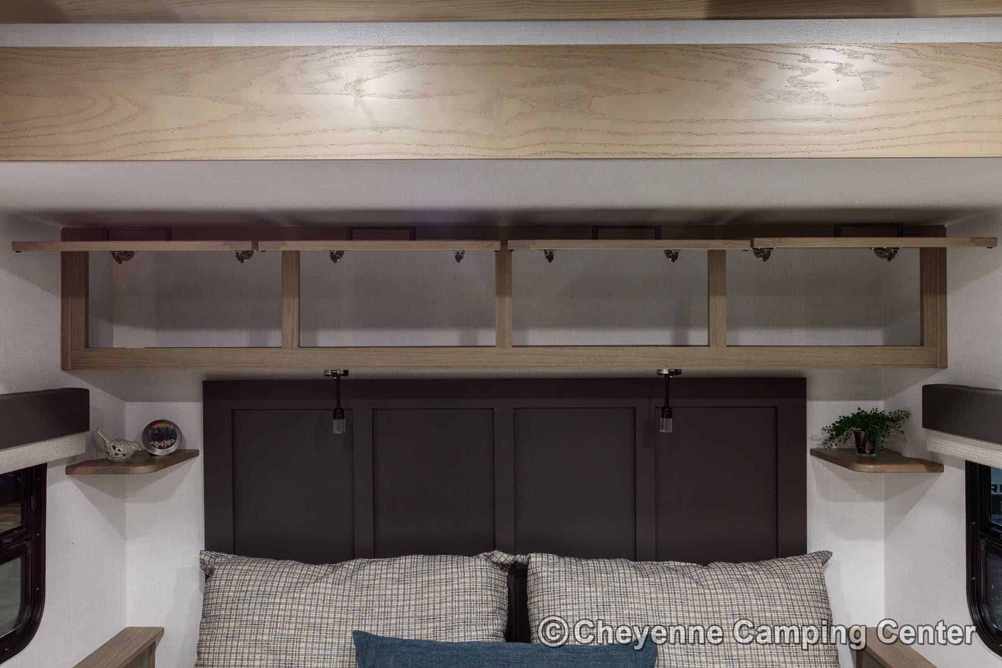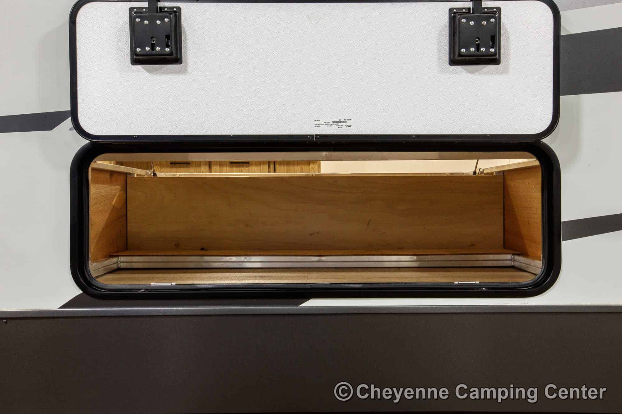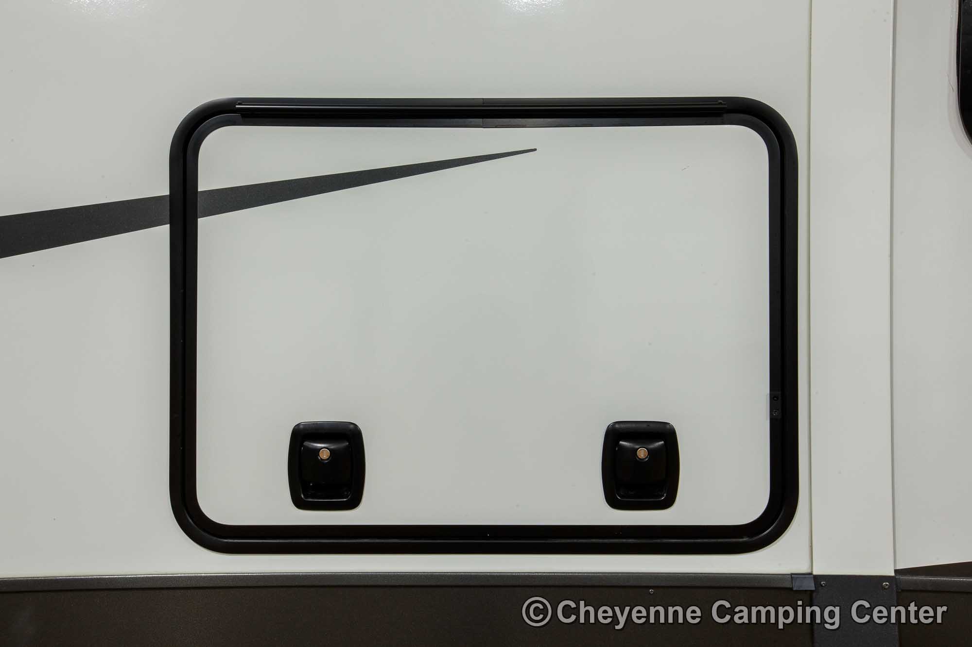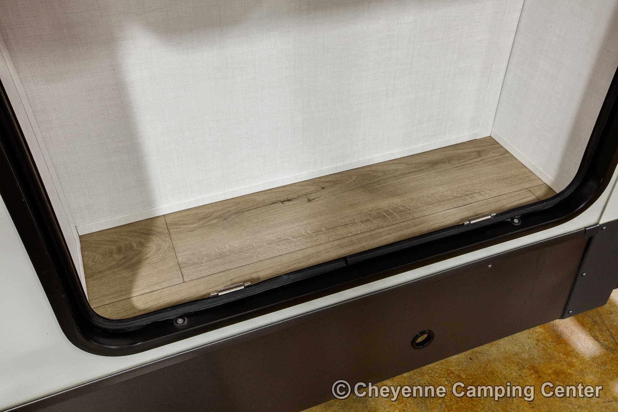 The Flagstaff Classic 832IKRL couples travel trailer for sale at Cheyenne Camping Center also features LED interior lighting, day/night roller shades, slide toppers, exterior storage compartments, Safe-T-Rail telescoping hand rail, integral window shade in entry door, water heater bypass, exterior winterizing fixture, one year manufacturer’s warranty, one year complimentary 24/7 roadside assistance and much more!