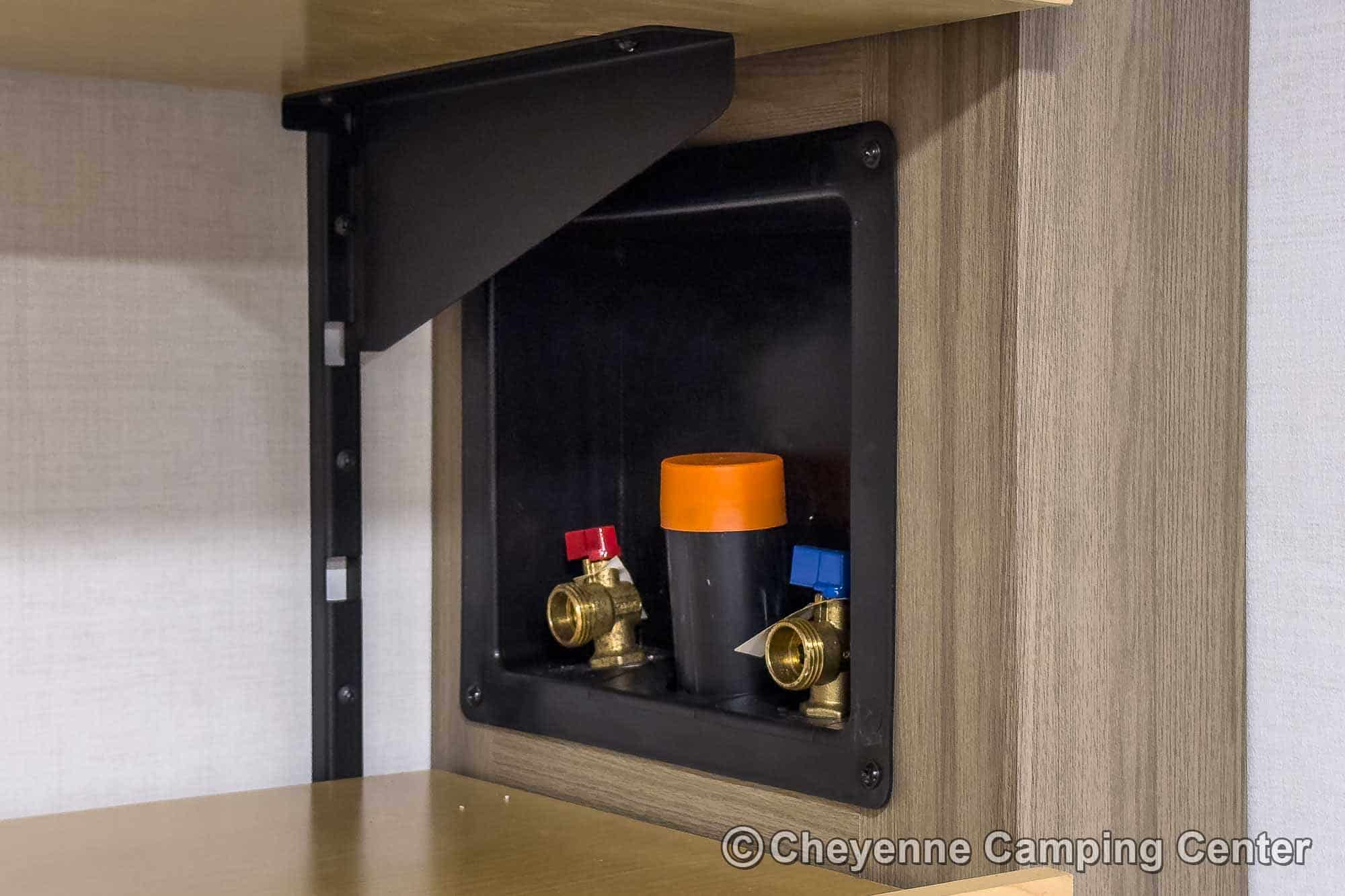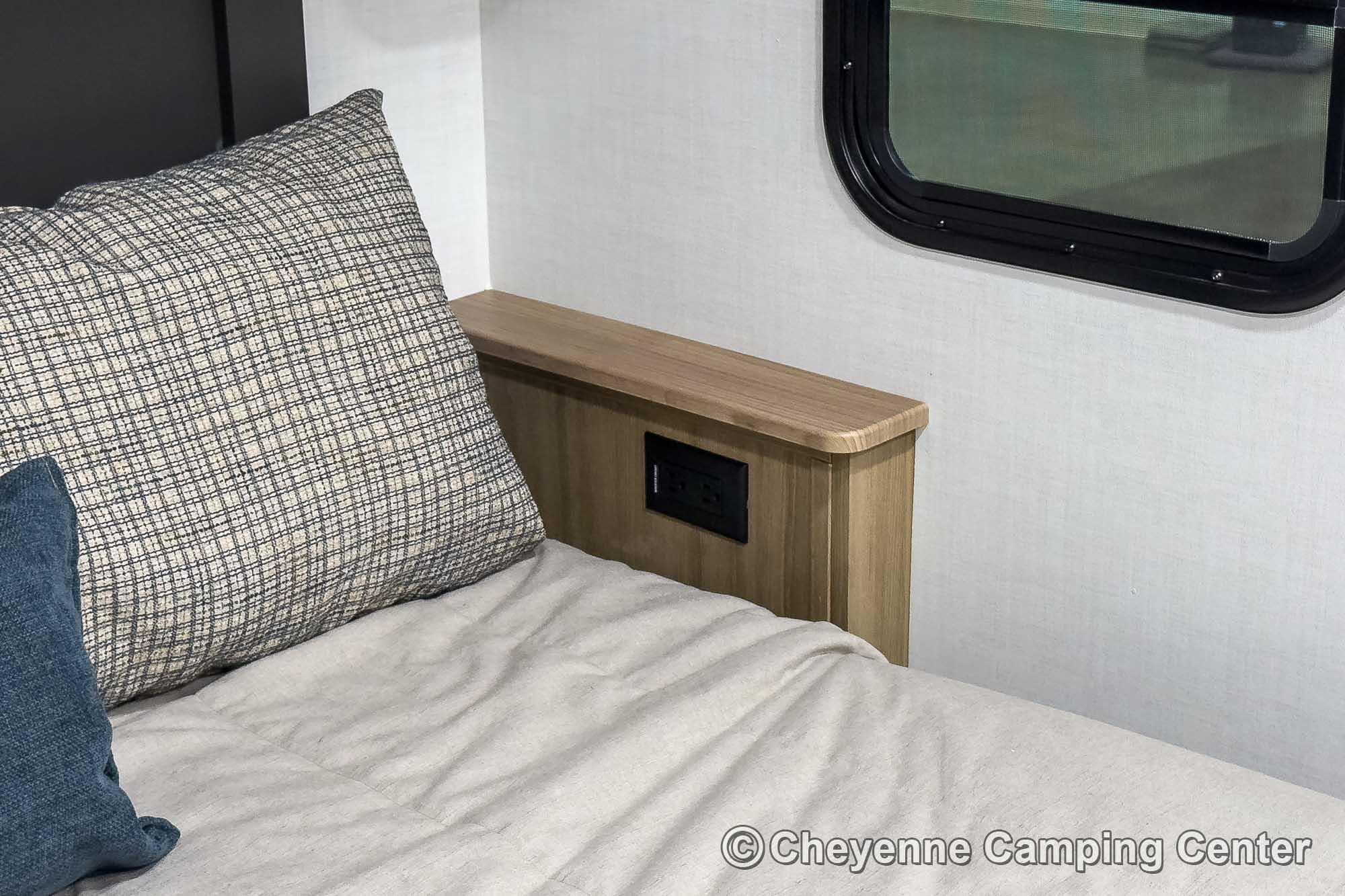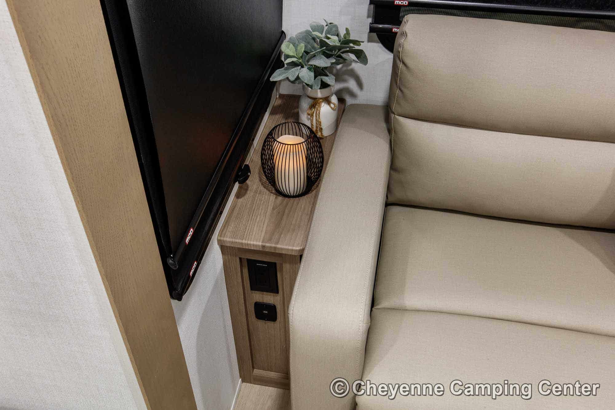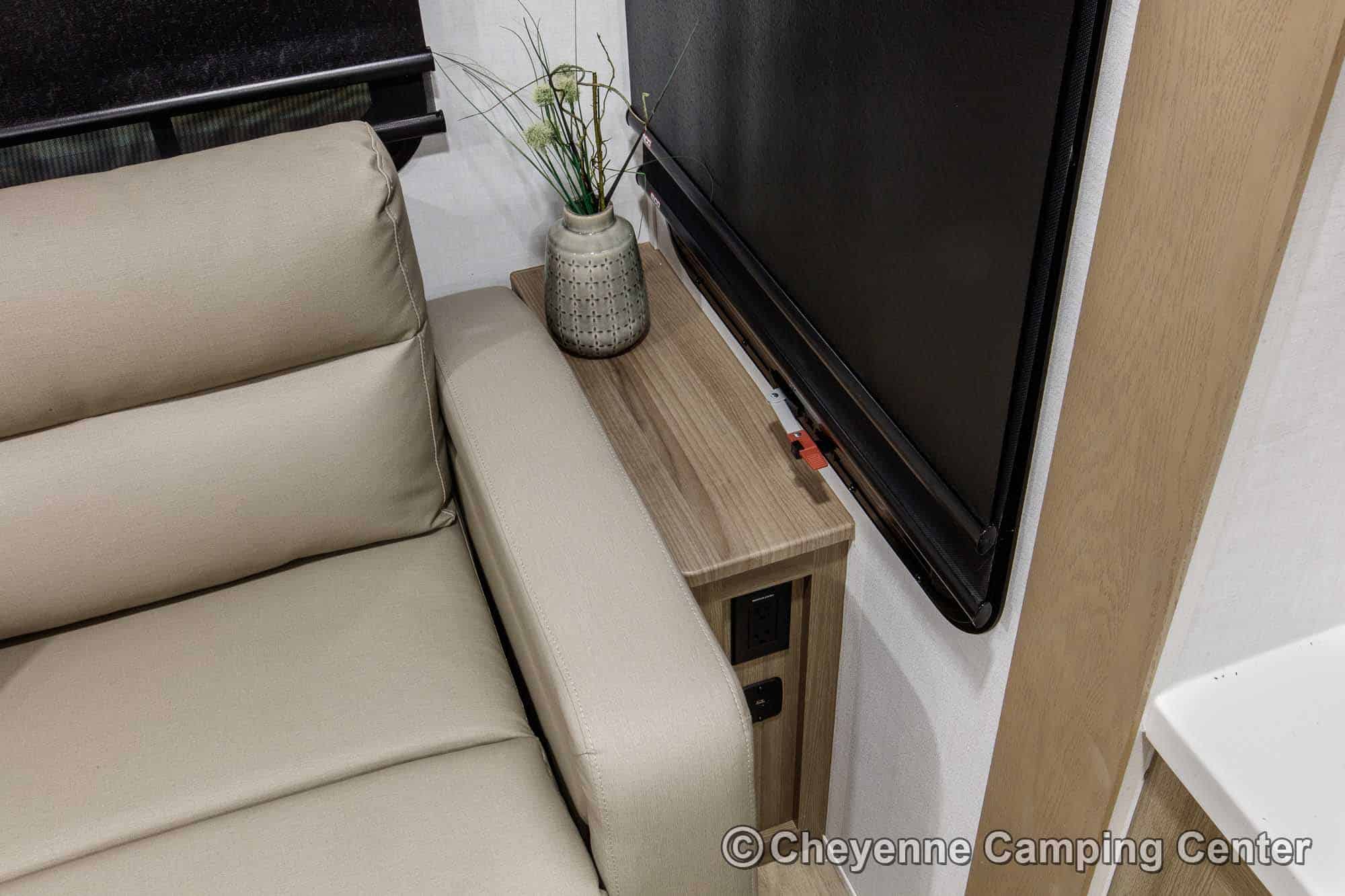 The Flagstaff Classic 832IKRL couples travel trailer for sale at Cheyenne Camping Center also features LED interior lighting, day/night roller shades, slide toppers, exterior storage compartments, Safe-T-Rail telescoping hand rail, integral window shade in entry door, water heater bypass, exterior winterizing fixture, one year manufacturer’s warranty, one year complimentary 24/7 roadside assistance and much more!