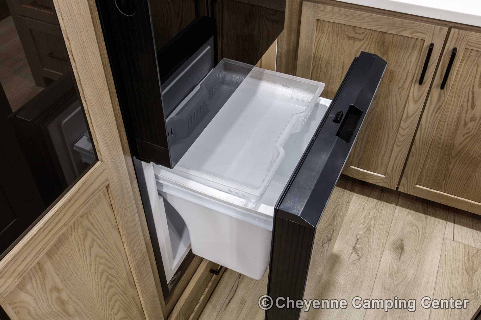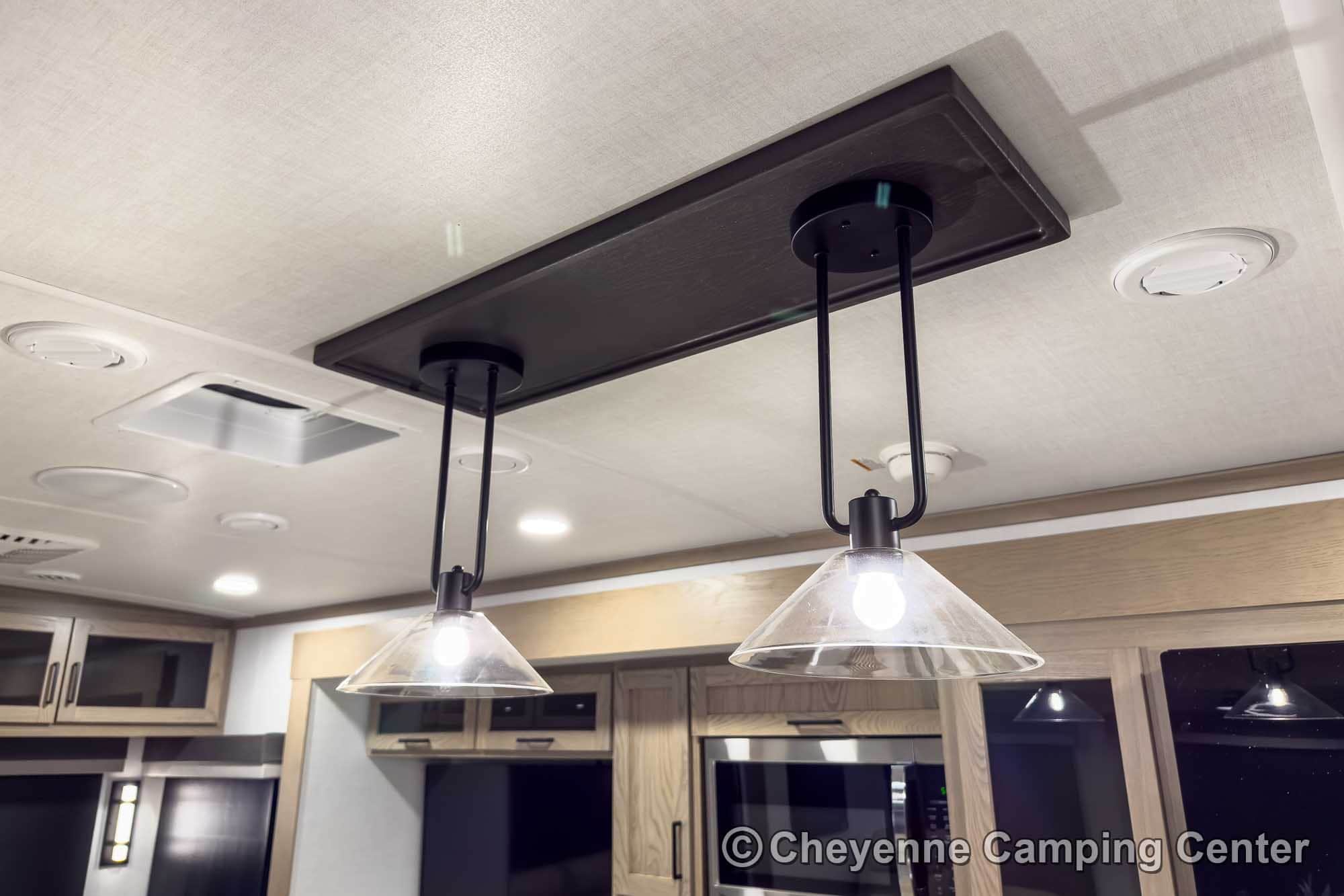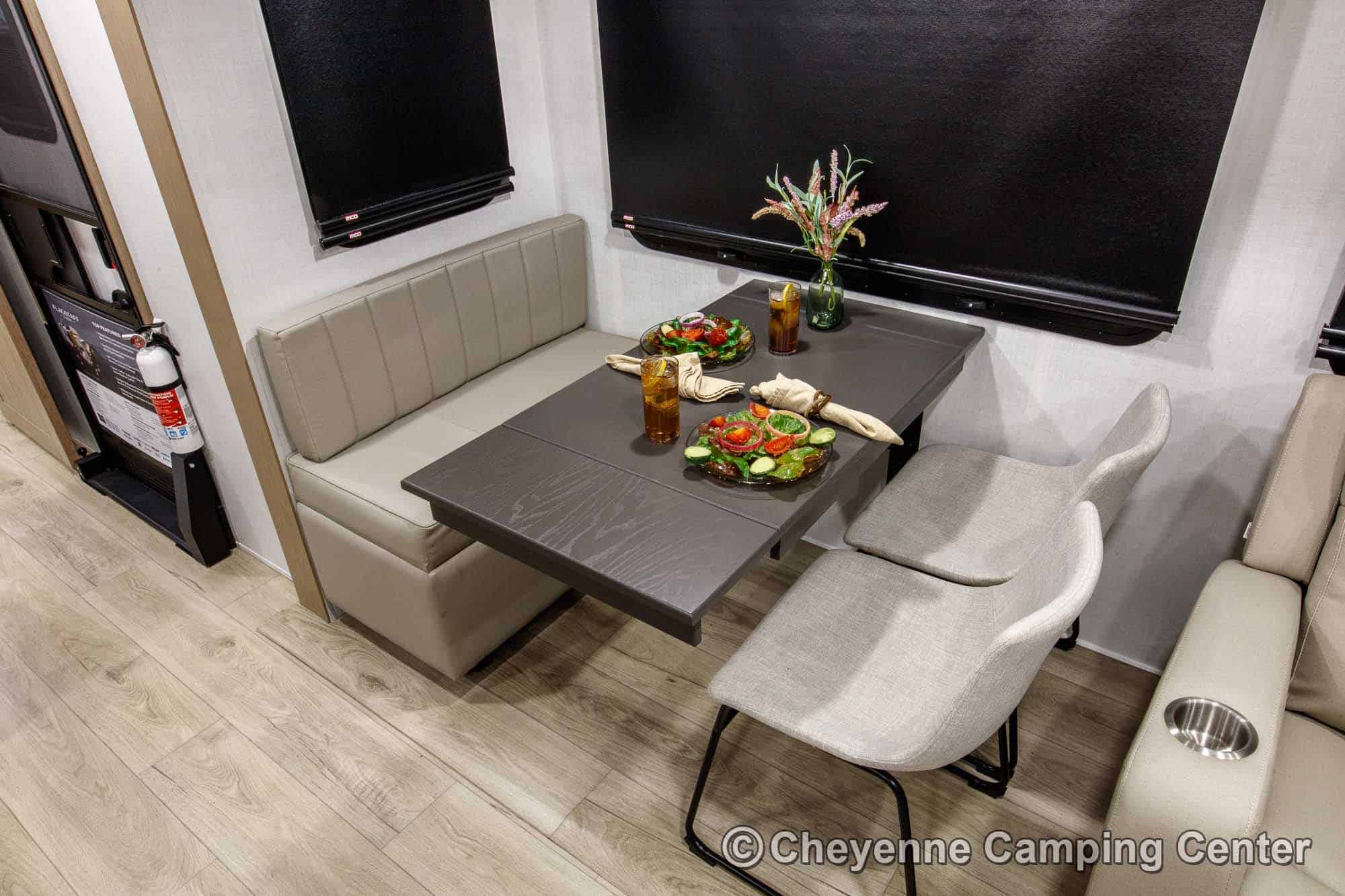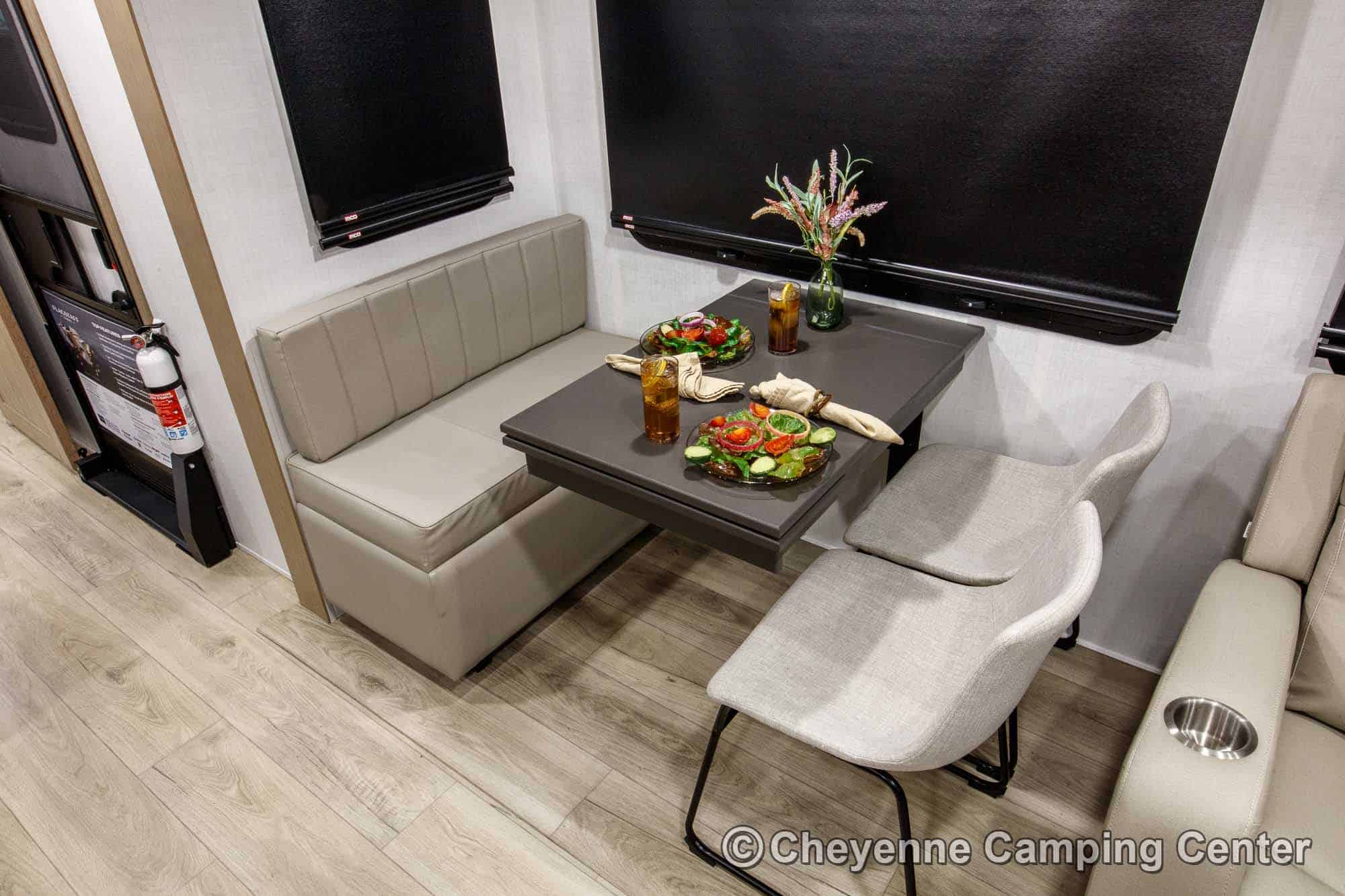 You’ll feel right at home in the spacious front bedroom. It features a king bed with storage drawers under, a 2nd 15K BTU air conditioner, HD TV, large wardrobe with washer/dryer prep, front counter with cabinets under.