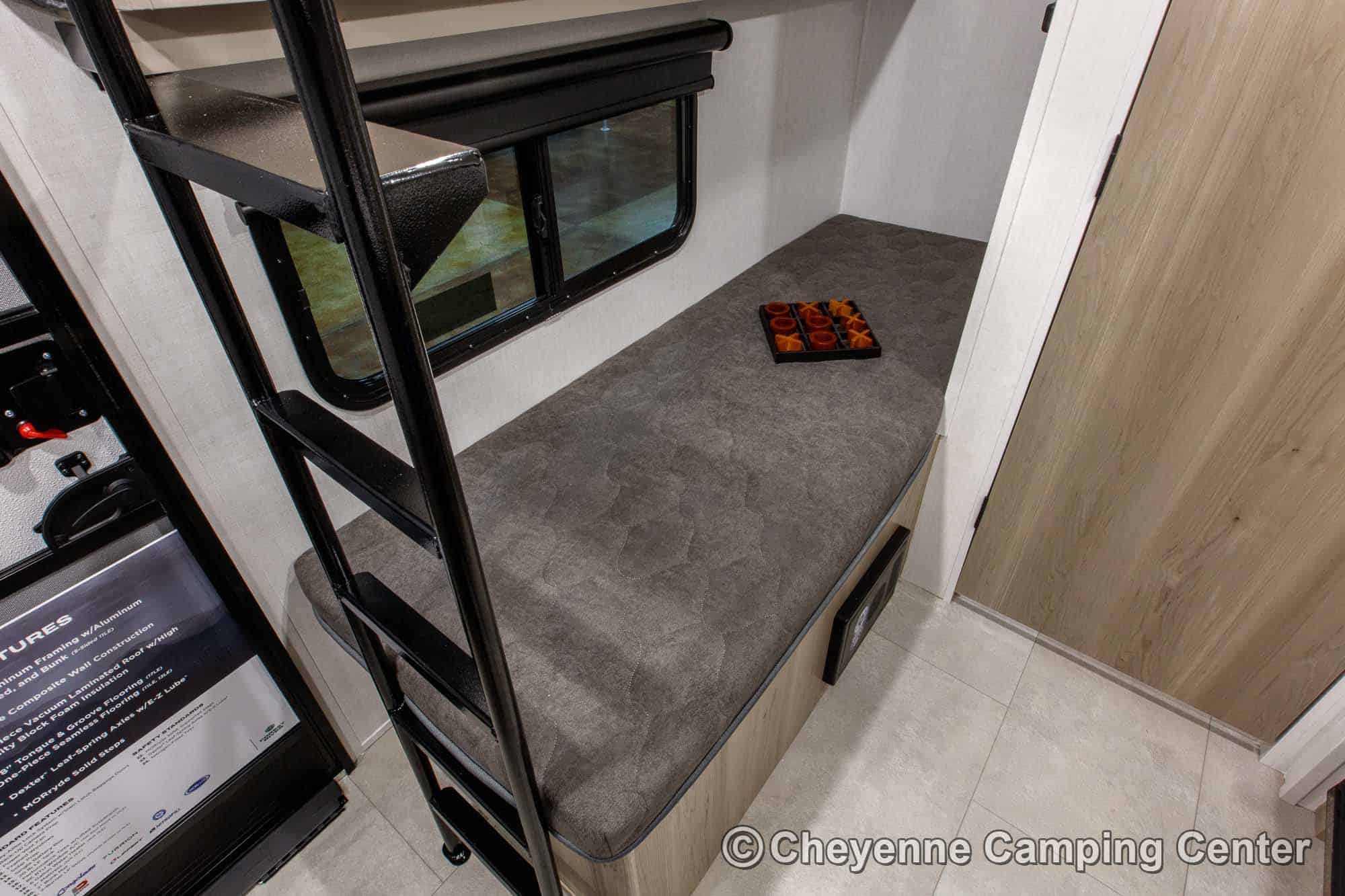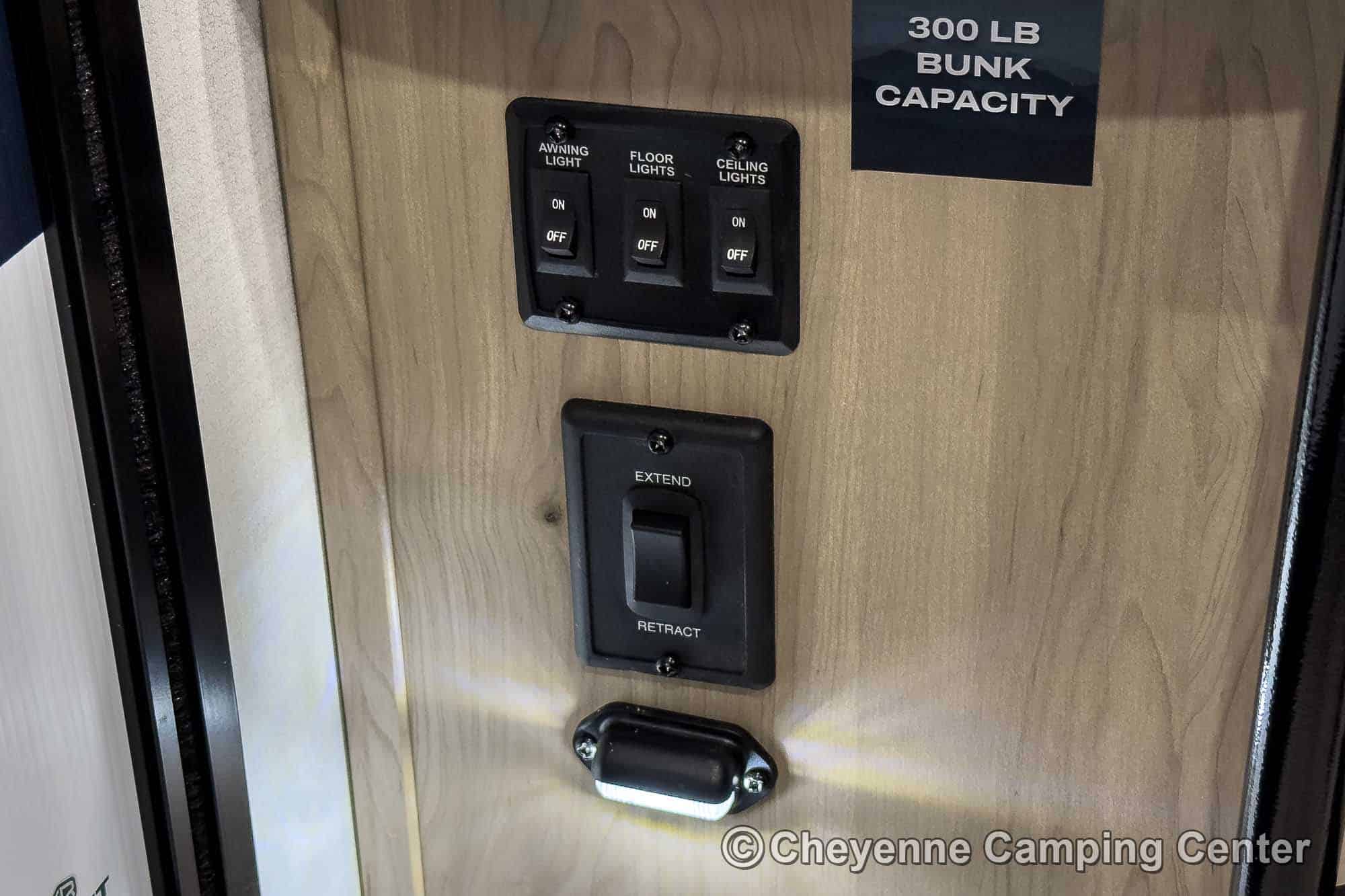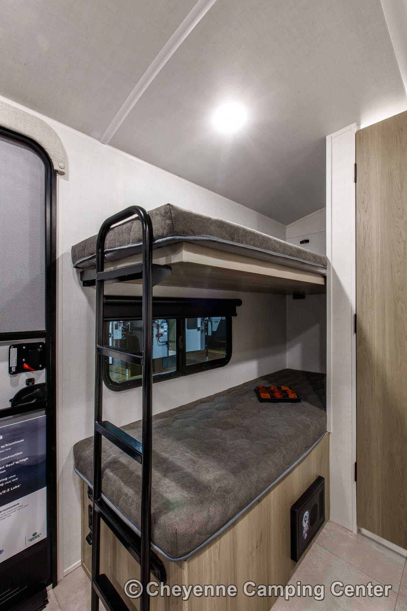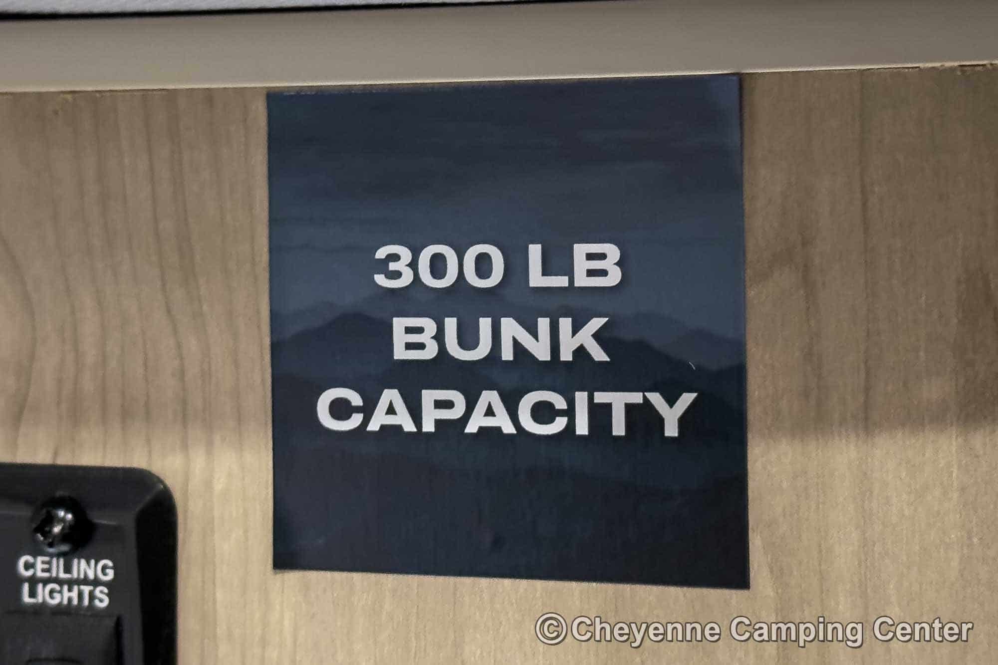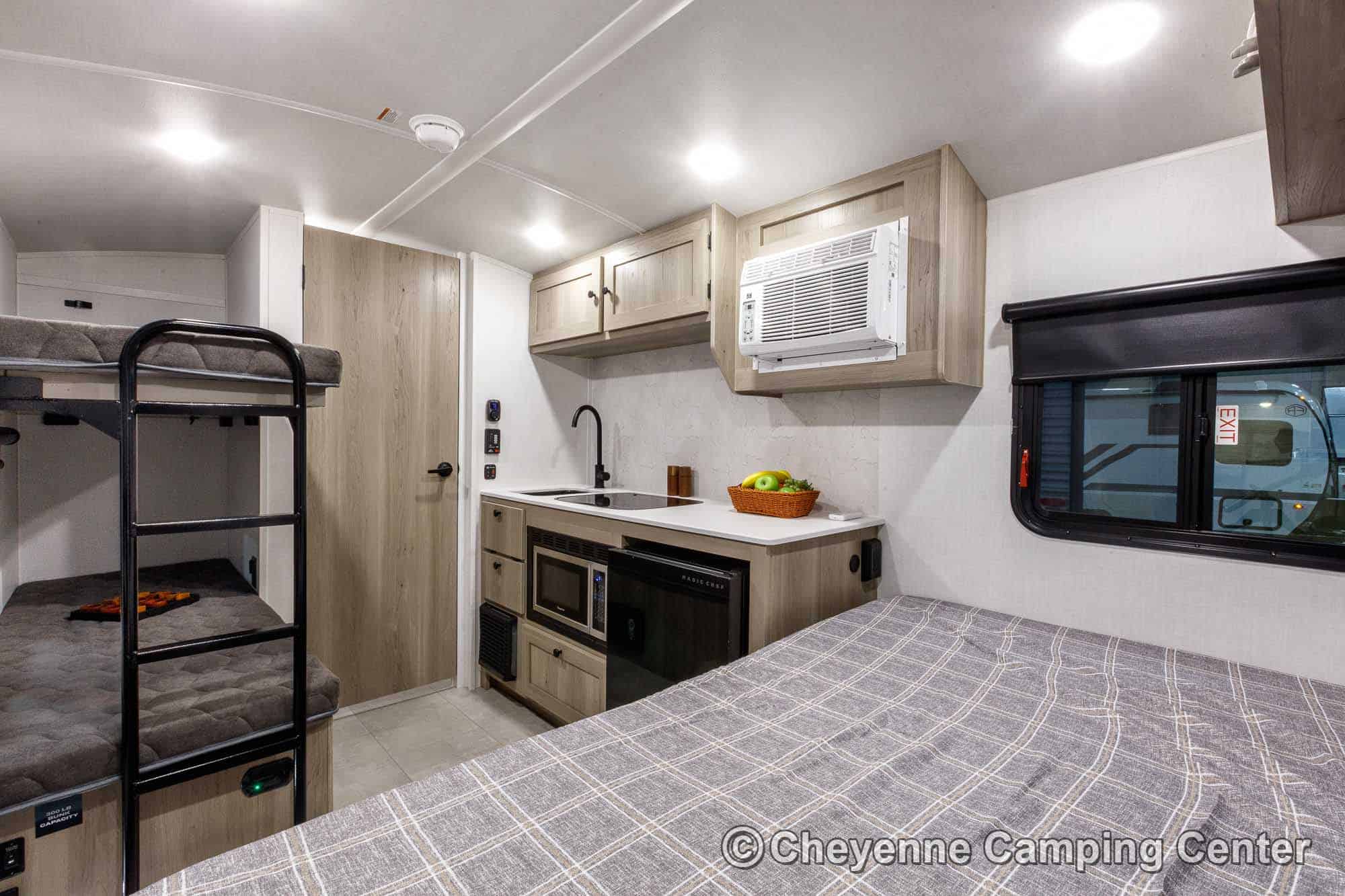 Other highlights include a flip-up top bunk, roller shades, energy-efficient LED lighting, one year of complimentary roadside assistance, and a one-year manufacturer’s warranty.