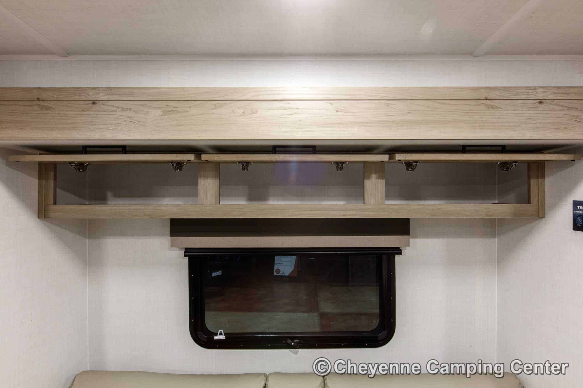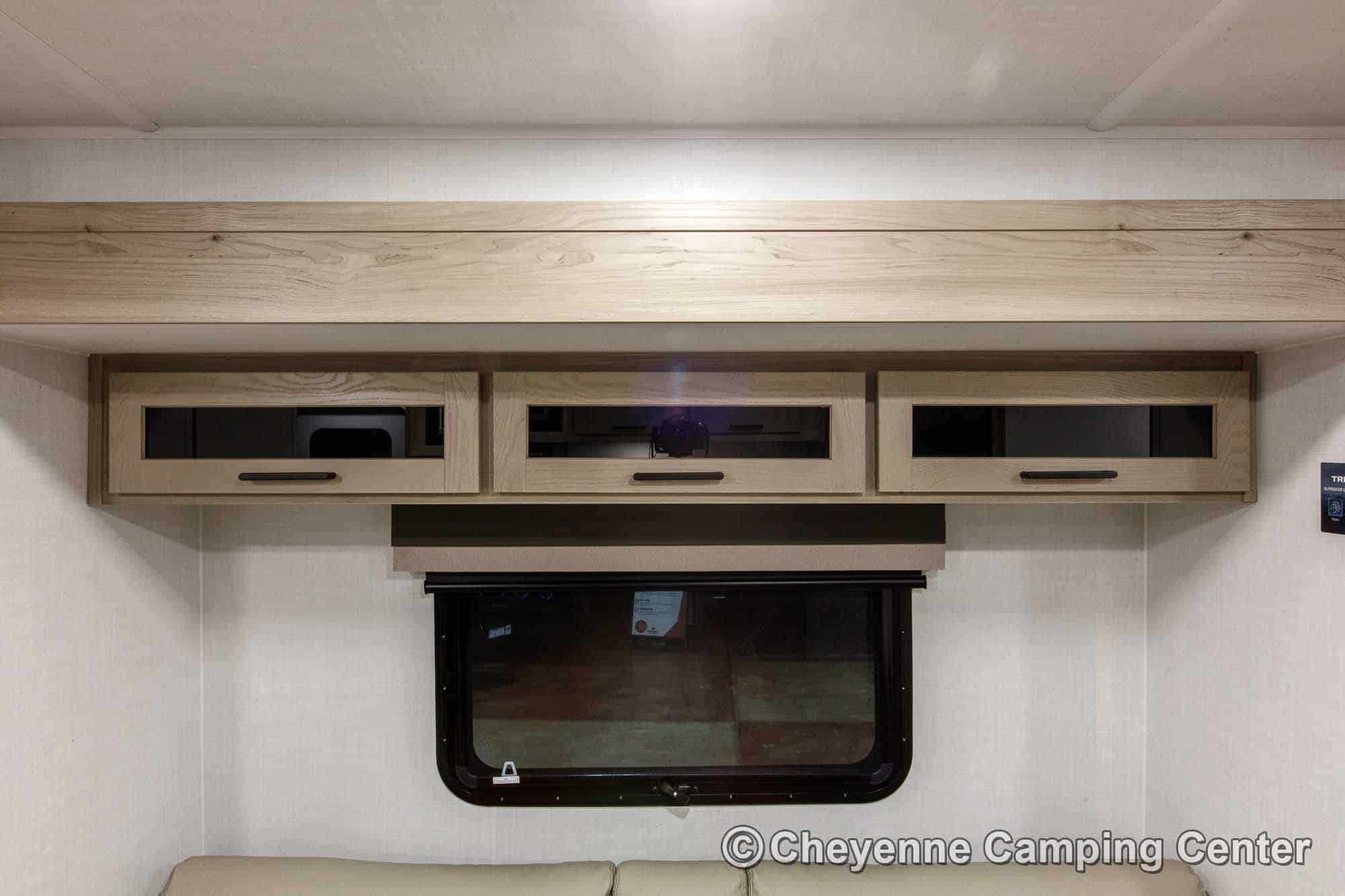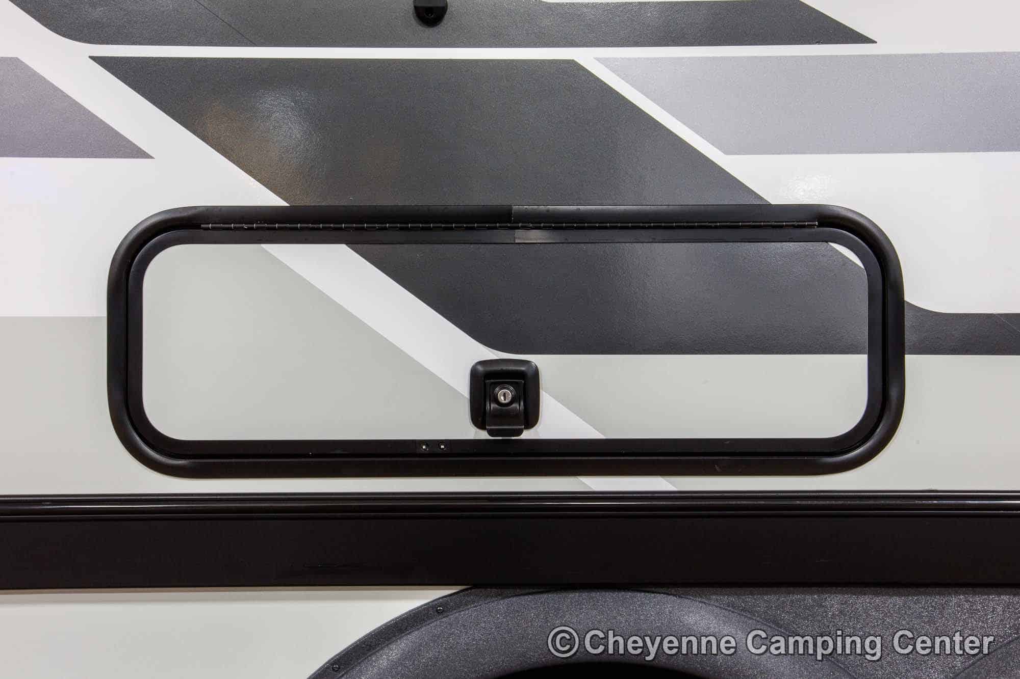 Outside, the Micro Lite 21FBRS features a 200-watt solar panel, power stabilizer jacks, a power tongue jack, marine grade speakers, a power awning with LED lighting, dual 30 lb. LP tanks, black tank flush, shower fixture, spare tire, rear ladder, MORryde Step Above entry steps, pass-thru storage compartment, enclosed underbelly with heated tanks, frameless windows, front window, aluminum wheels, Goodyear Endurance tires, a tire pressure monitoring system, and torsion axle suspension for a safe and superior ride.
