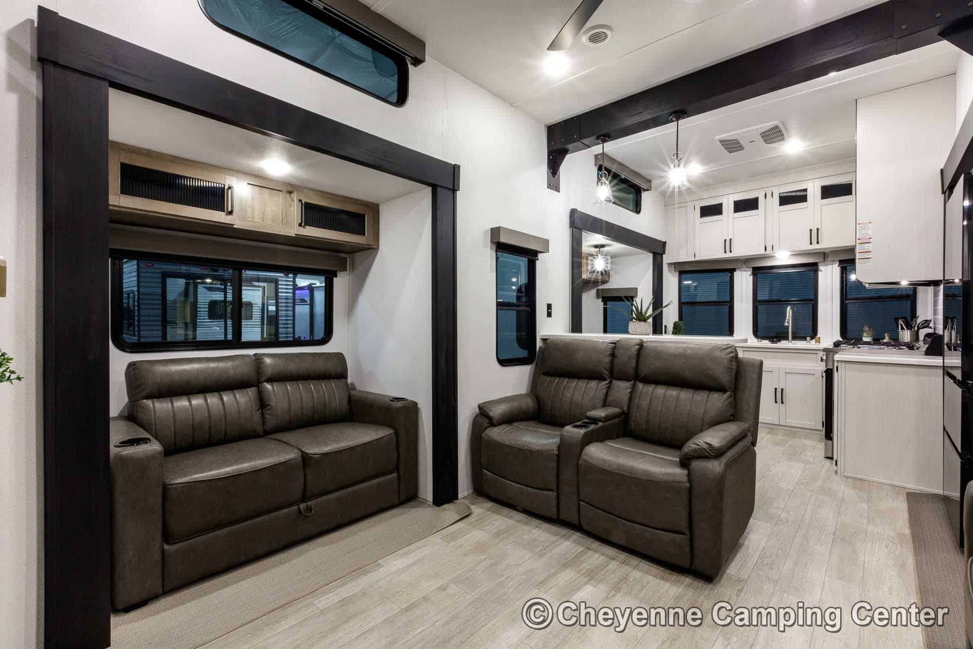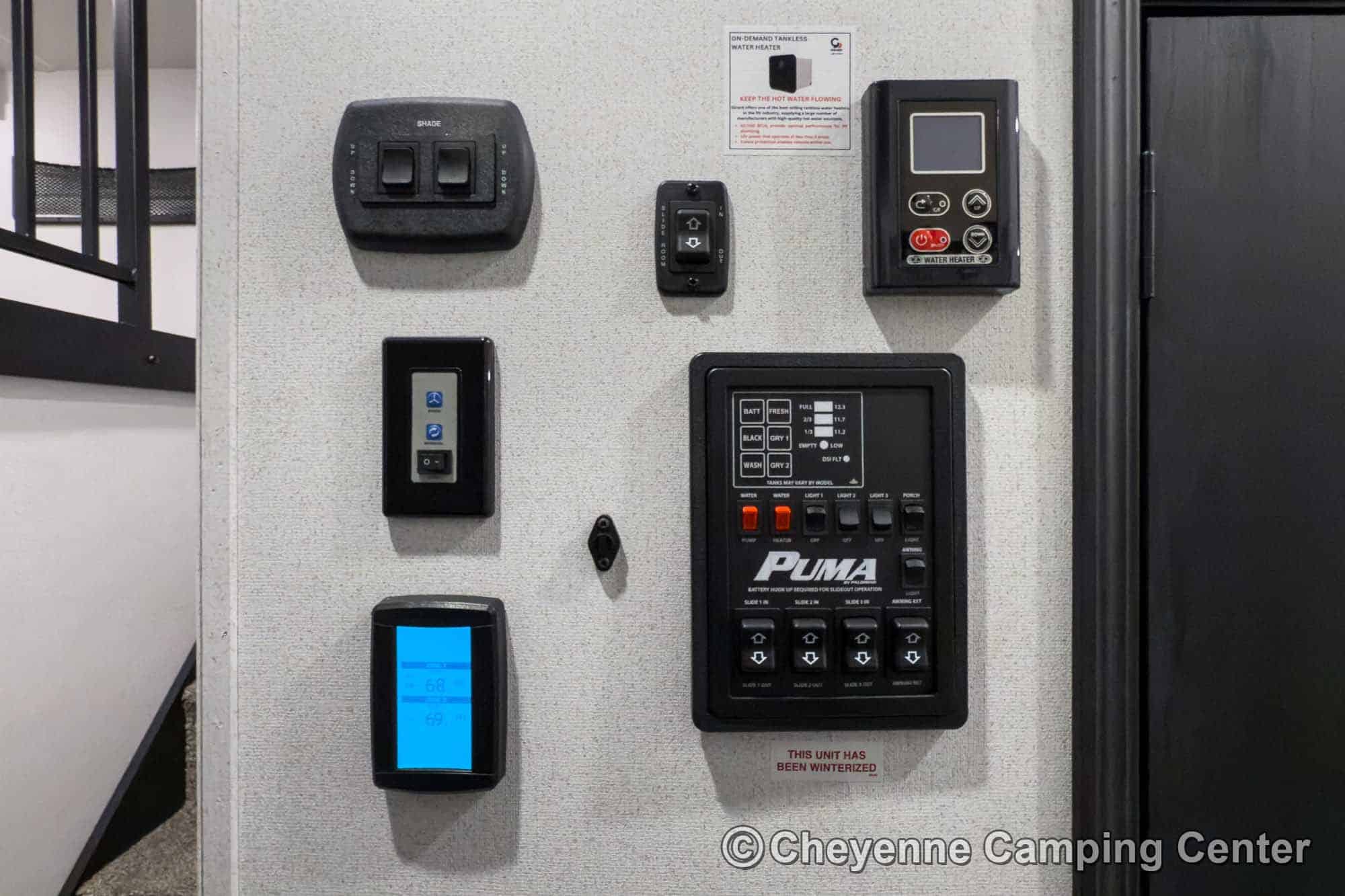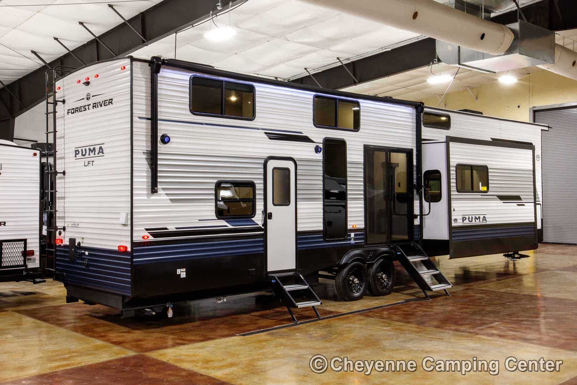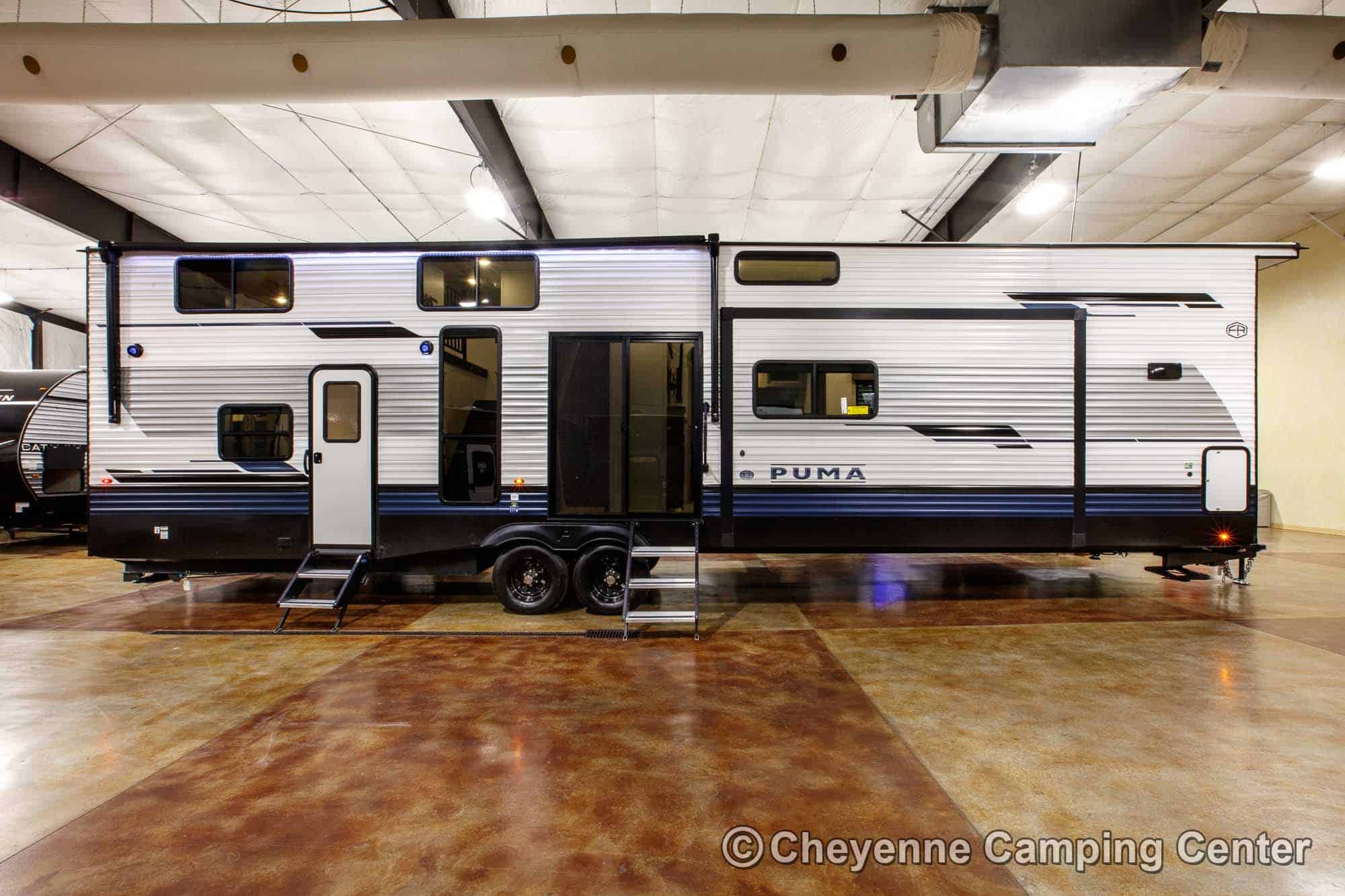 Other features include LED lighting, roller shades, power shades on the upper windows, a one-year manufacturer’s warranty, and more! Make this Puma 403LFT destination trailer for sale at Cheyenne Camping Center your affordable second home today!
