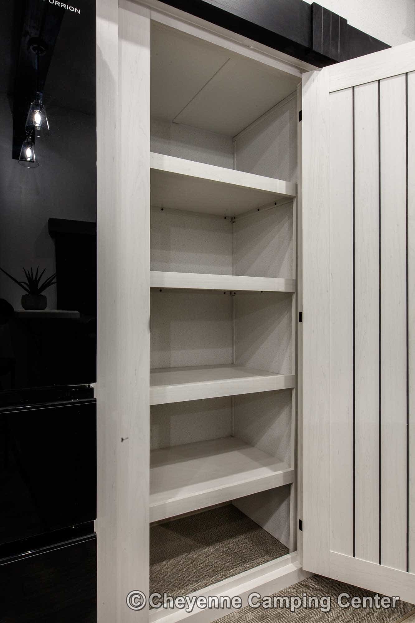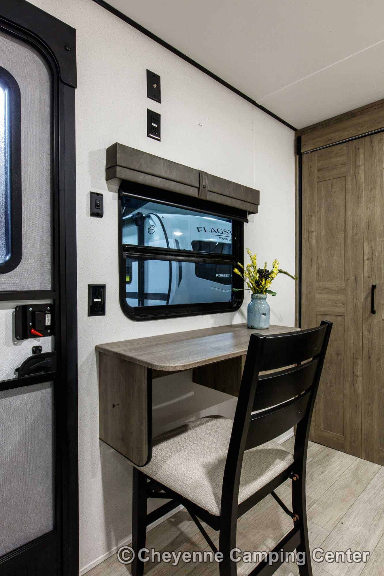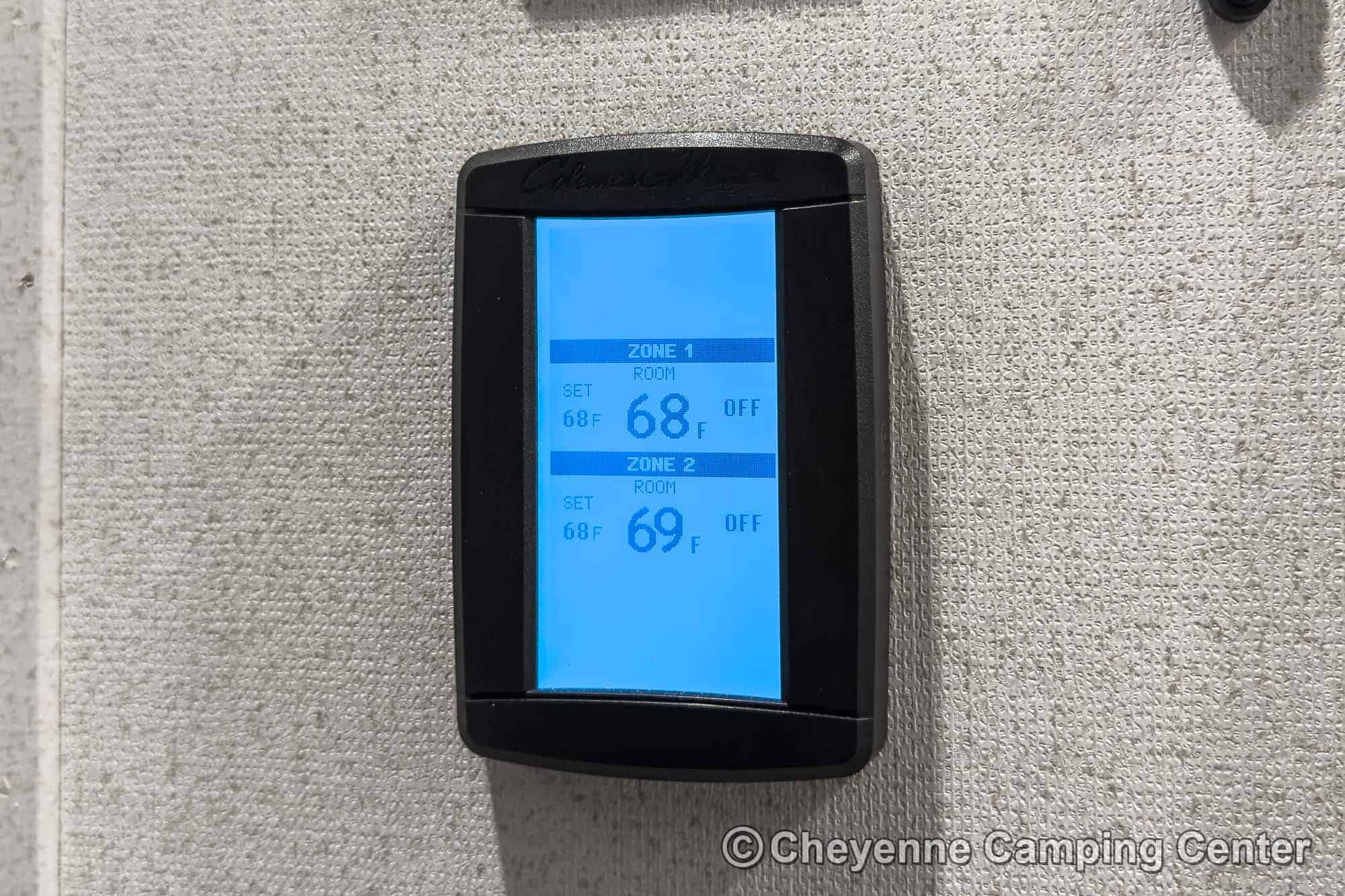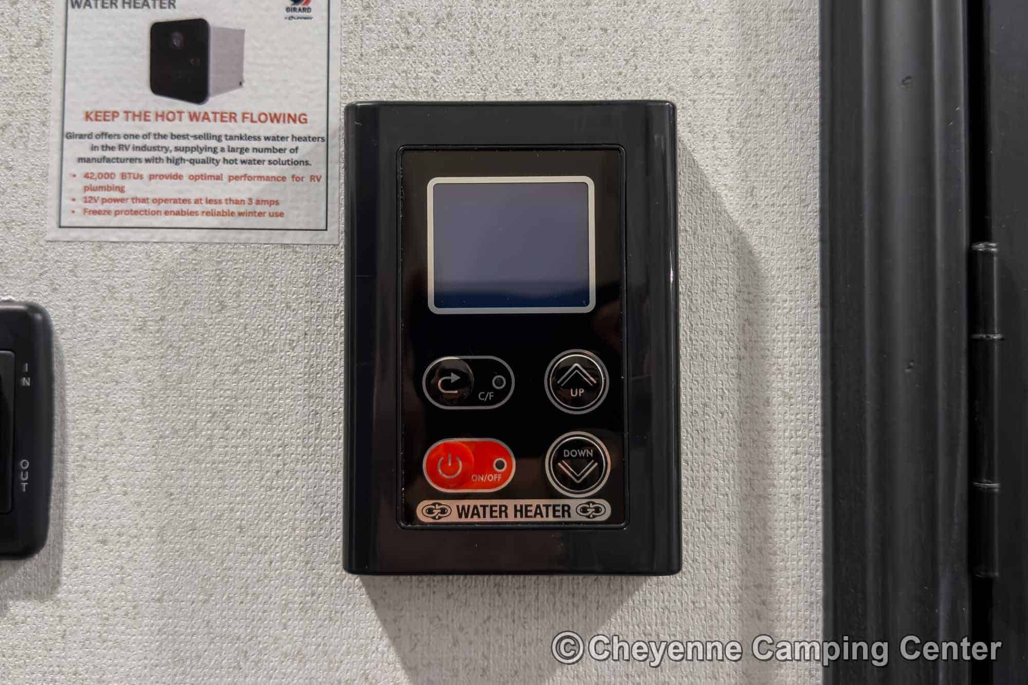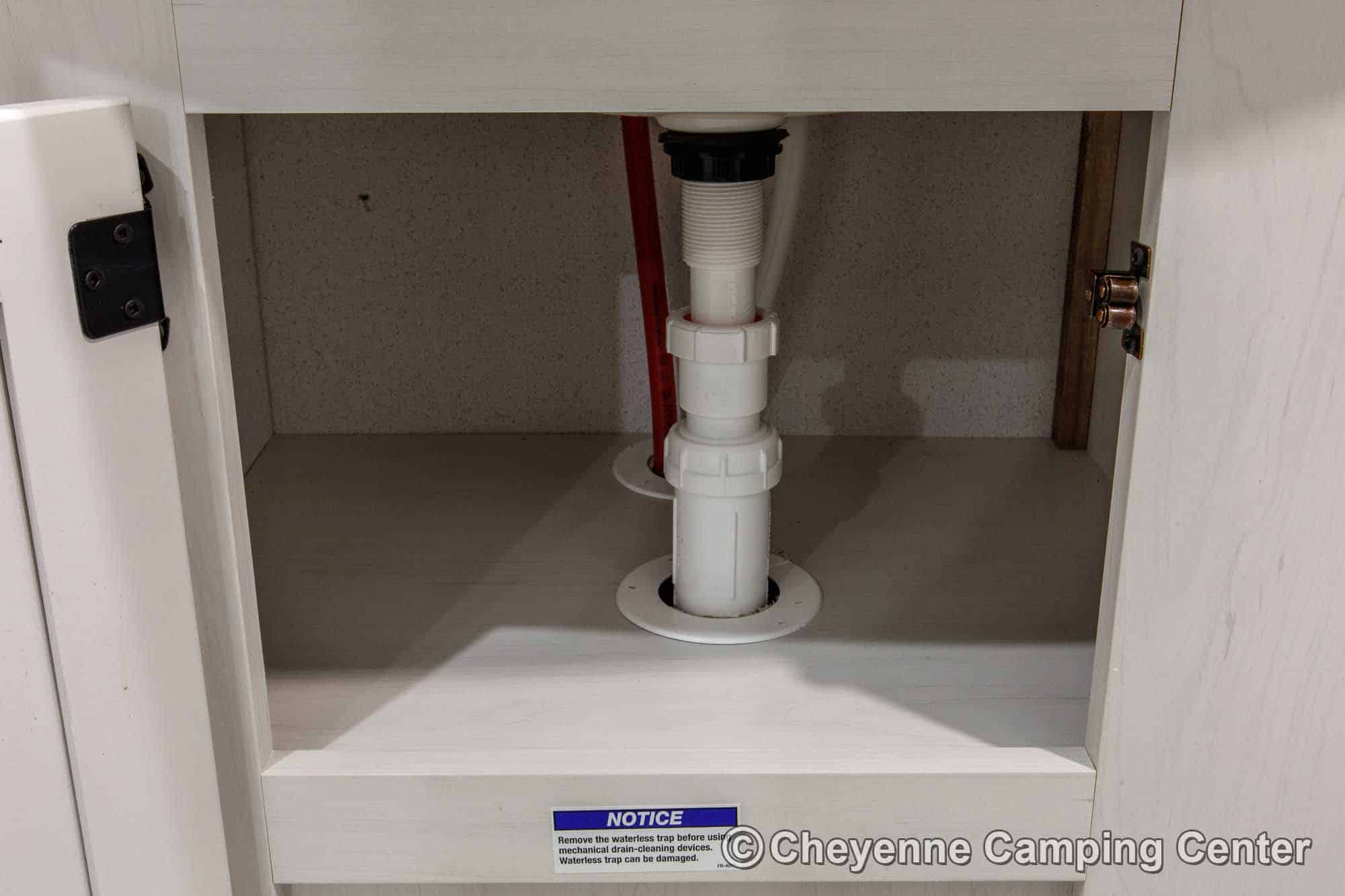 Outside, you’ll have a 20′ power awning, a sliding entry door, premium MORryde entry steps, marine-grade stereo speakers, storage compartments, a black tank flush, hot/cold shower fixture, solar prep, a roof ladder, and an LP quick connect.