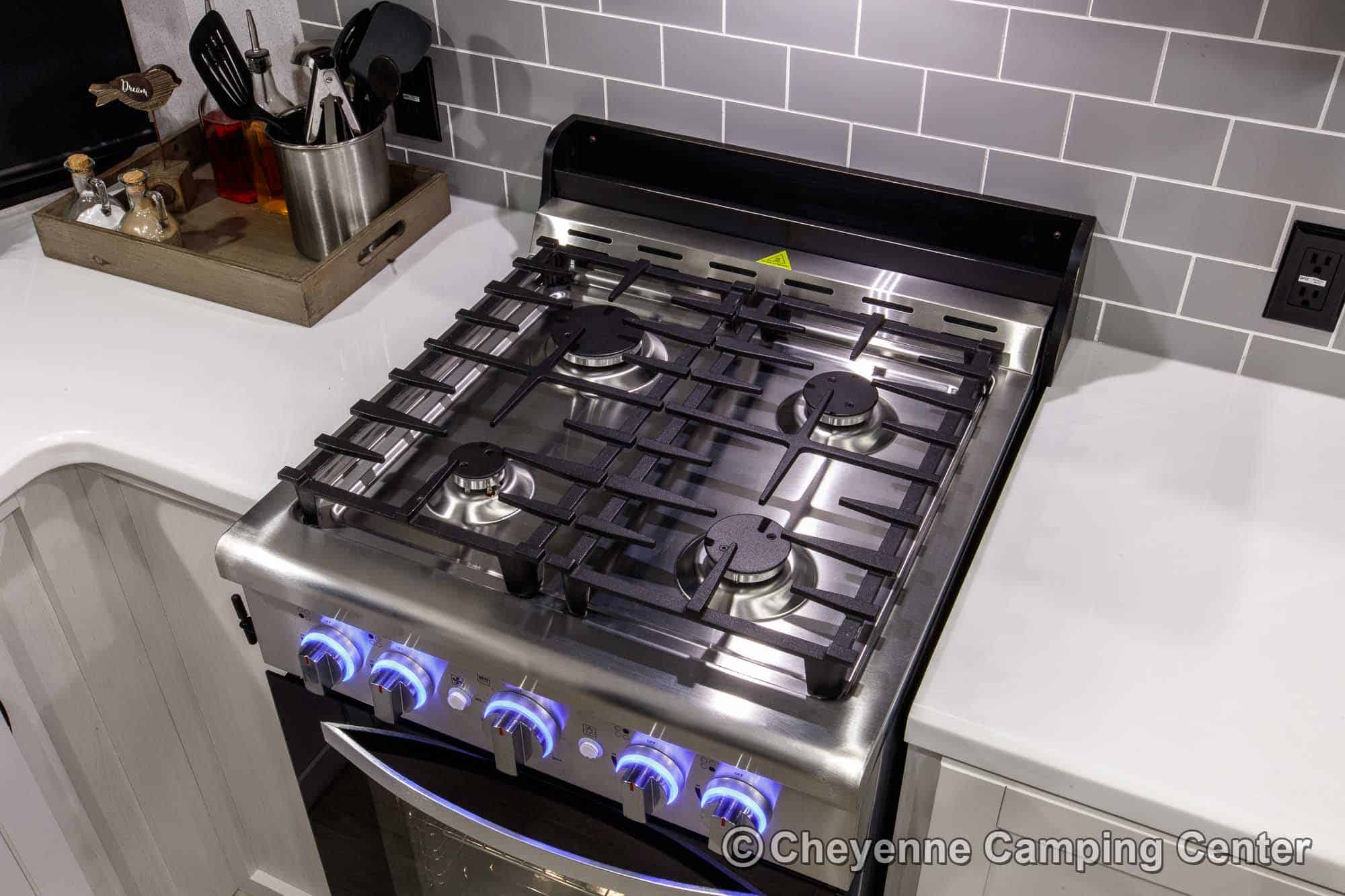 • 24″ Stainless Steel Oven with 4 Burner Cooktop