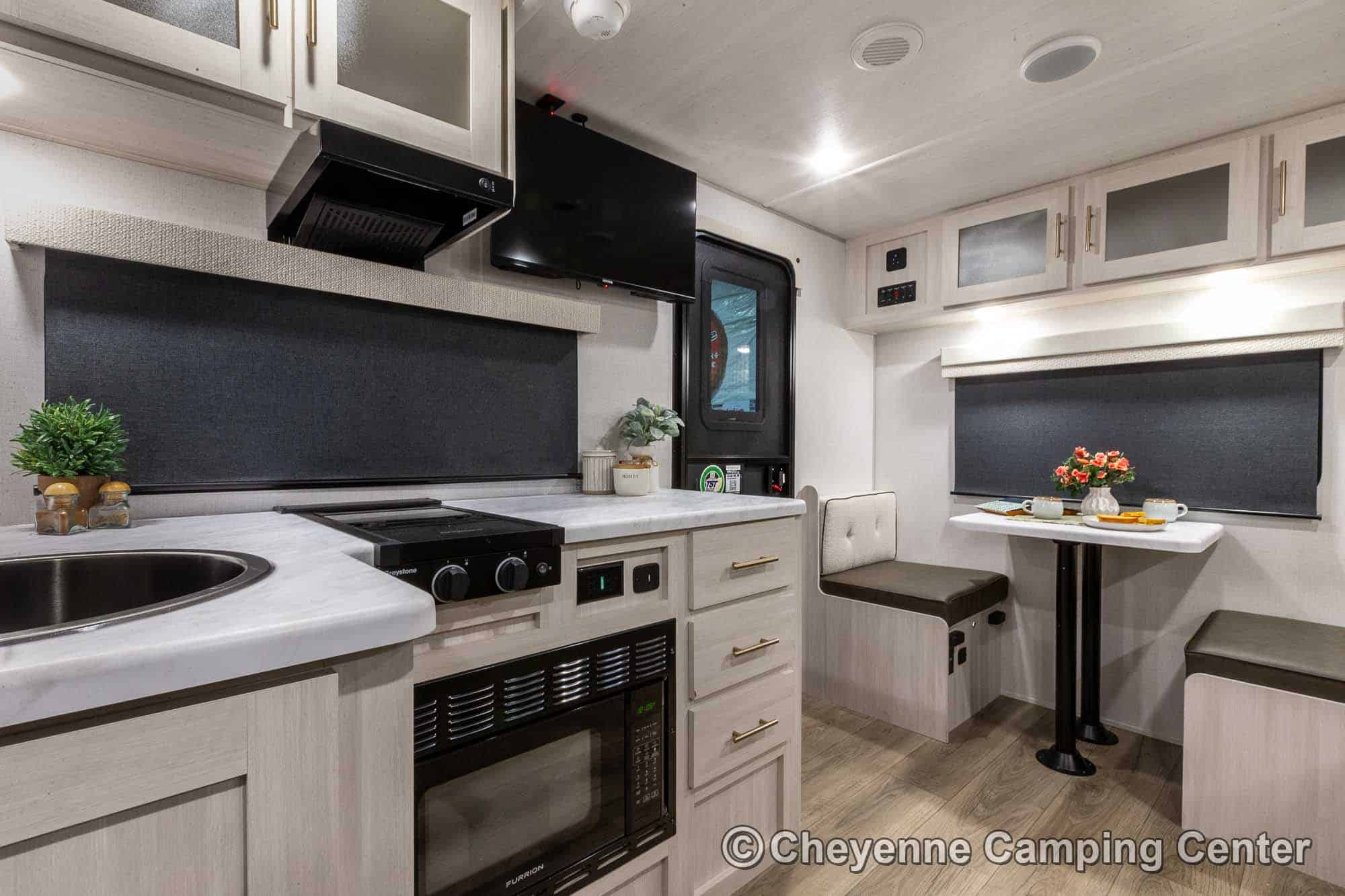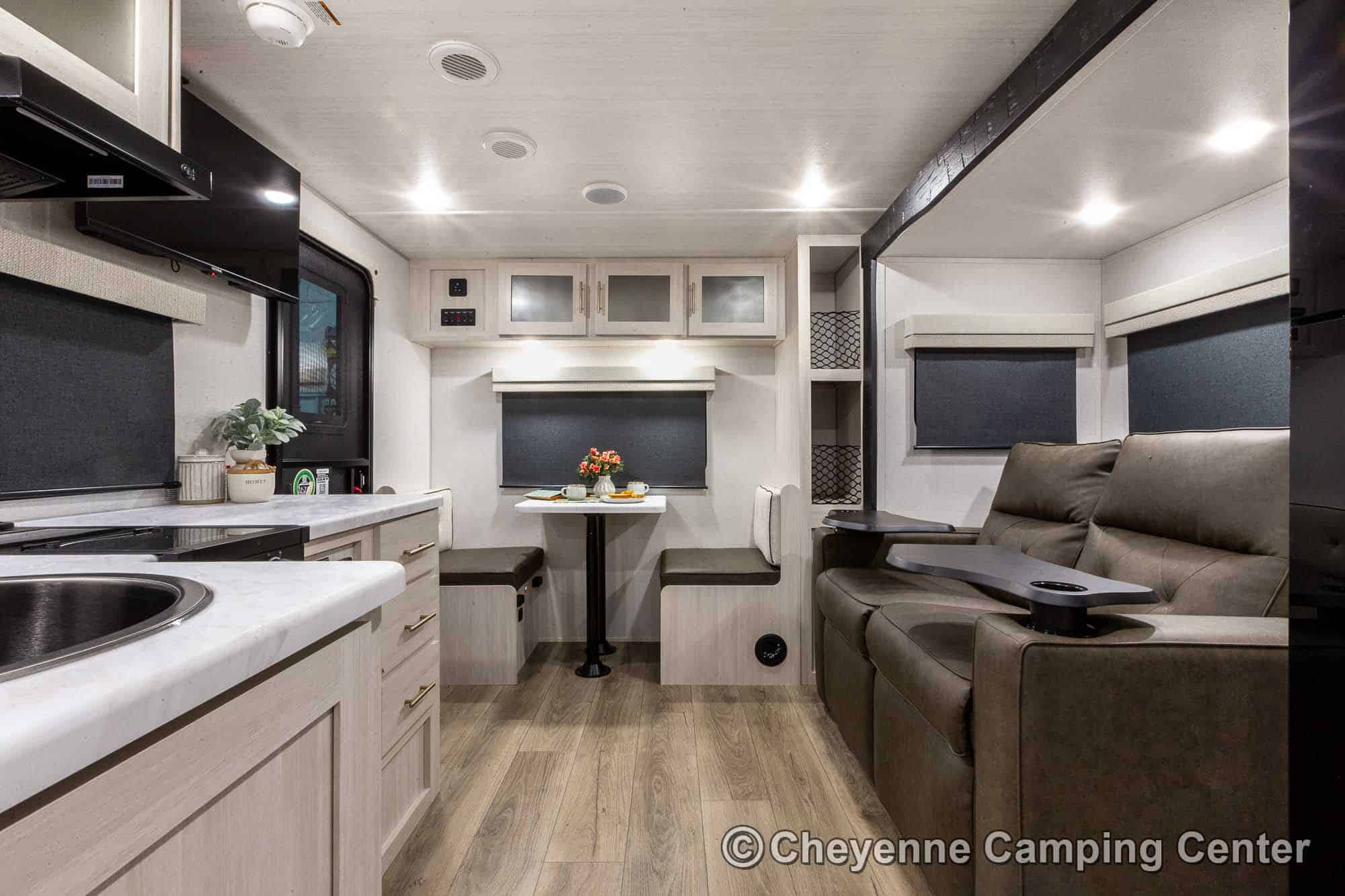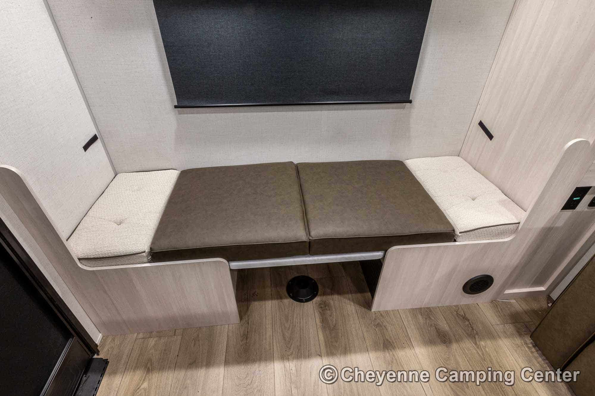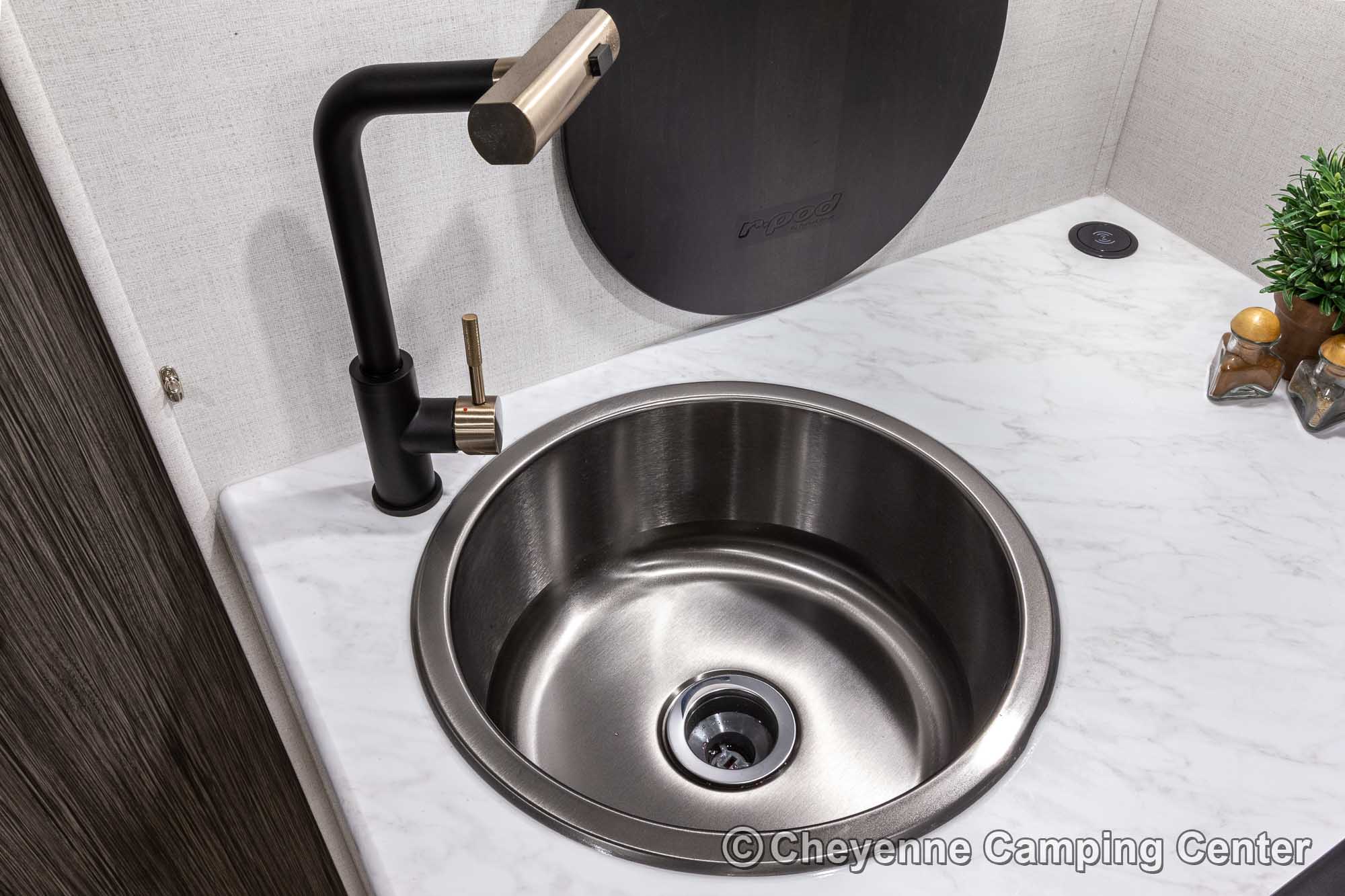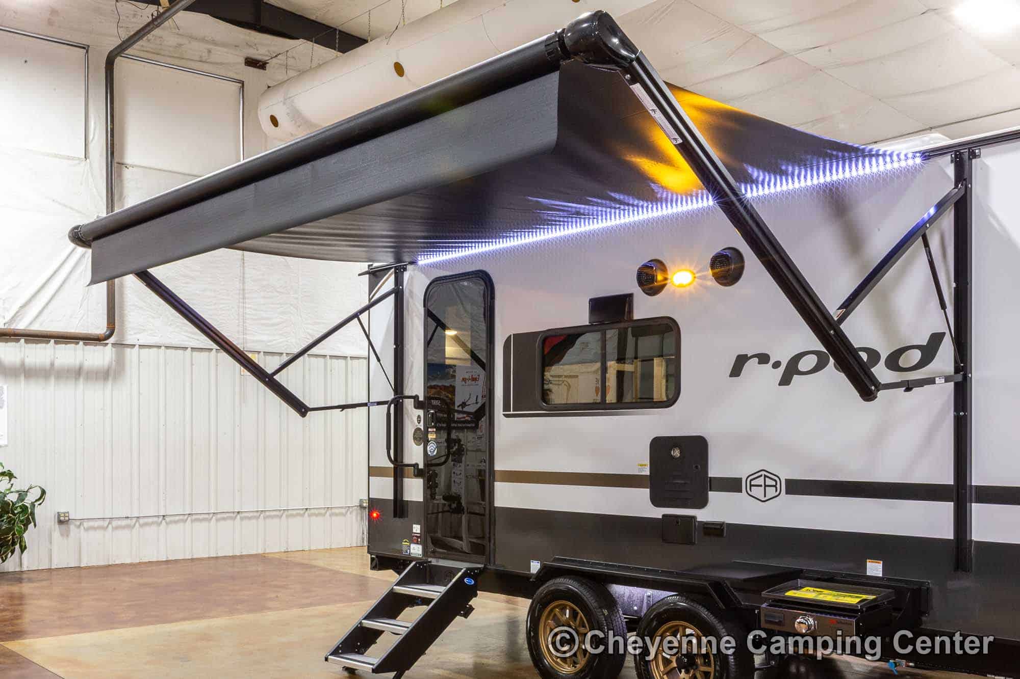 The R-Pod RP-198 also comes loaded with modern conveniences like a central vacuum, Bluetooth stereo, 32″ smart TV, USB ports, seamless countertops, roller shades, a 15K BTU air conditioner, and an enclosed and heated underbelly. Backed by a one-year manufacturer’s warranty and complimentary roadside assistance, the R-Pod RP-198 for sale at Cheyenne Camping Center is the perfect couples travel trailer for those seeking adventure in comfort and style.