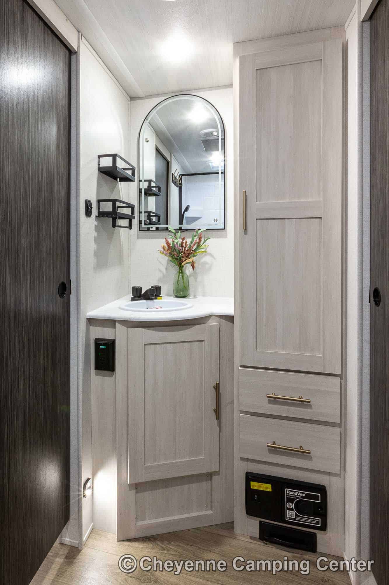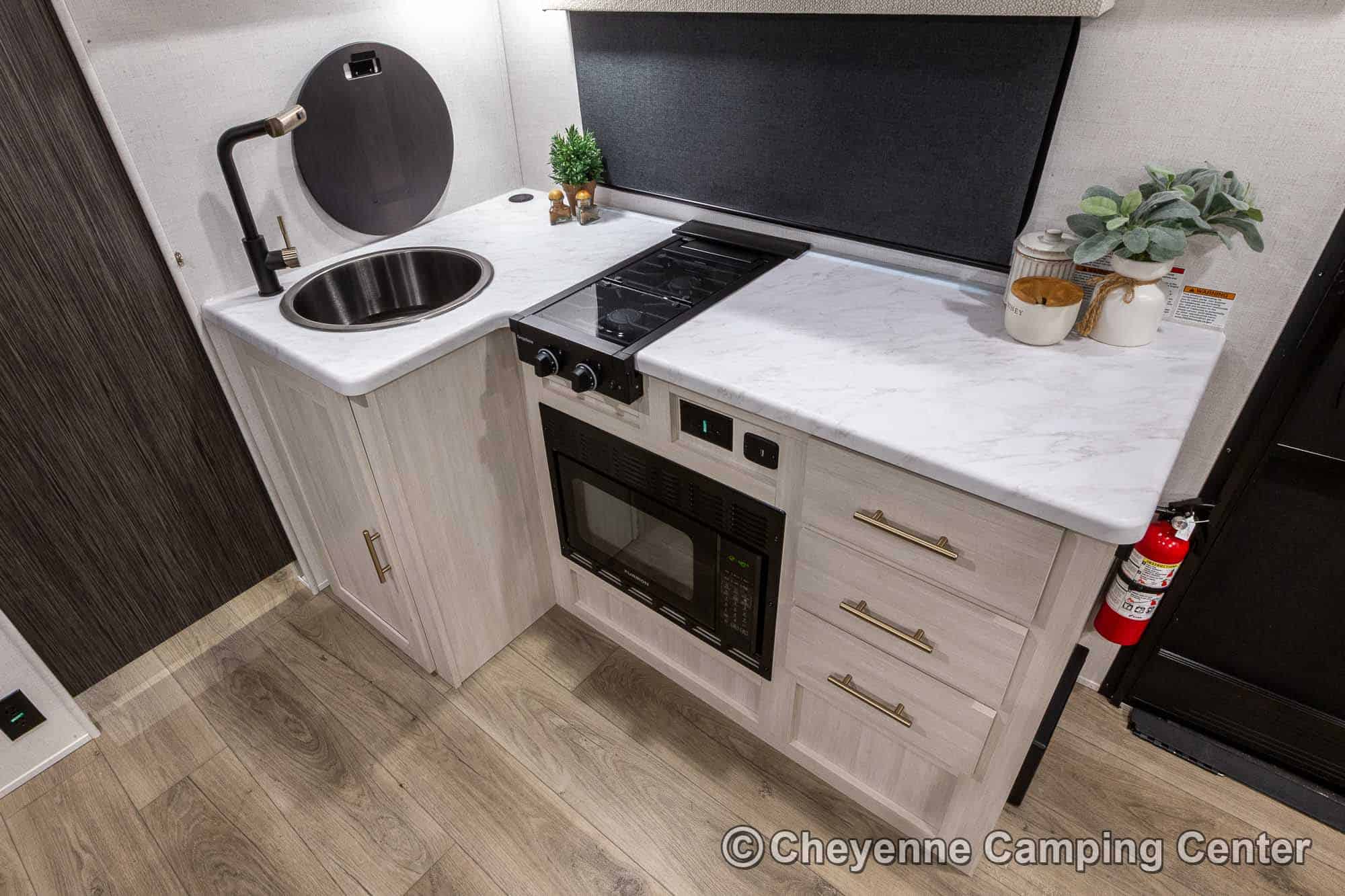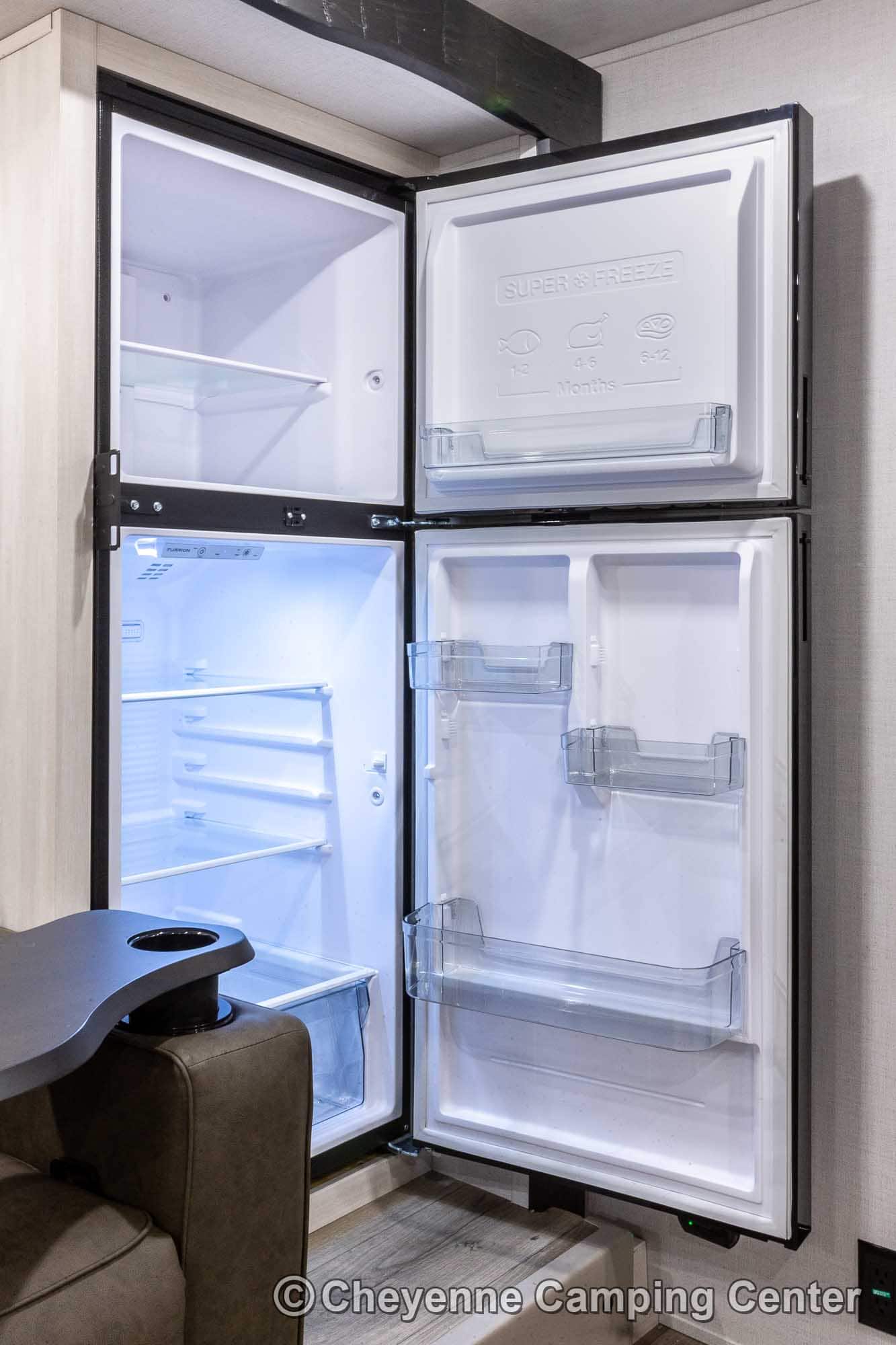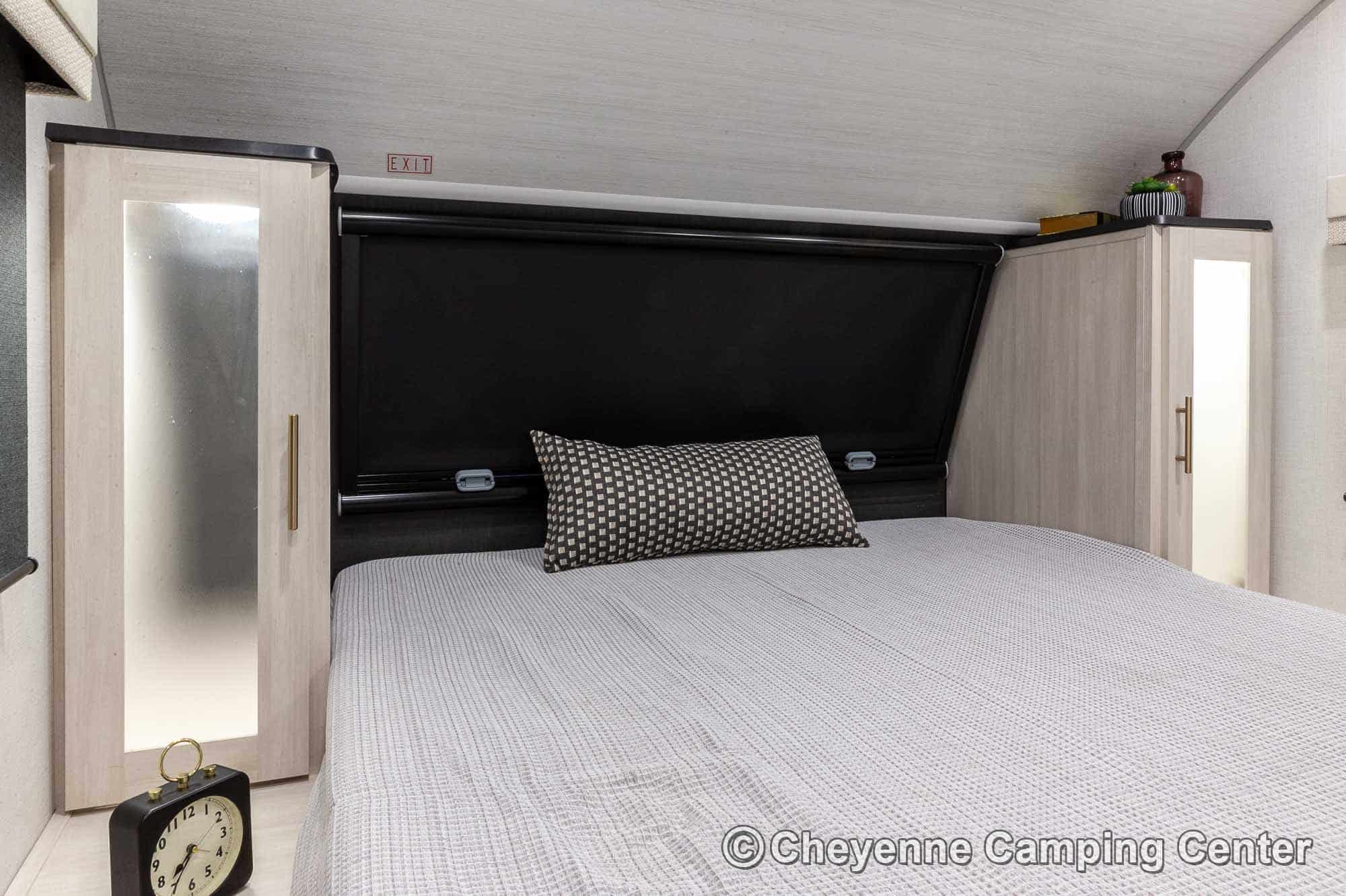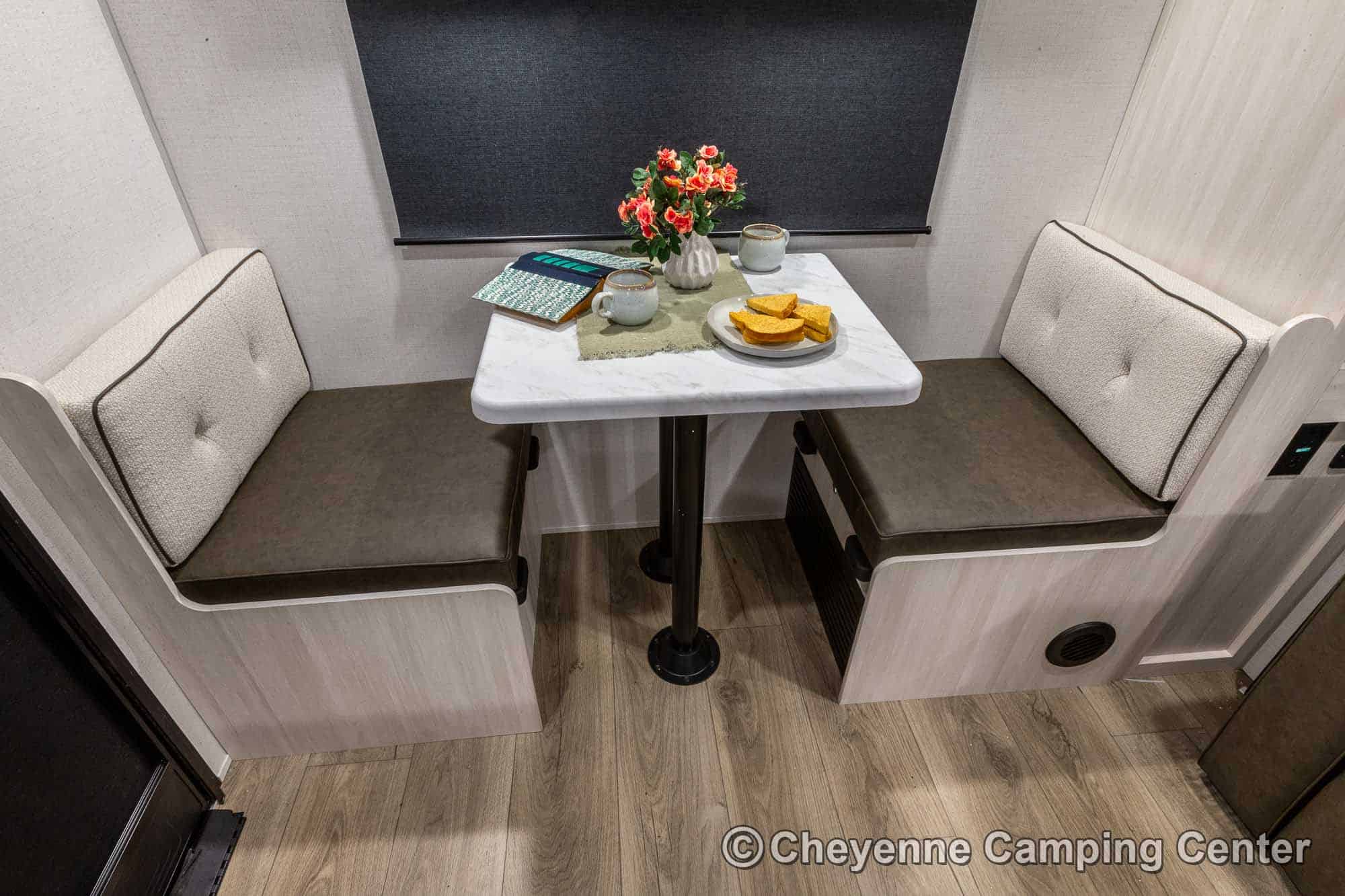 The R-Pod RP-198 also comes loaded with modern conveniences like a central vacuum, Bluetooth stereo, 32″ smart TV, USB ports, seamless countertops, roller shades, a 15K BTU air conditioner, and an enclosed and heated underbelly. Backed by a one-year manufacturer’s warranty and complimentary roadside assistance, the R-Pod RP-198 for sale at Cheyenne Camping Center is the perfect couples travel trailer for those seeking adventure in comfort and style.