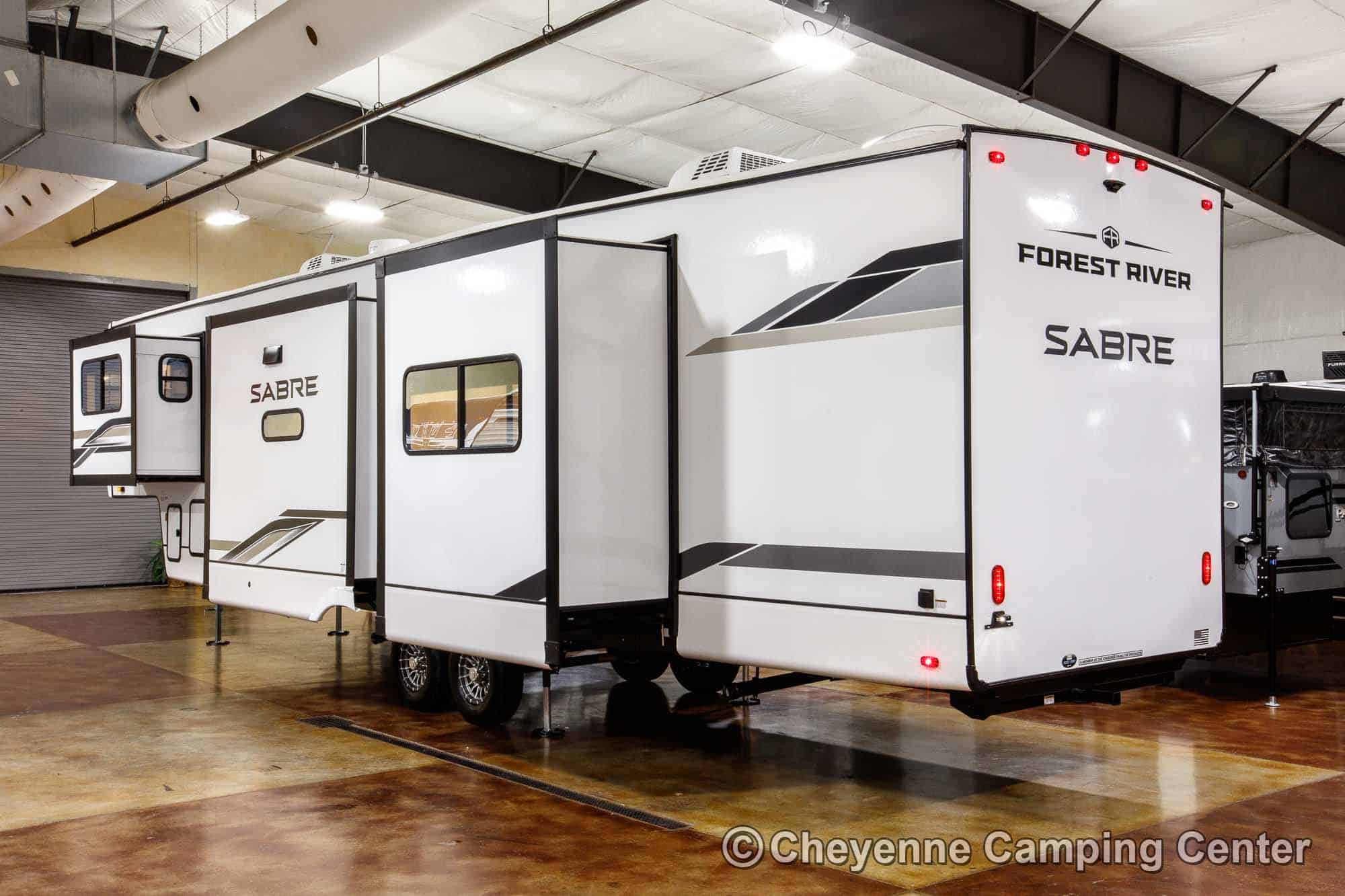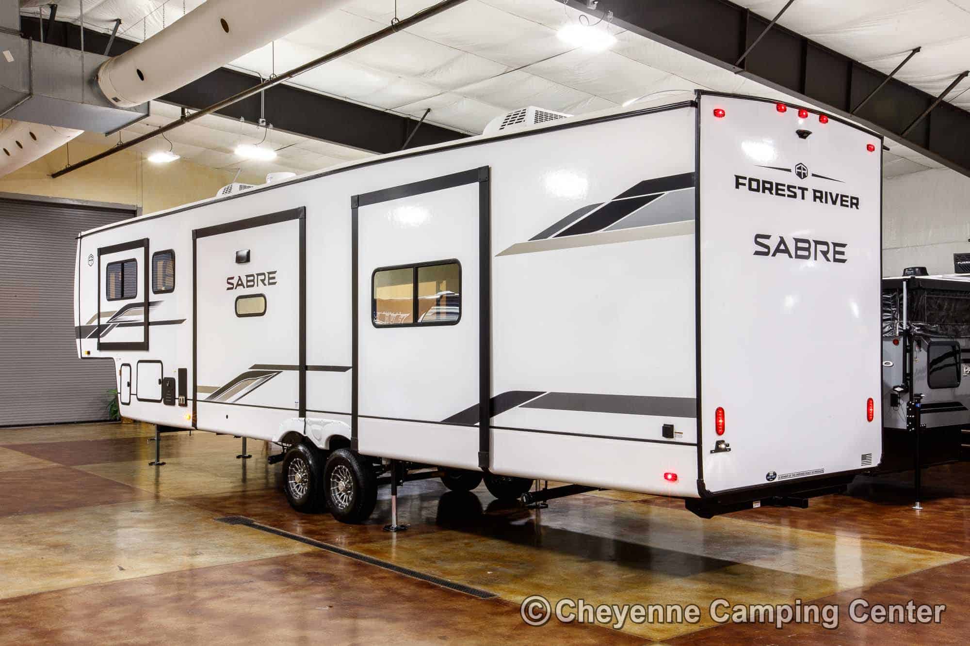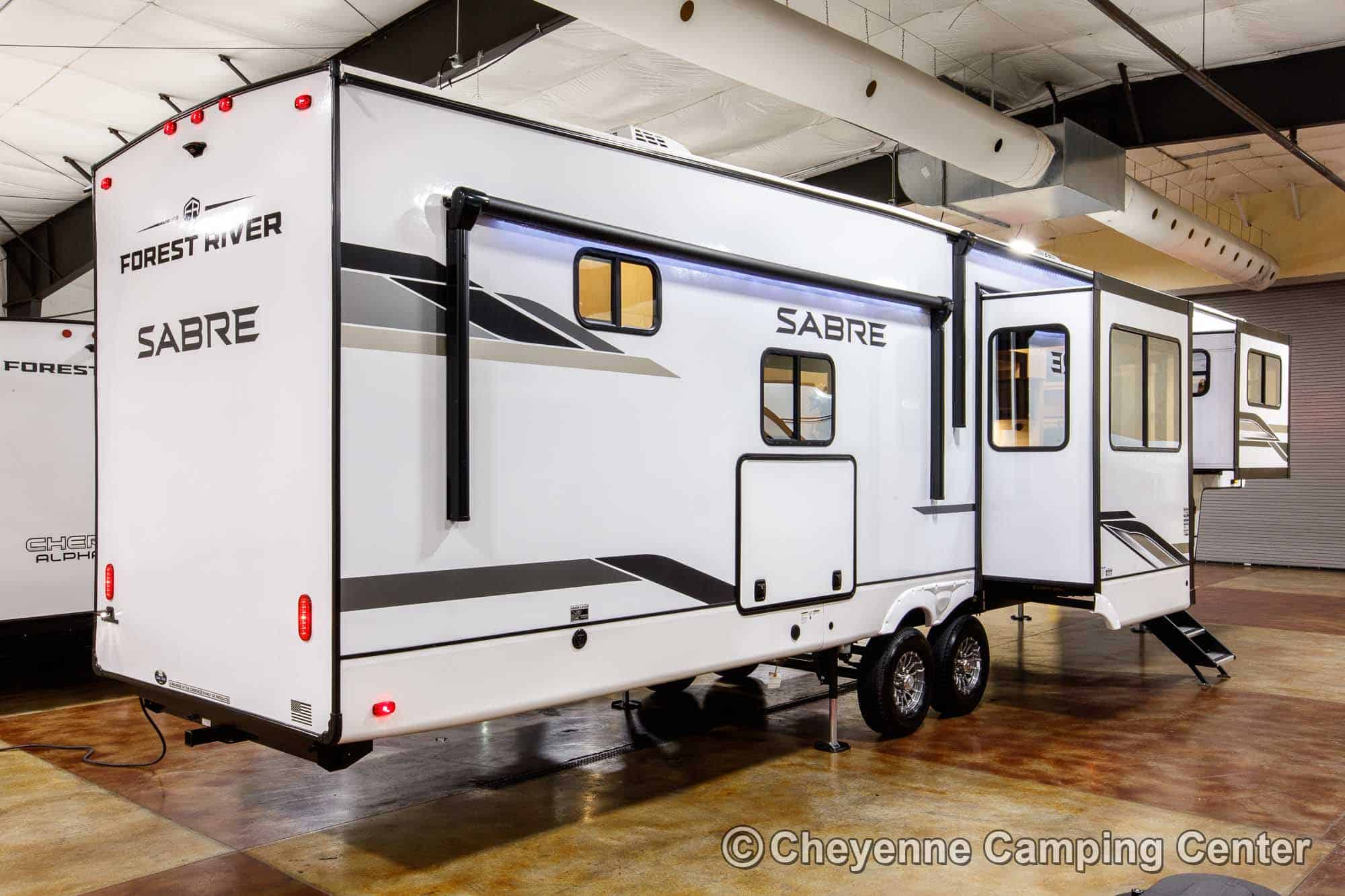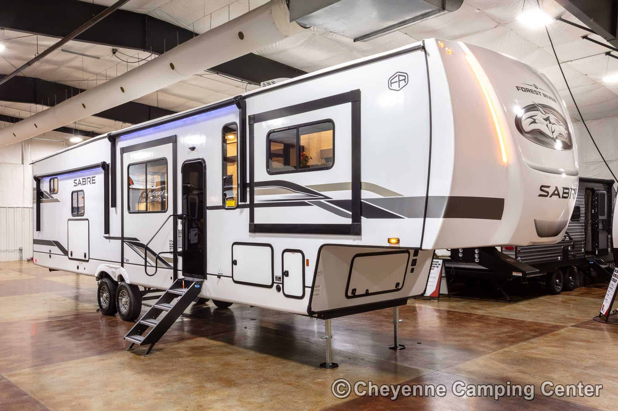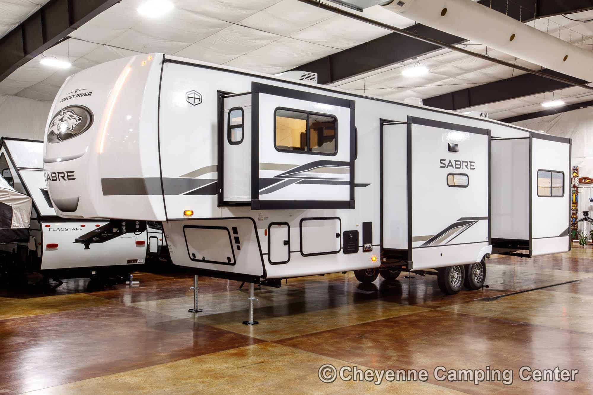 The 2026 Forest River Sabre 37FLH for sale at Cheyenne Camping Center combines affordability, premium construction, residential-style comfort, and high-end features to deliver one of the most impressive front living room fifth wheels available today. Whether you’re hitting the open road or setting up for an extended stay, the Sabre 37FLH lets you do it all in comfort and style.