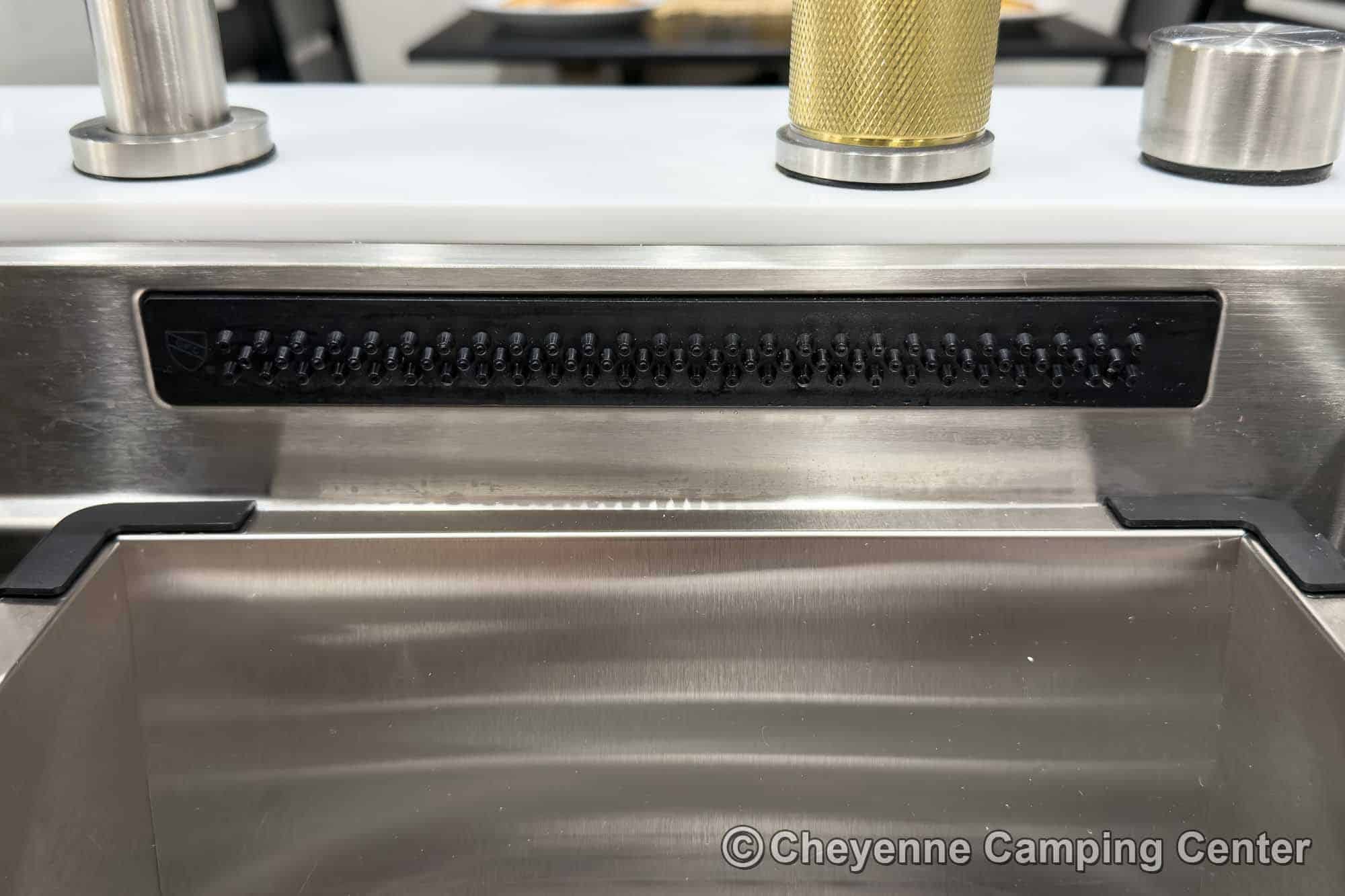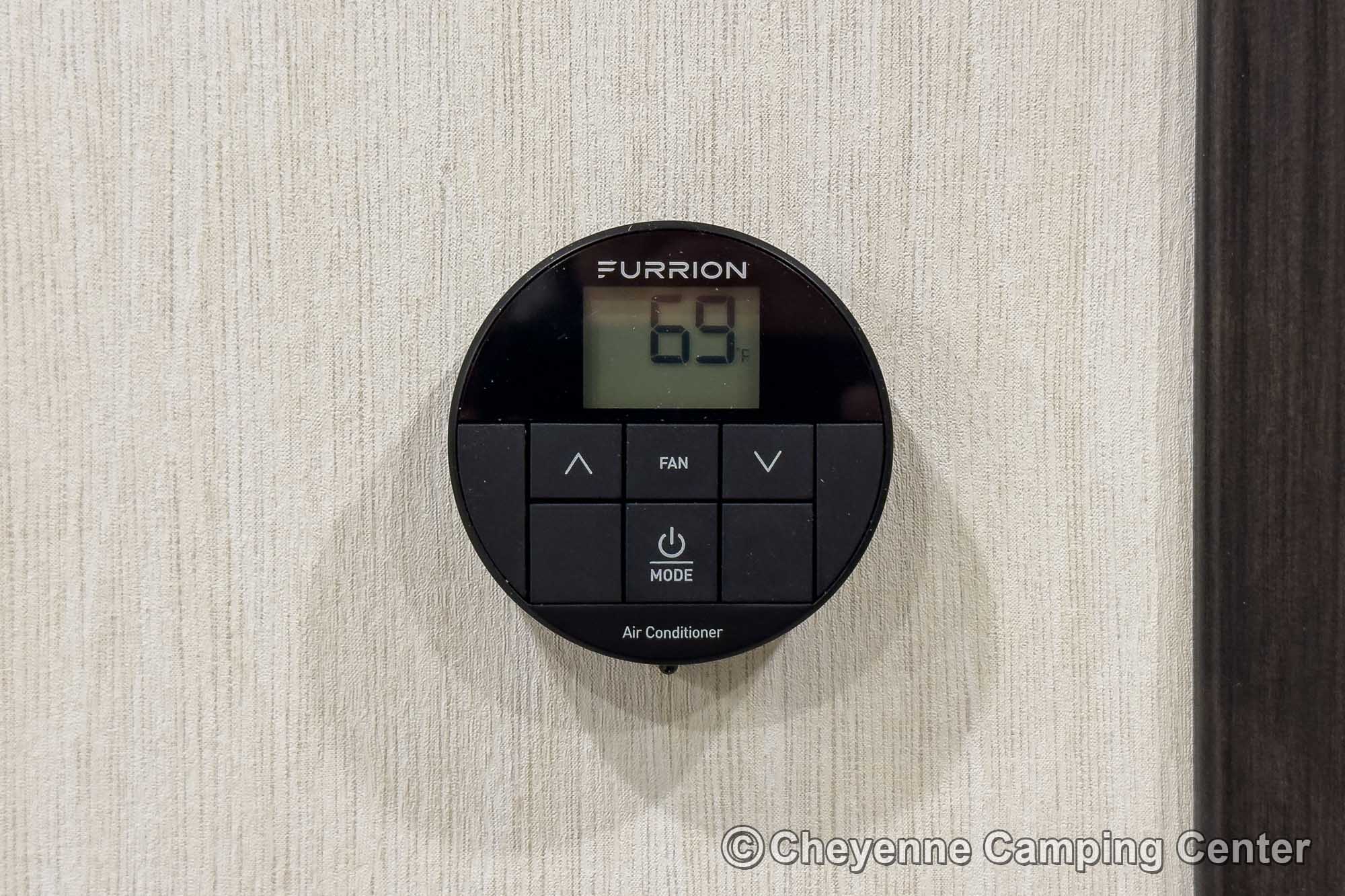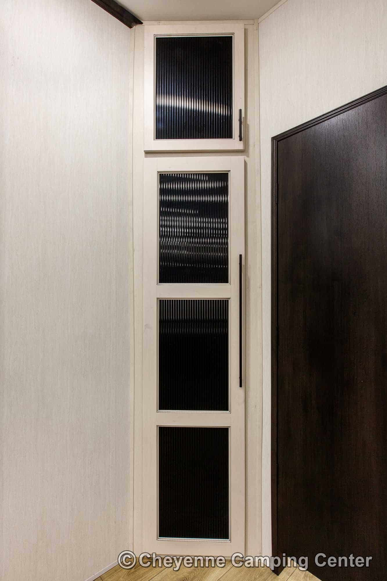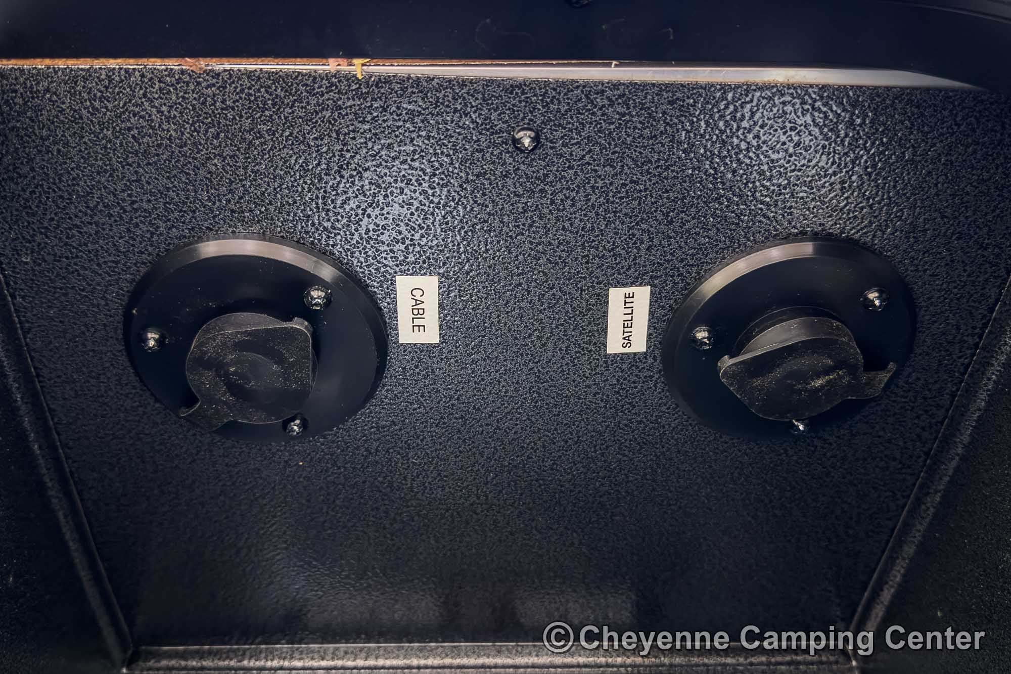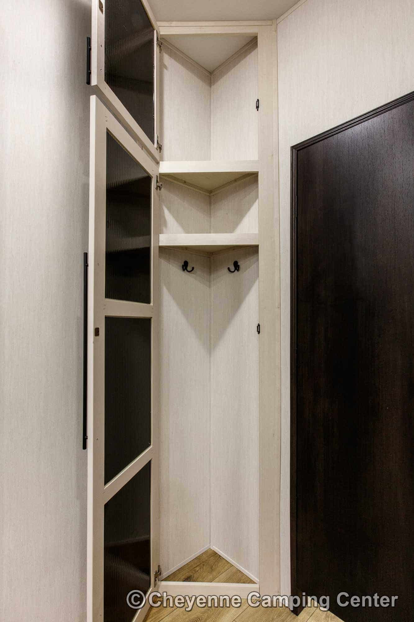 Premium Exterior Features: Outside, you’ll enjoy two power awnings with LED lighting, an outdoor kitchen with a refrigerator, griddle, water fixture, and storage, and a 200-watt solar panel for off-grid flexibility. Automatic leveling makes setup simple, while the towing package and large storage compartments add convenience for every adventure.