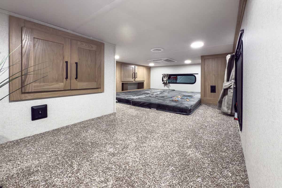 The 2026 Forest River Sierra 4002FB is a unique two bedroom fifth wheel with two full bathrooms and a loft that will comfortably sleep 6! Everything about the 4002FB exudes luxury and comfort. The aluminum frame laminated construction is outstanding. Outside, you will have premium gel-coated fiberglass adorned with tasteful graphics, fully automatic leveling, 16” Goodyear tires, 7000 lb. axles, two adjustable power awnings with LED lighting, a 200-watt solar panel, a second rear entry door, prep for 4 observation cameras, MORryde entry steps with strut assist, and a vast pass-thru storage compartment.