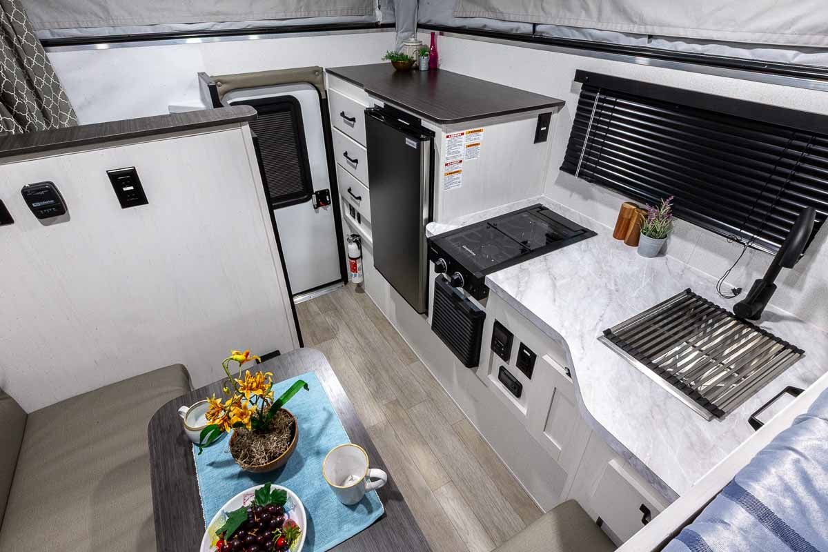 Discover a whole new world of fun and adventure with the 2026 Palomino BackPack SS-1251 pop-up truck camper. This lightweight pickup truck camper features a north/south bed and power lift roof, creating a spacious interior with more than adequate stand-up room and many convenient features. The exterior is constructed with sturdy laminated sidewalls on the lower portion, durable vinyl-coated canvas above, and a fiberglass roof. Most importantly, the lightweight, low-profile design improves fuel efficiency and on or off-road handling.