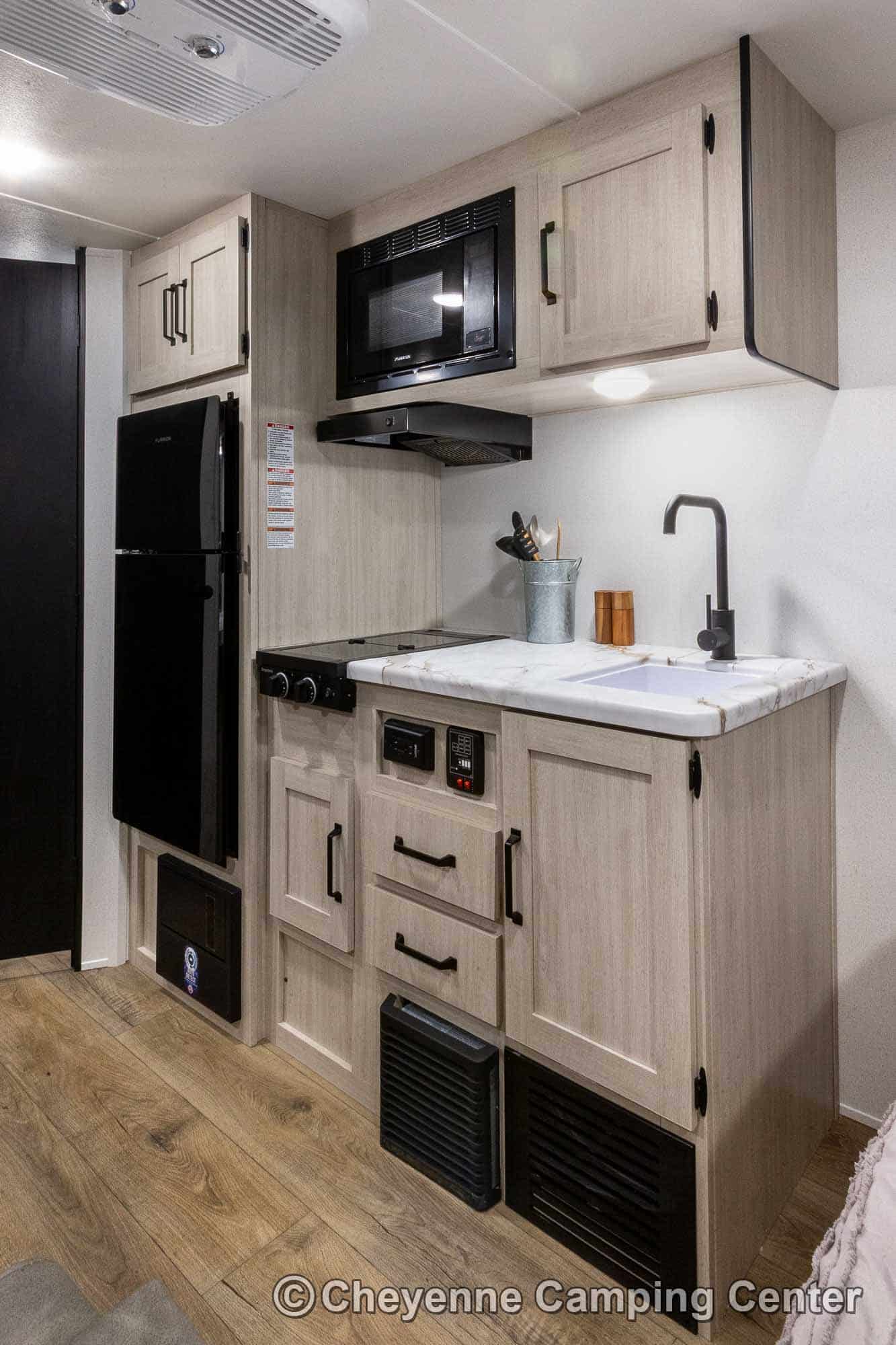 You’ll also have a gas/electric water heater, a 12V RV battery, and a filled LP tank. For added peace of mind, the Puma Camping Edition 12FBCE comes with a one-year manufacturer’s warranty and one year of complimentary 24/7 roadside assistance.