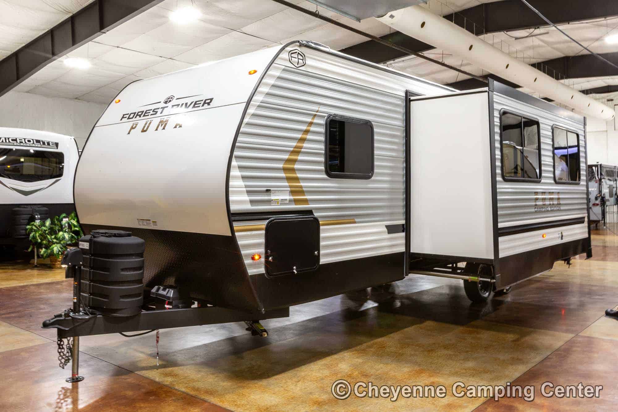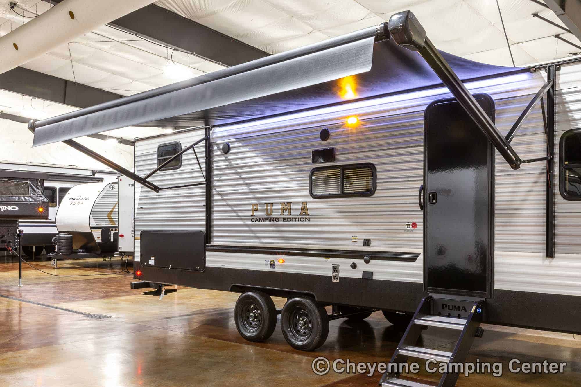 The Puma Camping Edition 283BHCE for sale at Cheyenne Camping Center is the perfect affordable, well-equipped, bunkhouse travel trailer. Come see it today at our store in Walcott, Iowa, right off I-80 at exit 284.