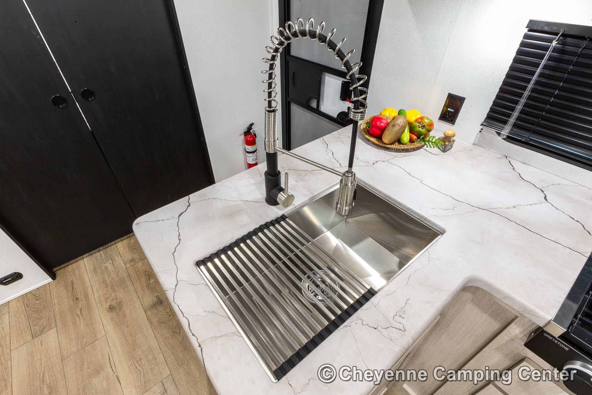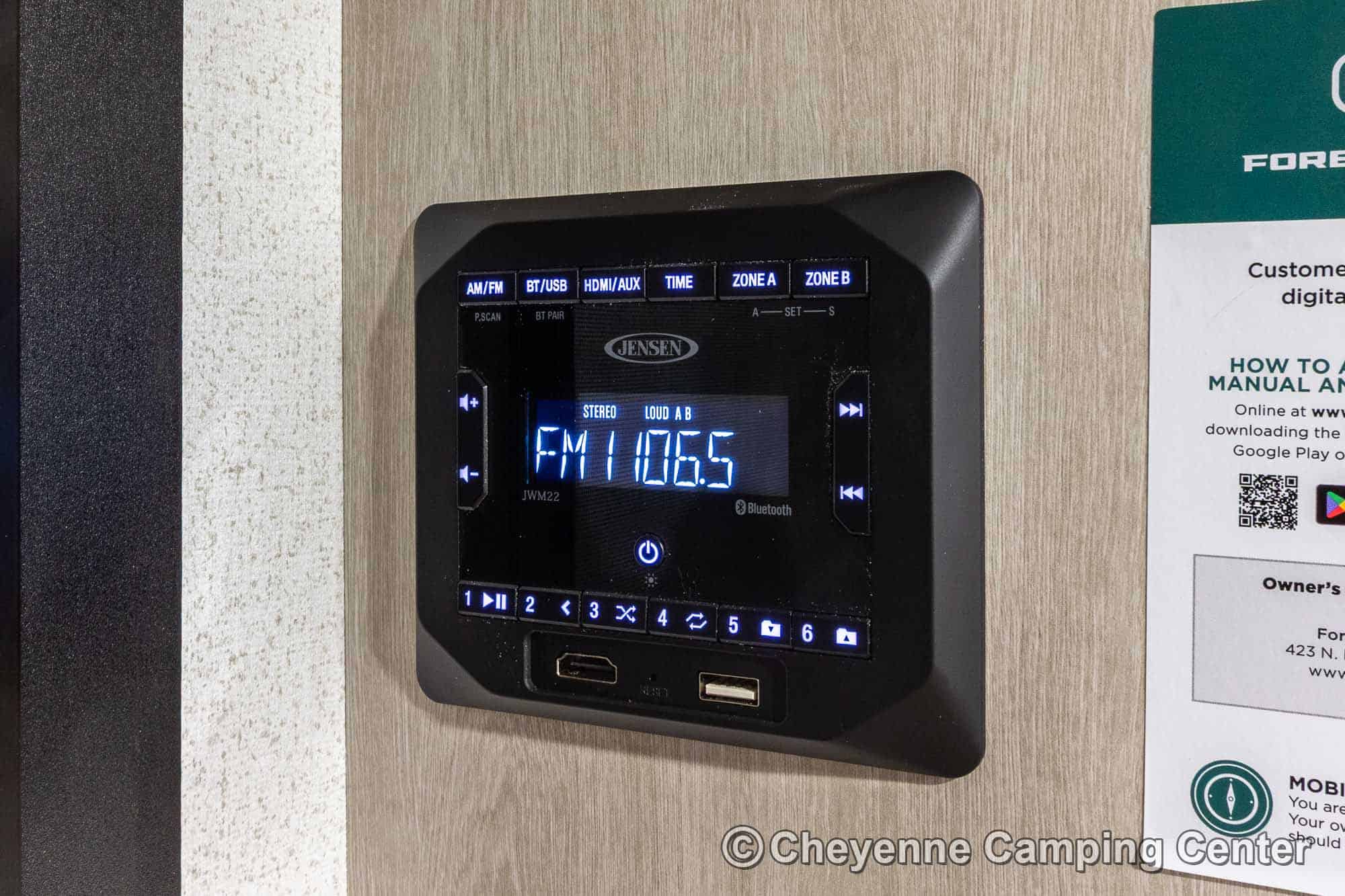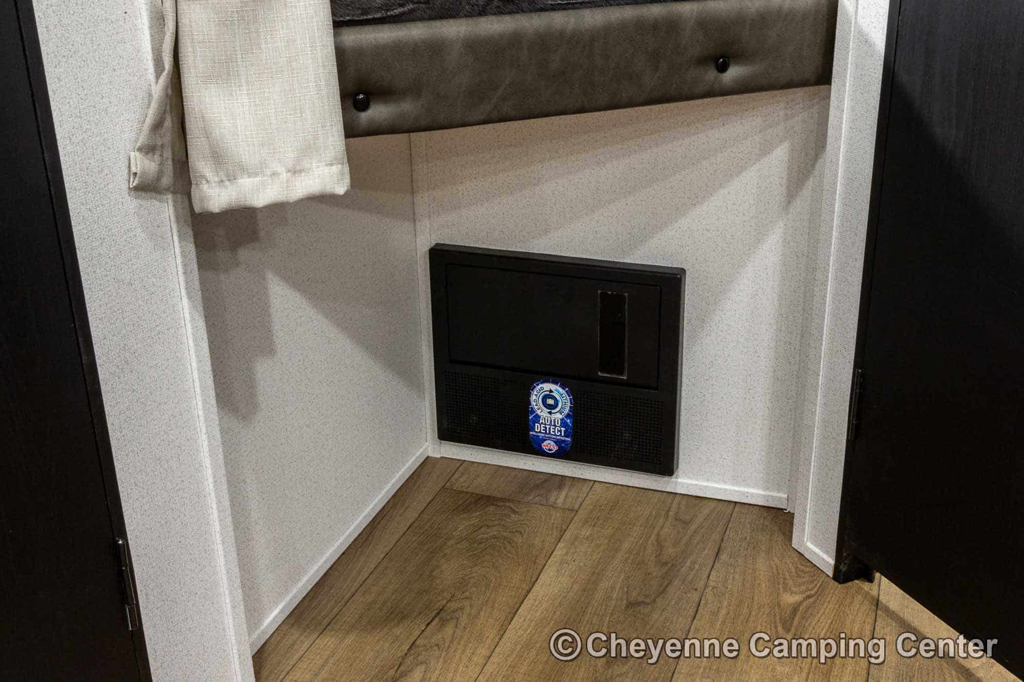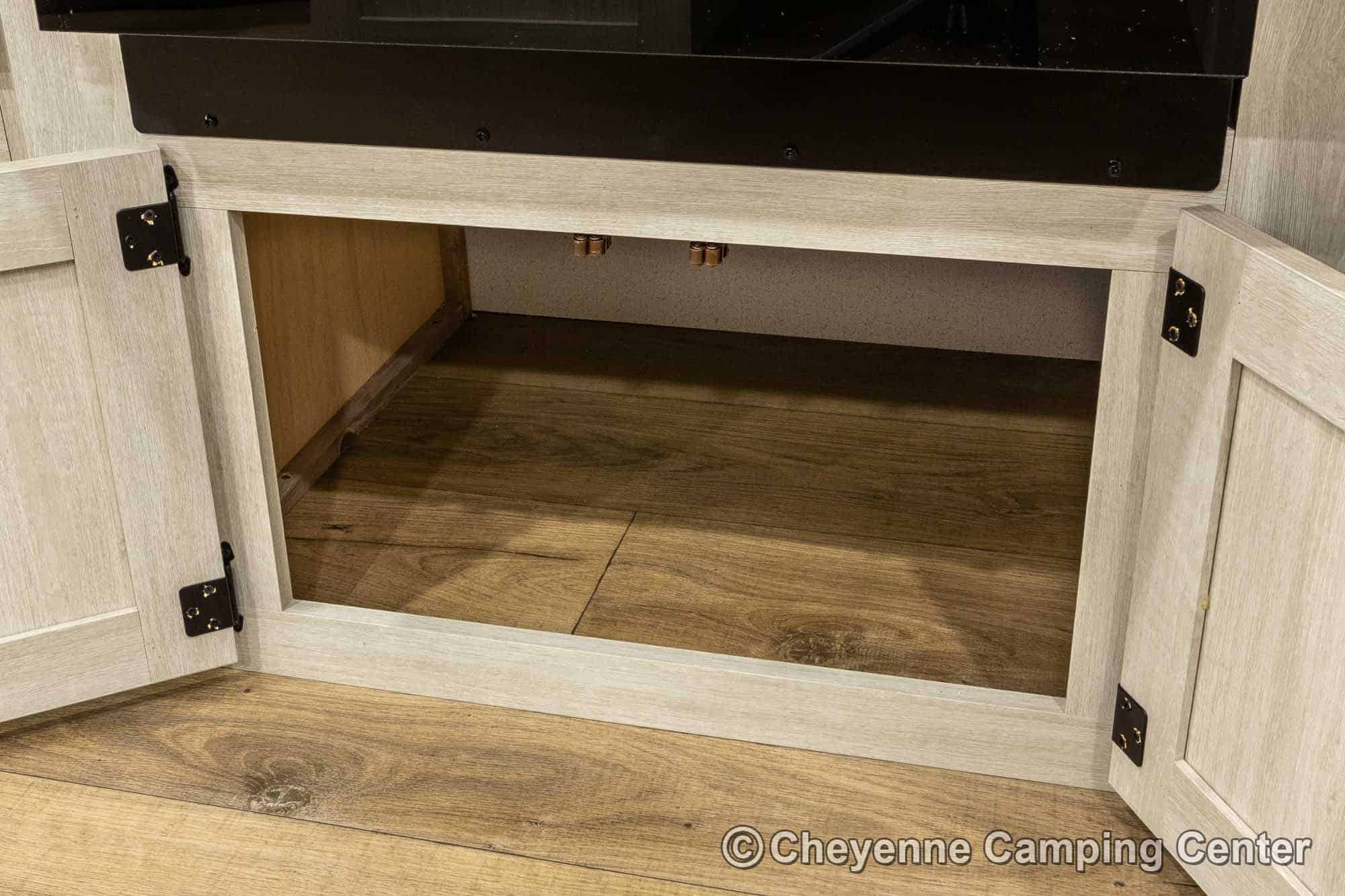 You’ll also have an AM/FM/HDMI/Bluetooth stereo, exterior marine-grade speakers, a 32” HD TV, a 10.7 cu. ft. 12V refrigerator, an outdoor shower, a roof-mounted RV A/C, a 15′ power awning with LED lighting, solar prep, a 12V RV battery, a one-year manufacturer’s warranty, one-year complimentary 24/7 roadside assistance, and much more.