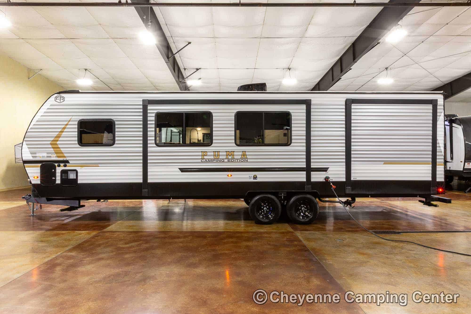 The Puma Camping Edition for sale at Cheyenne Camping Center is the perfect well-equipped and affordable bunkhouse travel trailer. Come see it today at our store in Walcott, Iowa, right off I-80 at exit 284.