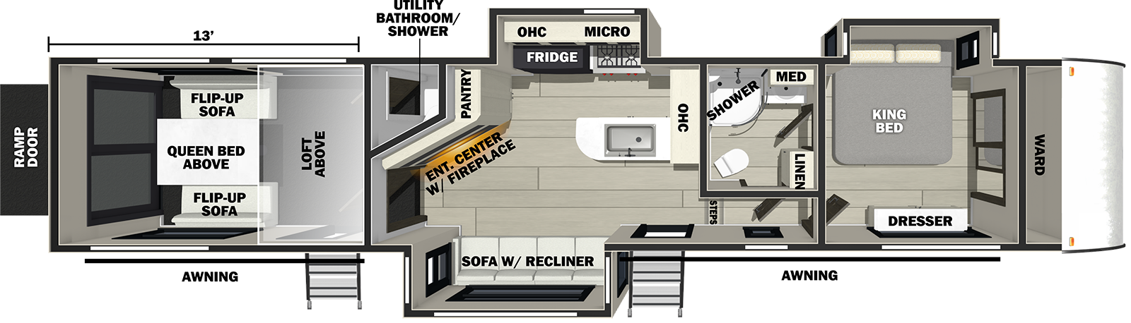 Forest River Palomino Columbus 384RKH rear kitchen floorplan